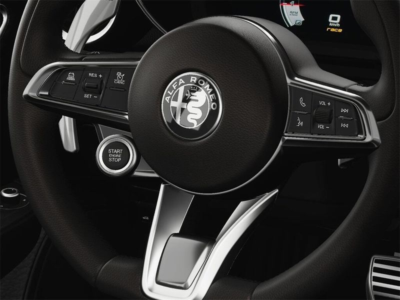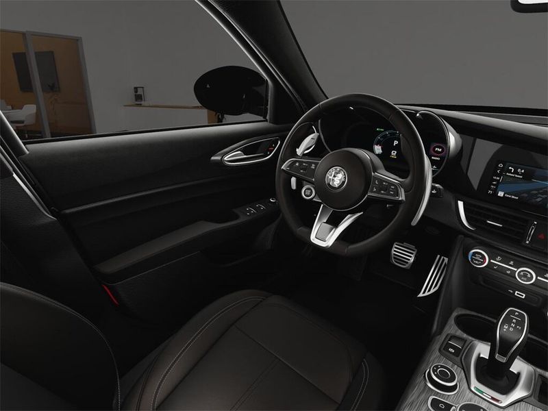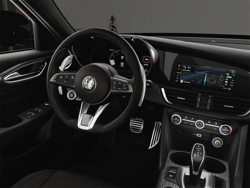 This Giulia Base is nicely equipped with Premium Interior & Sound Package (14 Speaker harman/kardon Premium Audio and Leather Dash & Upper Doors), Quick Order Package 22M Sprint, Sunroof (DISC) (Dual-Pane Sunroof and Gloss Black Window Surround Moldings), Veloce Package AWD (Gloss Red Calipers w/White Script, Limited Slip Differential Rear Axle, Power Adjustable Bolster, Silver Veloce Badge, and Sport Leather Seats), 4-Wheel Disc Brakes, 8 Speakers, ABS brakes, Air Conditioning, Alloy wheels, AM/FM radio: SiriusXM, Apple CarPlay/Android Auto, Auto High-beam Headlights, Auto-dimming door mirrors, Auto-dimming Rear-View mirror, Automatic temperature control, Brake assist, Bumpers: body-color, Compass, Delay-off headlights, Driver door bin, Driver vanity mirror, Dual front impact airbags, Dual front side impact airbags, Electronic Stability Control, Exterior Parking Camera Rear, Four wheel independent suspension, Front anti-roll bar, Front Bucket Seats, Front Center Armrest, Front dual zone A/C, Front reading lights, Fully automatic headlights, Garage door transmitter, Heated door mirrors, Heated front seats, Heated rear seats, Heated steering wheel, Illuminated entry, Knee airbag, Leather Seats, Leather Shift Knob, Leather steering wheel, Low tire pressure warning, Manufacturer's Statement of Origin, Memory seat, Navigation System, Occupant sensing airbag, Outside temperature display, Overhead airbag, Overhead console, Panic alarm, Passenger door bin, Passenger vanity mirror, Power door mirrors, Power driver seat, Power passenger seat, Power steering, Power windows, Radio data system, Radio: AM/FM/HD 8.8'' w/Navigation, Rain sensing wipers, Rear anti-roll bar, Rear reading lights, Rear seat center armrest, Rear window defroster, Remote keyless entry, Security system, Speed control, Speed-sensing steering, Speed-Sensitive Wipers, Split folding rear seat, Sport steering wheel, Steering wheel mounted audio controls, Tachometer, Telescoping steering wheel, Tilt steering wheel, Traction control, Trip computer, Turn signal indicator mirrors, Variably intermittent wipers, Wheels: 18'' x 8.0'' Dark Turbine Aluminum, and Wheels: 19'' x 8.0'' Sport 5-Hole Aluminum.