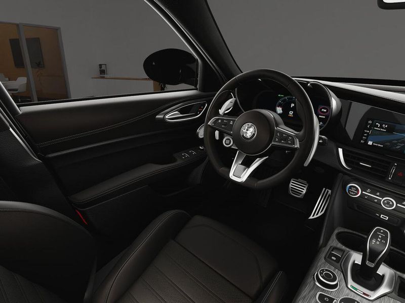 This Giulia Base is nicely equipped with Premium Interior & Sound Package (14 Speaker harman/kardon Premium Audio and Leather Dash & Upper Doors), Quick Order Package 22M Sprint, Sunroof (DISC) (Dual-Pane Sunroof and Gloss Black Window Surround Moldings), Veloce Package AWD (Gloss Red Calipers w/White Script, Limited Slip Differential Rear Axle, Power Adjustable Bolster, Silver Veloce Badge, and Sport Leather Seats), 4-Wheel Disc Brakes, 8 Speakers, ABS brakes, Air Conditioning, Alloy wheels, AM/FM radio: SiriusXM, Apple CarPlay/Android Auto, Auto High-beam Headlights, Auto-dimming door mirrors, Auto-dimming Rear-View mirror, Automatic temperature control, Brake assist, Bumpers: body-color, Compass, Delay-off headlights, Driver door bin, Driver vanity mirror, Dual front impact airbags, Dual front side impact airbags, Electronic Stability Control, Exterior Parking Camera Rear, Four wheel independent suspension, Front anti-roll bar, Front Bucket Seats, Front Center Armrest, Front dual zone A/C, Front reading lights, Fully automatic headlights, Garage door transmitter, Heated door mirrors, Heated front seats, Heated rear seats, Heated steering wheel, Illuminated entry, Knee airbag, Leather Seats, Leather Shift Knob, Leather steering wheel, Low tire pressure warning, Memory seat, Navigation System, Occupant sensing airbag, Outside temperature display, Overhead airbag, Overhead console, Panic alarm, Passenger door bin, Passenger vanity mirror, Power door mirrors, Power driver seat, Power passenger seat, Power steering, Power windows, Radio data system, Radio: AM/FM/HD 8.8'' w/Navigation, Rain sensing wipers, Rear anti-roll bar, Rear reading lights, Rear seat center armrest, Rear window defroster, Remote keyless entry, Security system, Speed control, Speed-sensing steering, Speed-Sensitive Wipers, Split folding rear seat, Sport steering wheel, Steering wheel mounted audio controls, Tachometer, Telescoping steering wheel, Tilt steering wheel, Traction control, Trip computer, Turn signal indicator mirrors, Variably intermittent wipers, Wheels: 18'' x 8.0'' Dark Turbine Aluminum, and Wheels: 19'' x 8.0'' Sport 5-Hole Aluminum.