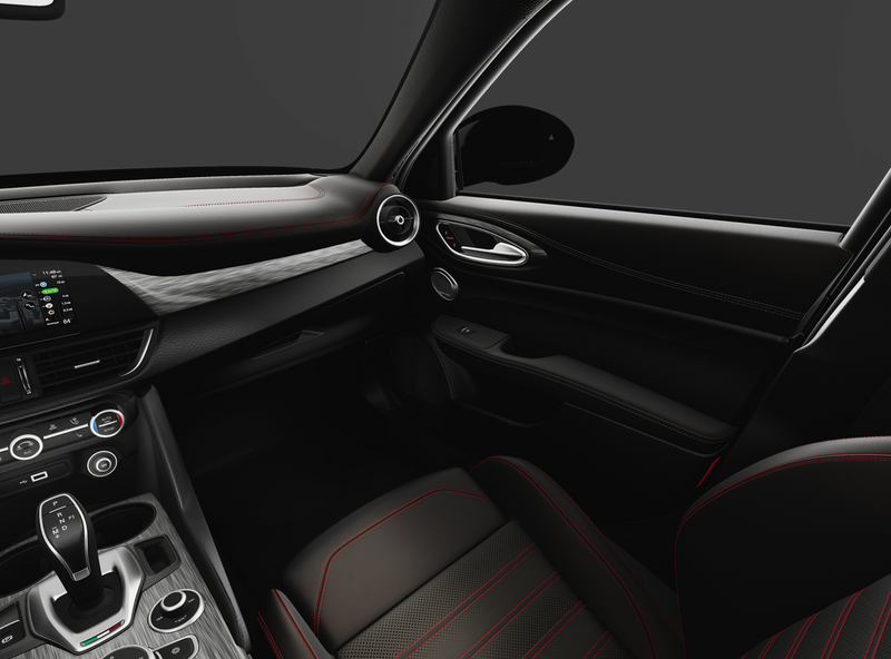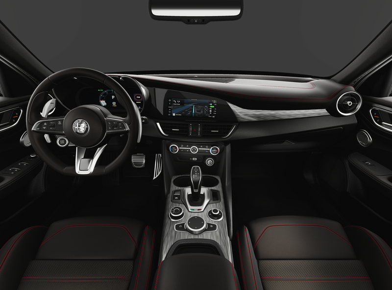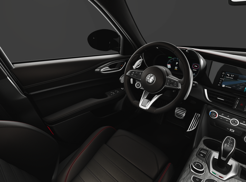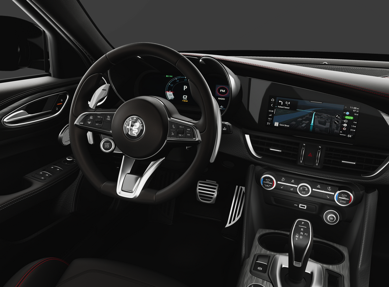 This Giulia Special Edition is nicely equipped with Driving Assist Package (Active Driving Assist System, Intelligent Speed Assist (ISA), and Thatcham Security Equipment), Quick Order Package 22Y Tributo Italiano, 14 Speakers, 4-Wheel Disc Brakes, ABS brakes, Air Conditioning, Alloy wheels, AM/FM radio: SiriusXM, Apple CarPlay/Android Auto, Auto High-beam Headlights, Auto-dimming door mirrors, Auto-dimming Rear-View mirror, Automatic temperature control, Brake assist, Bumpers: body-color, Compass, Delay-off headlights, Driver door bin, Driver vanity mirror, Dual front impact airbags, Dual front side impact airbags, Electronic Stability Control, Exterior Parking Camera Rear, Four wheel independent suspension, Front anti-roll bar, Front Bucket Seats, Front Center Armrest, Front dual zone A/C, Front reading lights, Fully automatic headlights, Garage door transmitter, harman/kardon Speakers, Heated door mirrors, Heated front seats, Heated rear seats, Heated steering wheel, Illuminated entry, Knee airbag, Leather Shift Knob, Leather Sport Seats w/Red Accents, Leather steering wheel, Low tire pressure warning, Manufacturer's Statement of Origin, Memory seat, Navigation System, Occupant sensing airbag, Outside temperature display, Overhead airbag, Overhead console, Panic alarm, Passenger door bin, Passenger vanity mirror, Power door mirrors, Power driver seat, Power passenger seat, Power steering, Power windows, Radio data system, Radio: AM/FM/HD 8.8'' w/Navigation, Rain sensing wipers, Rear anti-roll bar, Rear reading lights, Rear seat center armrest, Rear window defroster, Remote keyless entry, Security system, Speed control, Speed-sensing steering, Speed-Sensitive Wipers, Split folding rear seat, Sport steering wheel, Steering wheel mounted audio controls, Tachometer, Telescoping steering wheel, Tilt steering wheel, Traction control, Trip computer, Turn signal indicator mirrors, Variably intermittent wipers, and Wheels: 19'' x 8.0'' Dark 5-Hole Aluminum.