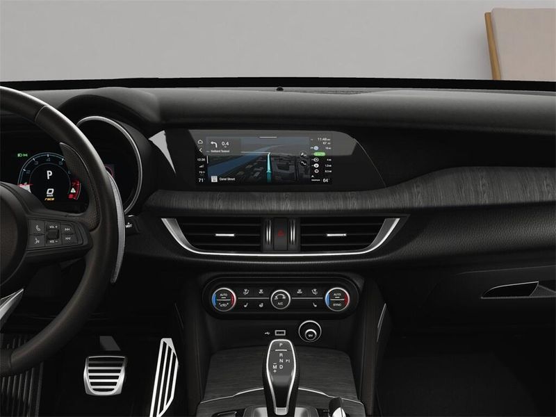 This Stelvio Sprint is nicely equipped with Active Driver Assistance Package (DISC) (Active Blind Spot Assist, Cargo Compartment Cover, Driver Attention Alert, Hands Free Power Liftgate, Highway Assist System, Intelligent Speed Assist (ISA), Lane Keep Assist, Thatcham Security Equipment, Traffic Jam Assist, and Traffic Sign Recognition), Convenience Package (Active Driving Assist System), Quick Order Package 22M Sprint, Sunroof (DISC) (Dual-Pane Sunroof and Gloss Black Window Surround Moldings), Veloce Package (DISC) (Front Strut Tower Brace, Gloss Red Calipers w/White Script, Limited Slip Differential Rear Axle, Power Adjust 8-Way Front Passenger Seat, Power Adjustable Bolster, Sport Leather Seats (DISC), Sport Rear Diffuser, and Volcano Black Body Kit), 4-Wheel Disc Brakes, 8 Speakers, ABS brakes, Air Conditioning, Alloy wheels, AM/FM radio: SiriusXM, Apple CarPlay/Android Auto, Auto High-beam Headlights, Auto-dimming door mirrors, Auto-dimming Rear-View mirror, Automatic temperature control, Brake assist, Bumpers: body-color, Compass, Delay-off headlights, Driver door bin, Driver vanity mirror, Dual front impact airbags, Dual front side impact airbags, Electronic Stability Control, Emergency communication system: Alfa Connect, Four wheel independent suspension, Front anti-roll bar, Front Bucket Seats, Front Center Armrest, Front dual zone A/C, Front reading lights, Fully automatic headlights, Garage door transmitter, Gloss Black Roof Rails, Heated door mirrors, Heated front seats, Heated rear seats, Heated steering wheel, High-Intensity Discharge Headlights, Illuminated entry, Knee airbag, Leather Seats, Leather Shift Knob, Leather steering wheel, Low tire pressure warning, Memory seat, Navigation System, Occupant sensing airbag, Outside temperature display, Overhead airbag, Overhead console, Panic alarm, ParkView Rear Back-Up Camera, Passenger door bin, Passenger vanity mirror, Power door mirrors, Power driver seat, Power Liftgate, Power passenger seat, Power steering, Power windows, Radio data system, Radio: AM/FM/HD 8.8'' w/Navigation, Rain sensing wipers, Rear anti-roll bar, Rear audio controls, Rear fog lights, Rear reading lights, Rear seat center armrest, Rear window defroster, Rear window wiper, Remote keyless entry, Security system, Speed control, Speed-sensing steering, Speed-Sensitive Wipers, Split folding rear seat, Spoiler, Sport steering wheel, Steering wheel mounted audio controls, Tachometer, Telescoping steering wheel, Tilt steering wheel, Traction control, Trip computer, Turn signal indicator mirrors, Variably intermittent wipers, Wheels: 19'' x 8.0'' Sport 5-Hole Aluminum, and Wheels: 21'' x 8.5'' Dark 5-Hole Aluminum (DISC)