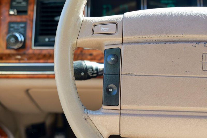 This Town Car Executive is nicely equipped with 4-Wheel Disc Brakes, ABS brakes, Air Conditioning, Alloy wheels, AM/FM radio, Automatic temperature control, Bodyside moldings, Bumpers: body-color, Cassette, Driver door bin, Dual front impact airbags, Front Center Armrest, Front reading lights, Heated door mirrors, Leather steering wheel, Passenger door bin, Power door mirrors, Power steering, Power windows, Rear reading lights, Rear seat center armrest, Rear window defroster, Remote keyless entry, Speed control, Speed-sensing steering, and Tilt steering wheel.