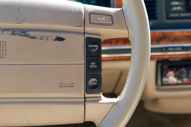 This Town Car Executive is nicely equipped with 4-Wheel Disc Brakes, ABS brakes, Air Conditioning, Alloy wheels, AM/FM radio, Automatic temperature control, Bodyside moldings, Bumpers: body-color, Cassette, Driver door bin, Dual front impact airbags, Front Center Armrest, Front reading lights, Heated door mirrors, Leather steering wheel, Passenger door bin, Power door mirrors, Power steering, Power windows, Rear reading lights, Rear seat center armrest, Rear window defroster, Remote keyless entry, Speed control, Speed-sensing steering, and Tilt steering wheel.
