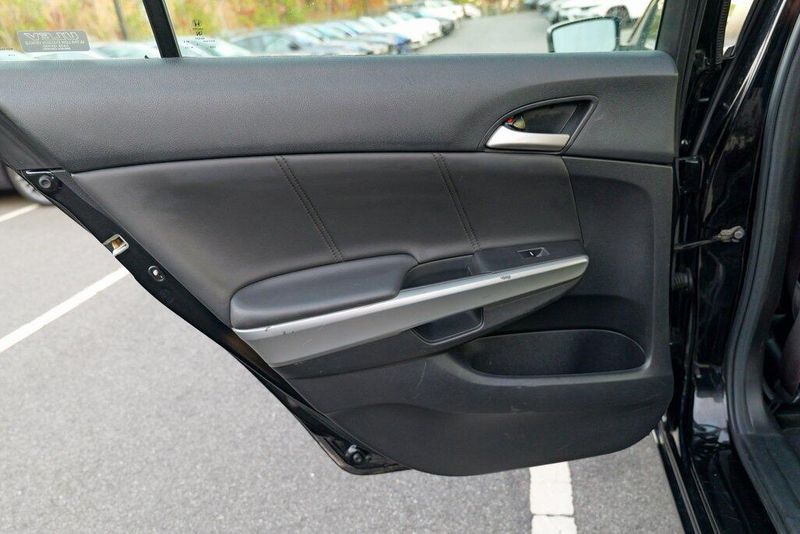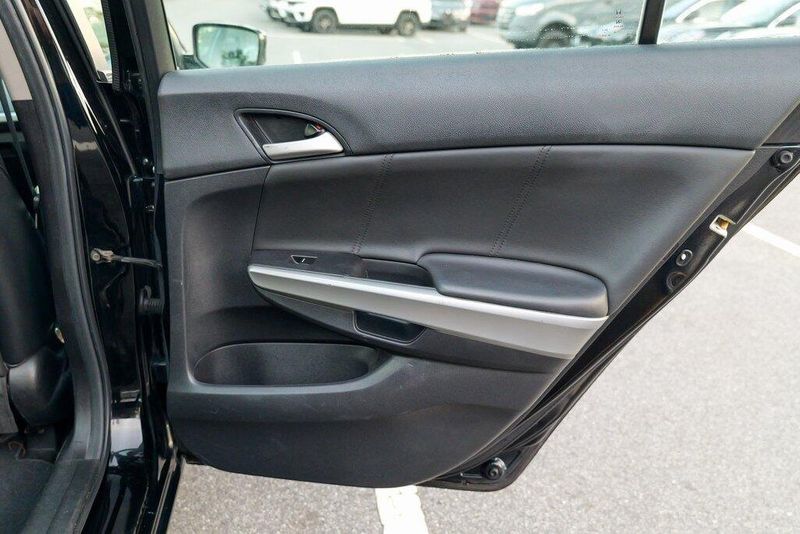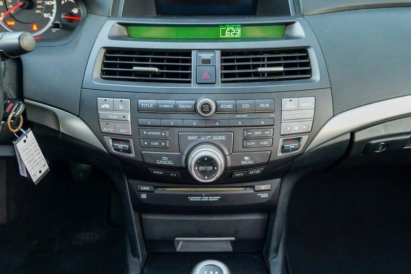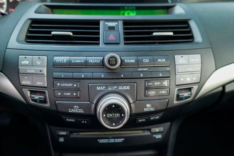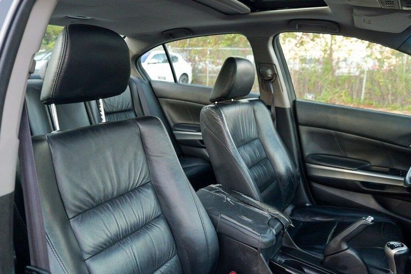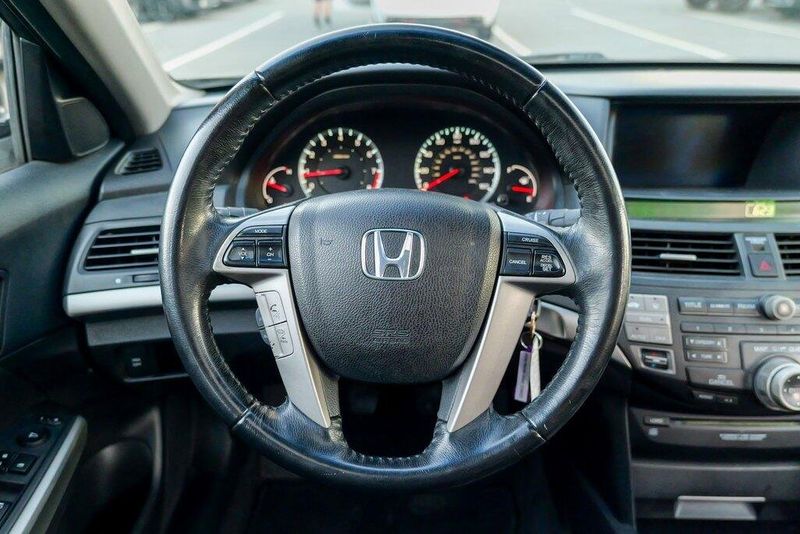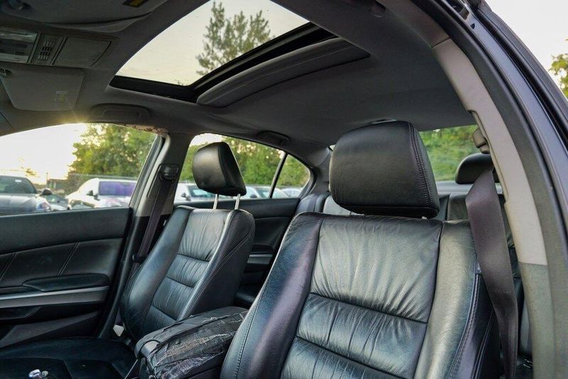 This Accord EX-L is nicely equipped with Black Leather, 17'' Alloy Wheels, 4-Wheel Disc Brakes, 7 Speakers, ABS brakes, Air Conditioning, Alloy wheels, AM/FM radio: XM, Anti-whiplash front head restraints, Auto-dimming Rear-View mirror, Automatic temperature control, Brake assist, Bumpers: body-color, CD player, Compass, Delay-off headlights, Driver door bin, Driver vanity mirror, Dual front impact airbags, Dual front side impact airbags, Electronic Stability Control, Four wheel independent suspension, Front anti-roll bar, Front Bucket Seats, Front Center Armrest, Front dual zone A/C, Front reading lights, Fully automatic headlights, Heated door mirrors, Heated Front Bucket Seats, Heated front seats, Illuminated entry, Leather Shift Knob, Leather-Trimmed Seat Trim, Low tire pressure warning, Occupant sensing airbag, Outside temperature display, Overhead airbag, Overhead console, Panic alarm, Passenger door bin, Passenger vanity mirror, Power door mirrors, Power driver seat, Power moonroof, Power steering, Power windows, Radio data system, Rear anti-roll bar, Rear seat center armrest, Rear window defroster, Remote keyless entry, Security system, Speed control, Speed-sensing steering, Speed-Sensitive Wipers, Steering wheel mounted audio controls, Tachometer, Telescoping steering wheel, Tilt steering wheel, Traction control, Variably intermittent wipers, and XM Satellite Radio.