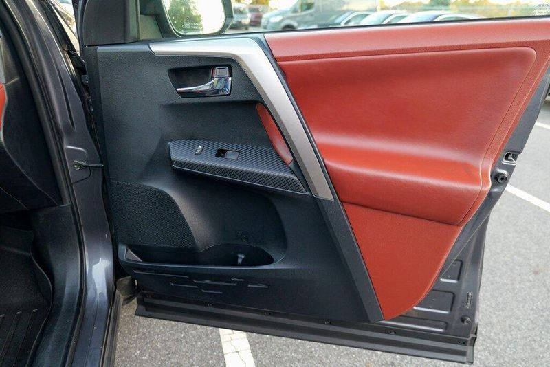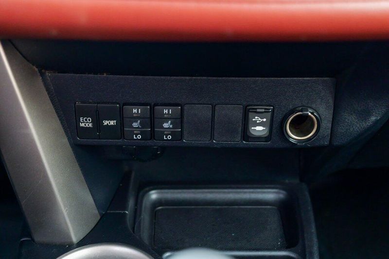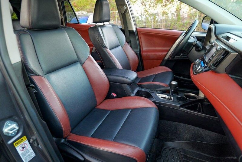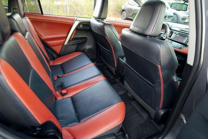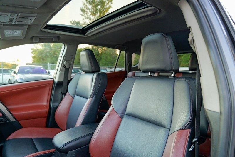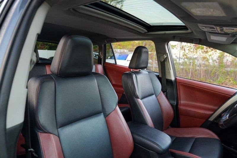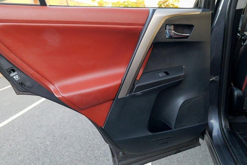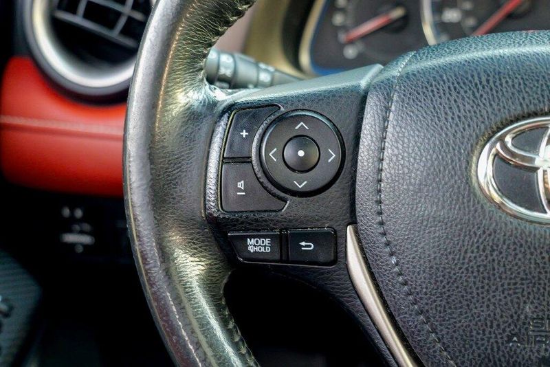 This RAV4 Limited is nicely equipped with AWD, red and black combined interior Artificial Leather, 18'' x 7.5J Alloy Wheels, 4-Wheel Disc Brakes, 4.071 Axle Ratio, 6 Speakers, ABS brakes, Air Conditioning, Alloy wheels, AM/FM radio, Auto-dimming Rear-View mirror, Automatic temperature control, Brake assist, Bumpers: body-color, CD player, Driver door bin, Driver vanity mirror, Dual front impact airbags, Dual front side impact airbags, Electronic Stability Control, Exterior Parking Camera Rear, Four wheel independent suspension, Front anti-roll bar, Front Bucket Seats, Front Center Armrest, Front dual zone A/C, Front fog lights, Front reading lights, Fully automatic headlights, Heated door mirrors, Heated front seats, Heated Front Sport Seats, Illuminated entry, Knee airbag, Leather Shift Knob, Leather steering wheel, Low tire pressure warning, Memory seat, Occupant sensing airbag, Outside temperature display, Overhead airbag, Overhead console, Panic alarm, Passenger door bin, Passenger vanity mirror, Power door mirrors, Power driver seat, Power Liftgate, Power moonroof, Power steering, Power windows, Radio: AM/FM/CD/MP3/WMA Playback w/6 Speakers, Rear anti-roll bar, Rear seat center armrest, Rear window defroster, Rear window wiper, Remote keyless entry, Roof rack: rails only, SofTex Seat Trim, Speed control, Speed-sensing steering, Split folding rear seat, Spoiler, Steering wheel mounted audio controls, Tachometer, Telescoping steering wheel, Tilt steering wheel, Traction control, Trip computer, Turn signal indicator mirrors, and Variably intermittent wipers.