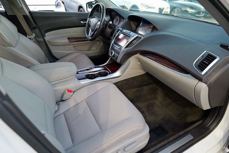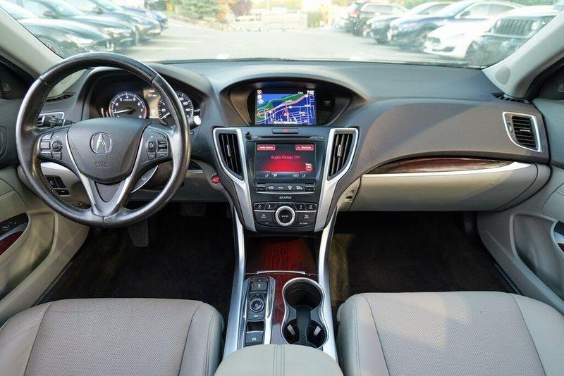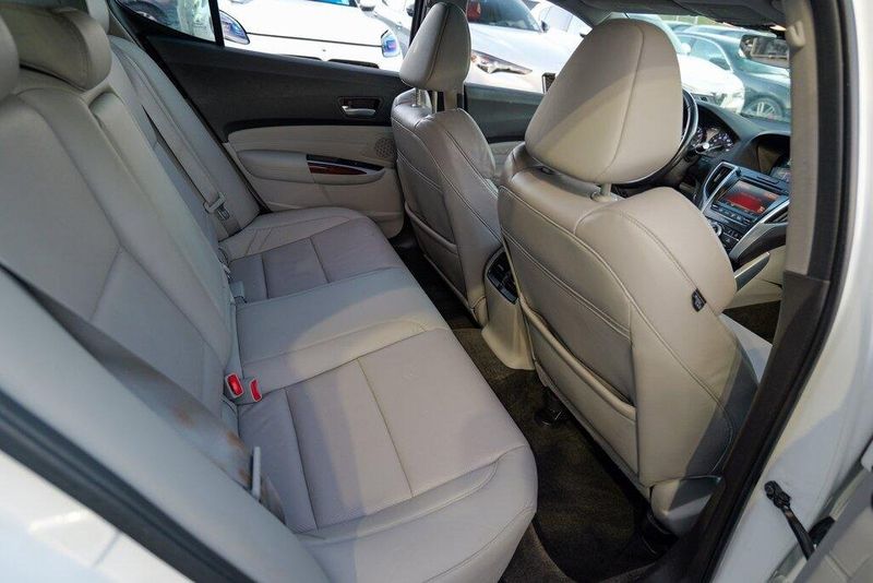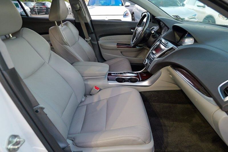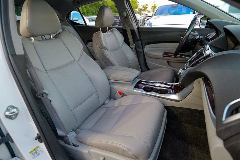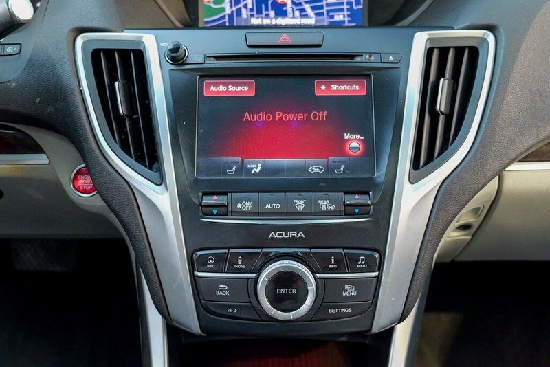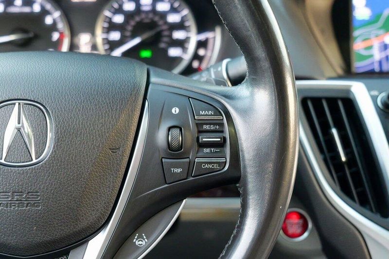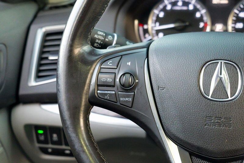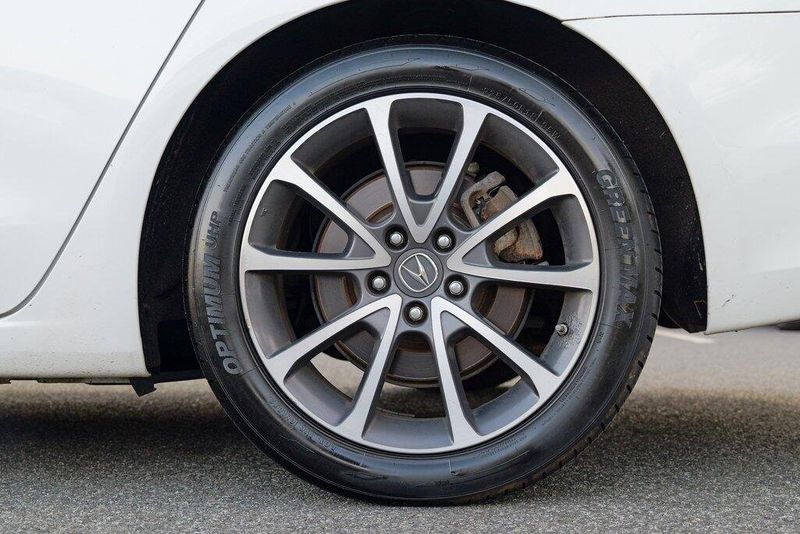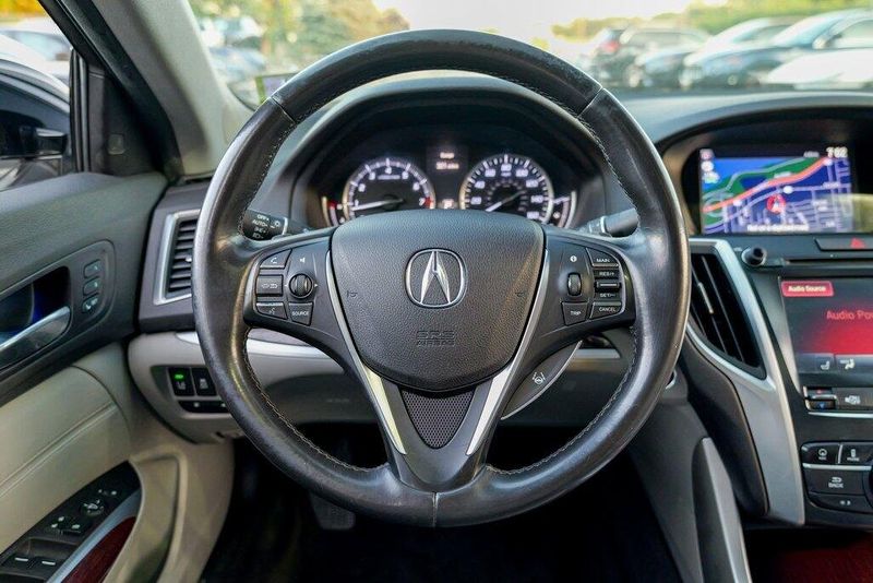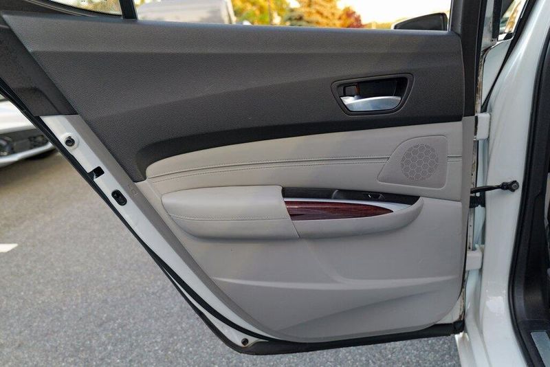 This TLX 3.5L V6 is nicely equipped with 10 Speakers, 18'' x 7.5'' Aluminum Alloy Wheels, 4-Wheel Disc Brakes, ABS brakes, Air Conditioning, Alloy wheels, AM/FM radio: SiriusXM, Anti-whiplash front head restraints, Auto-dimming Rear-View mirror, Automatic temperature control, Brake assist, Bumpers: body-color, CD player, Compass, Delay-off headlights, Driver door bin, Driver vanity mirror, Dual front impact airbags, Dual front side impact airbags, Electronic Stability Control, Exterior Parking Camera Rear, Four wheel independent suspension, Front anti-roll bar, Front Bucket Seats, Front Center Armrest w/Storage, Front dual zone A/C, Front reading lights, Garage door transmitter: HomeLink, Heated door mirrors, Heated front seats, Heated Front Sport Seats, HVAC memory, Illuminated entry, Knee airbag, Leather steering wheel, Low tire pressure warning, Memory seat, Navigation System, Occupant sensing airbag, Outside temperature display, Overhead airbag, Overhead console, Panic alarm, Passenger door bin, Passenger vanity mirror, Power door mirrors, Power driver seat, Power moonroof, Power passenger seat, Power steering, Power windows, Premium audio system: Acura/ELS Surround, Premium Milano Perforated Leather Trimmed Seats, Radio data system, Radio: Acura/ELS Studio Premium Audio System, Rain sensing wipers, Rear anti-roll bar, Rear seat center armrest, Rear window defroster, Remote keyless entry, Security system, Speed control, Speed-sensing steering, Speed-Sensitive Wipers, Split folding rear seat, Sport steering wheel, Steering wheel mounted audio controls, Tachometer, Telescoping steering wheel, Tilt steering wheel, Traction control, Trip computer, Turn signal indicator mirrors, and Variably intermittent wipers.