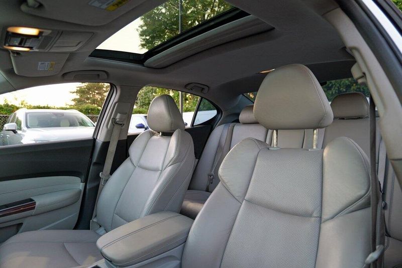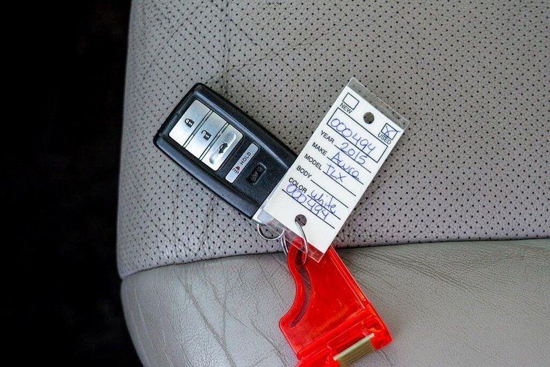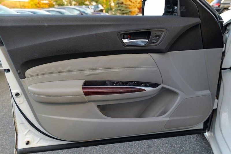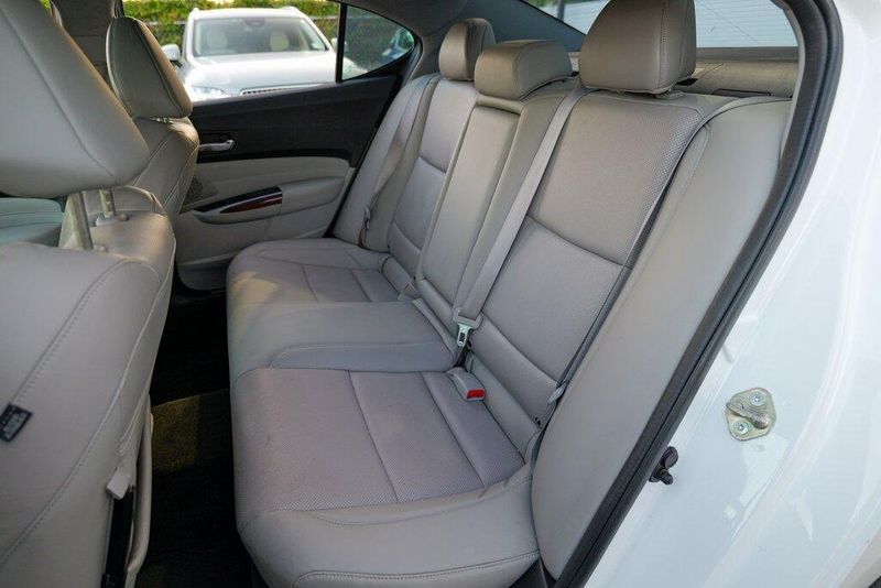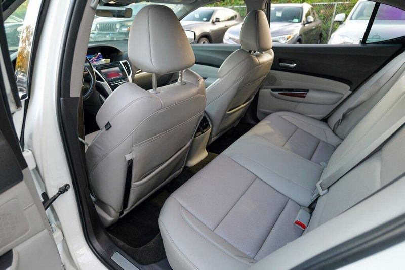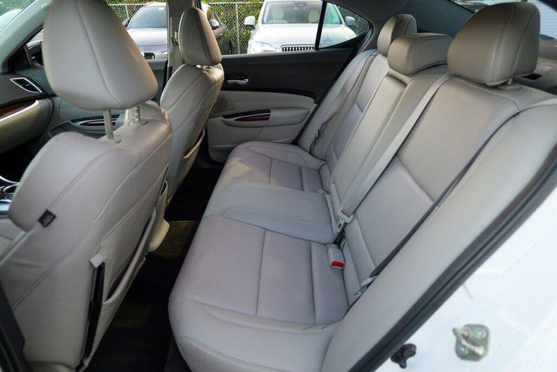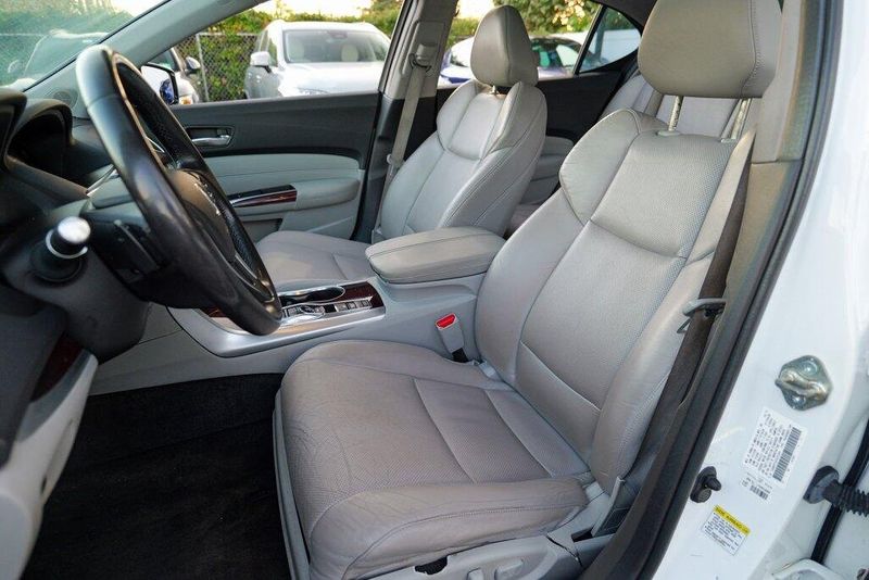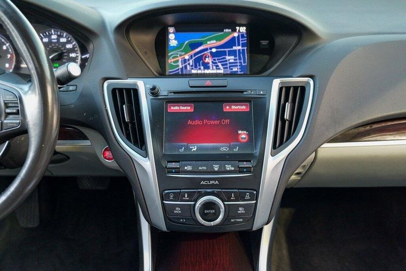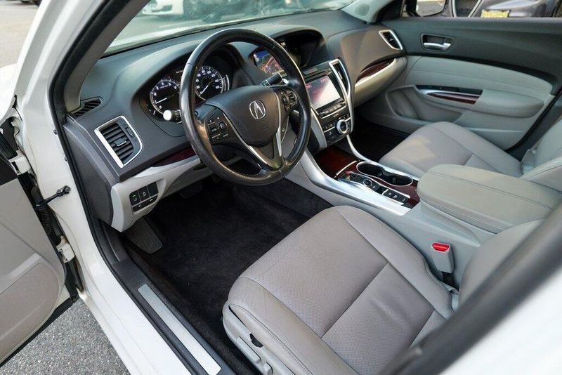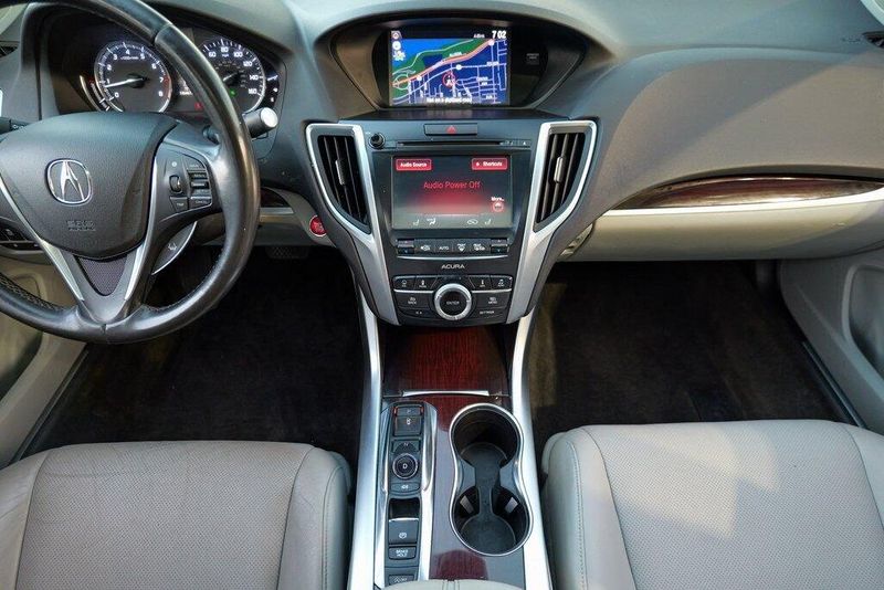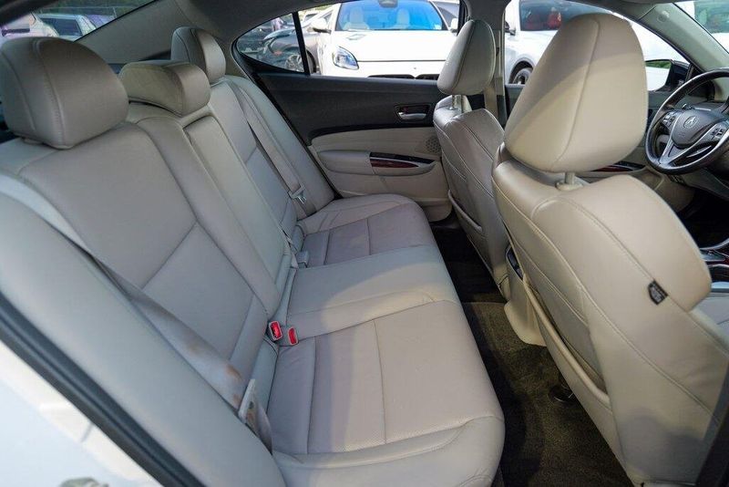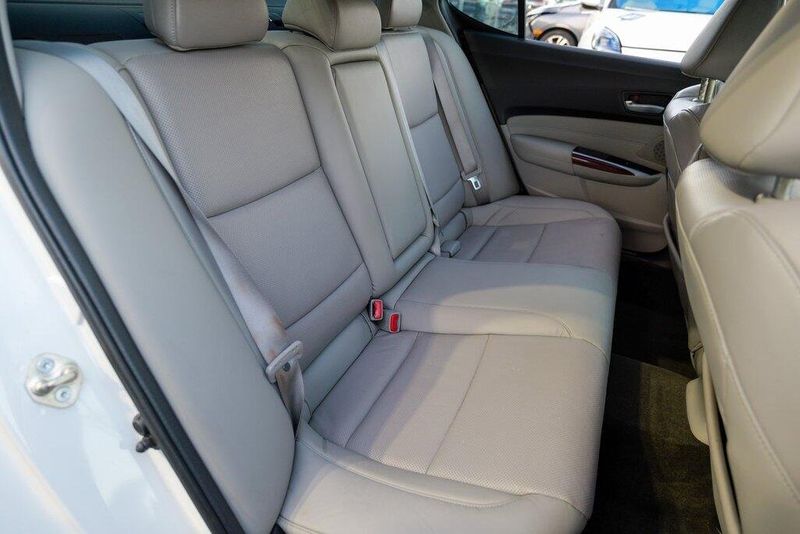 This TLX 3.5L V6 is nicely equipped with 10 Speakers, 18'' x 7.5'' Aluminum Alloy Wheels, 4-Wheel Disc Brakes, ABS brakes, Air Conditioning, Alloy wheels, AM/FM radio: SiriusXM, Anti-whiplash front head restraints, Auto-dimming Rear-View mirror, Automatic temperature control, Brake assist, Bumpers: body-color, CD player, Compass, Delay-off headlights, Driver door bin, Driver vanity mirror, Dual front impact airbags, Dual front side impact airbags, Electronic Stability Control, Exterior Parking Camera Rear, Four wheel independent suspension, Front anti-roll bar, Front Bucket Seats, Front Center Armrest w/Storage, Front dual zone A/C, Front reading lights, Garage door transmitter: HomeLink, Heated door mirrors, Heated front seats, Heated Front Sport Seats, HVAC memory, Illuminated entry, Knee airbag, Leather steering wheel, Low tire pressure warning, Memory seat, Navigation System, Occupant sensing airbag, Outside temperature display, Overhead airbag, Overhead console, Panic alarm, Passenger door bin, Passenger vanity mirror, Power door mirrors, Power driver seat, Power moonroof, Power passenger seat, Power steering, Power windows, Premium audio system: Acura/ELS Surround, Premium Milano Perforated Leather Trimmed Seats, Radio data system, Radio: Acura/ELS Studio Premium Audio System, Rain sensing wipers, Rear anti-roll bar, Rear seat center armrest, Rear window defroster, Remote keyless entry, Security system, Speed control, Speed-sensing steering, Speed-Sensitive Wipers, Split folding rear seat, Sport steering wheel, Steering wheel mounted audio controls, Tachometer, Telescoping steering wheel, Tilt steering wheel, Traction control, Trip computer, Turn signal indicator mirrors, and Variably intermittent wipers.