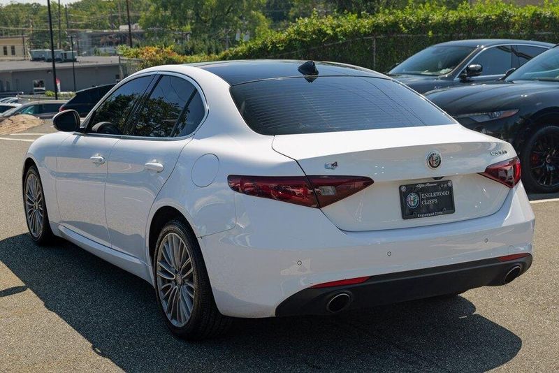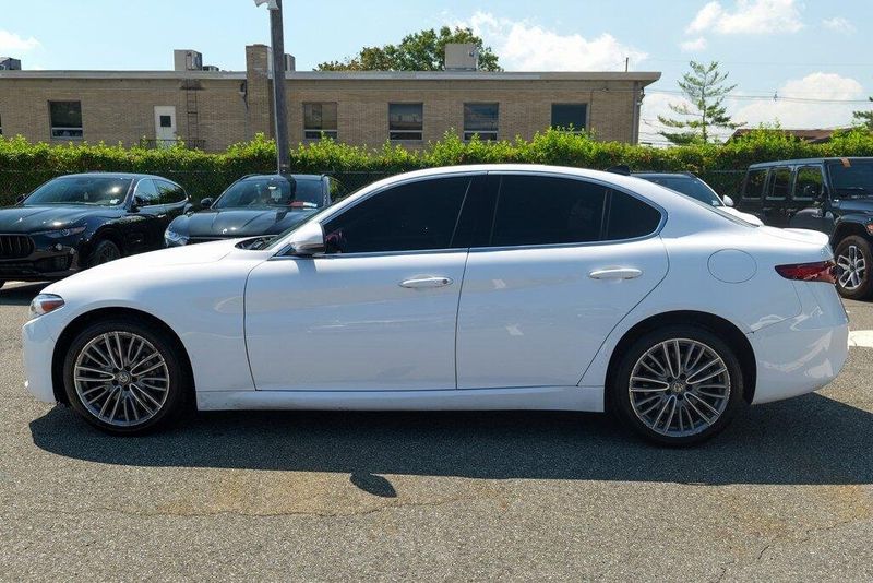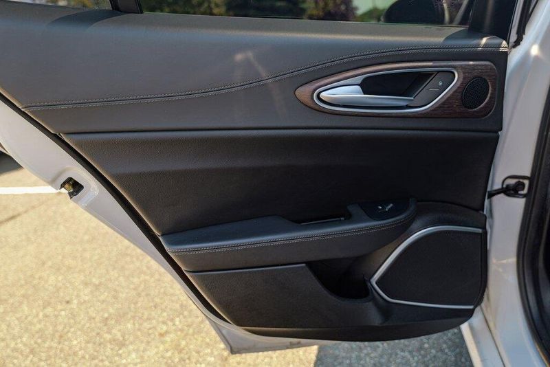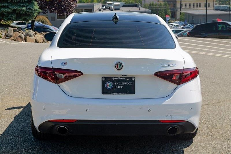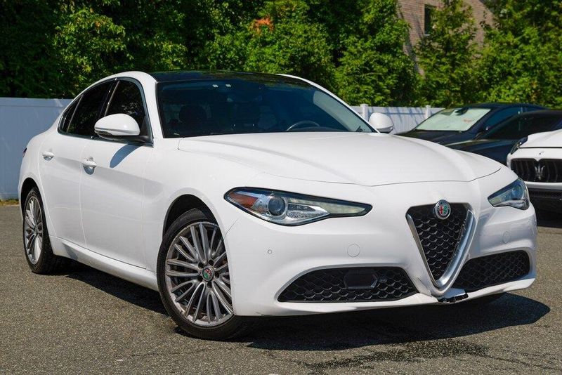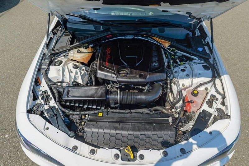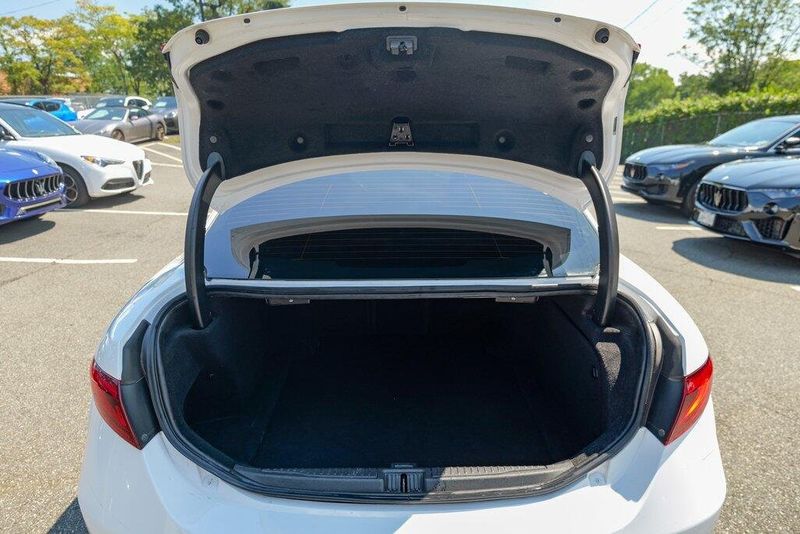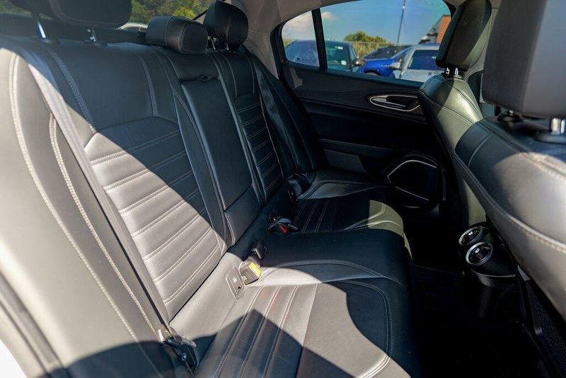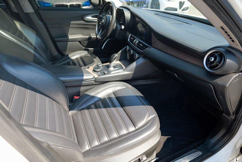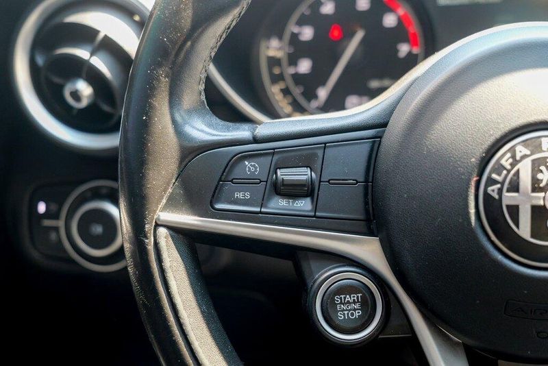 This Giulia Ti is nicely equipped with Driver Assistance Static Package (Auto-Dimming Exterior Mirrors and Blind Spot & Cross Path Detection), Quick Order Package 22G, Ti Lusso Package (DISC) (Air Quality System, Luxury Leather Trimmed Seats, Luxury Steering Wheel, Power Adjust 8-Way Driver Seat, Power Adjust 8-Way Front Passenger Seat, and Wheels: 18'' x 8.0'' Lusso Aluminum), 4-Wheel Disc Brakes, 8 Speakers, 8.8'' Widescreen Color Display, ABS brakes, Air Conditioning, Alloy wheels, AM/FM radio: SiriusXM, Auto-dimming Rear-View mirror, Automatic temperature control, Bluetooth Handsfree Phone & Audio, Brake assist, Bumpers: body-color, Compass, Delay-off headlights, Driver door bin, Driver vanity mirror, Dual front impact airbags, Dual front side impact airbags, Dual-Pane Sunroof, Electronic Stability Control, Exterior Parking Camera Rear, Four wheel independent suspension, Front anti-roll bar, Front Bucket Seats, Front Center Armrest, Front dual zone A/C, Front reading lights, Fully automatic headlights, Garage door transmitter, Genuine wood console insert, Genuine wood dashboard insert, Genuine wood door panel insert, GPS Navigation, harman/kardon Premium Audio, HD Radio, Heated door mirrors, Heated front seats, Heated steering wheel, High intensity discharge headlights: Bi-Xenon, Illuminated entry, Knee airbag, Leather Dash & Upper Doors (DISC), Leather Seats, Leather steering wheel, Low tire pressure warning, Occupant sensing airbag, Outside temperature display, Overhead airbag, Overhead console, Panic alarm, Passenger door bin, Passenger vanity mirror, Power door mirrors, Power driver seat, Power passenger seat, Power steering, Power windows, Radio data system, Radio: AM/FM/HD Bluetooth w/Nav 8.8, Radio: AM/FM/HD w/Bluetooth 8.8, Rain sensing wipers, Rear anti-roll bar, Rear fog lights, Rear reading lights, Rear seat center armrest, Rear window defroster, Remote Audio Controls, Remote keyless entry, Security system, Speed control, Speed-sensing steering, Speed-Sensitive Wipers, Split folding rear seat, Steering wheel mounted audio controls, Tachometer, Telescoping steering wheel, Tilt steering wheel, Traction control, Trip computer, Turn signal indicator mirrors, Variably intermittent wipers, and Wheels: 18'' x 8.0'' Dark Turbine Aluminum.