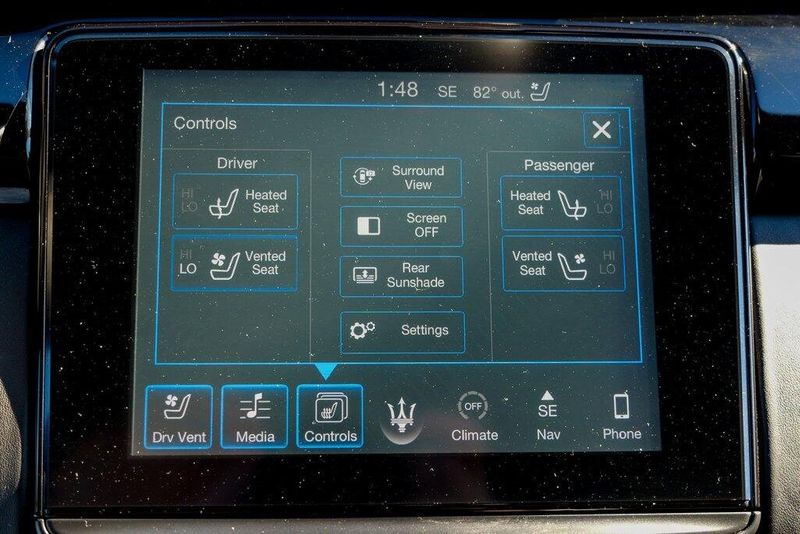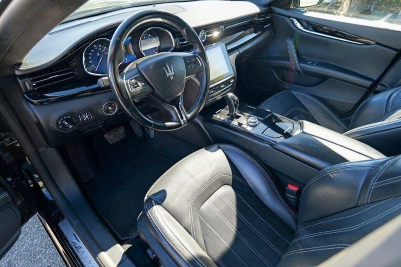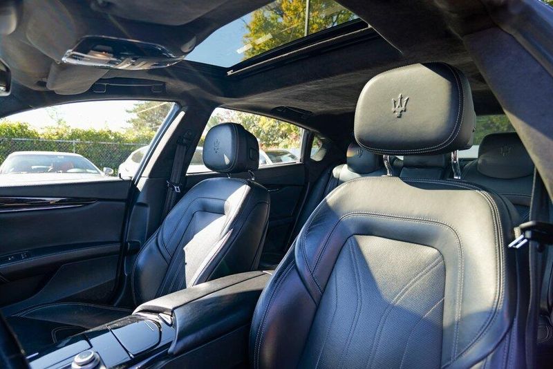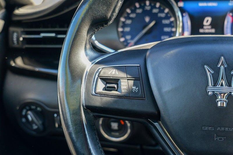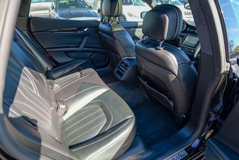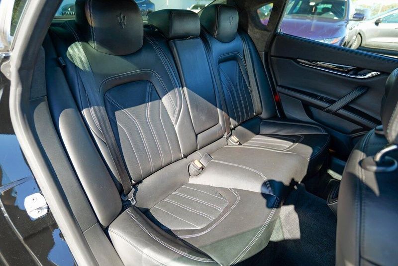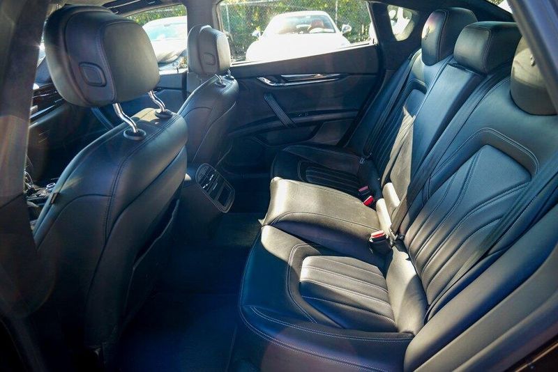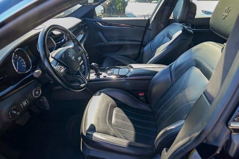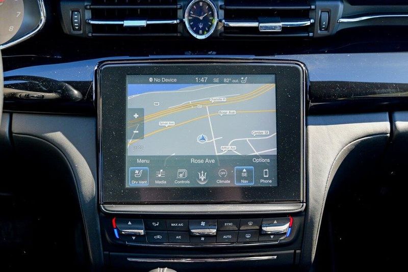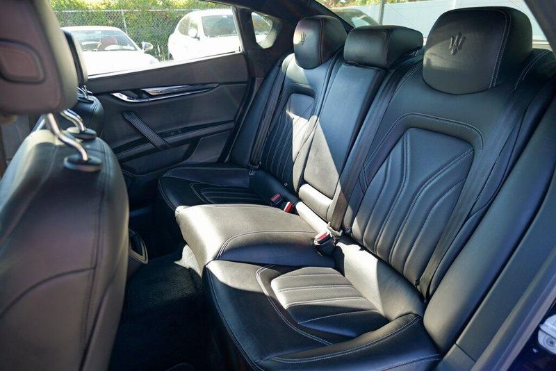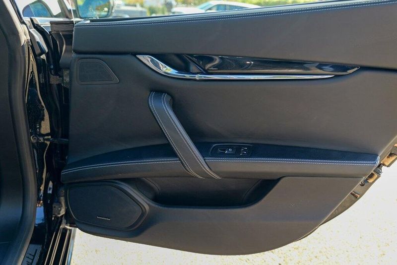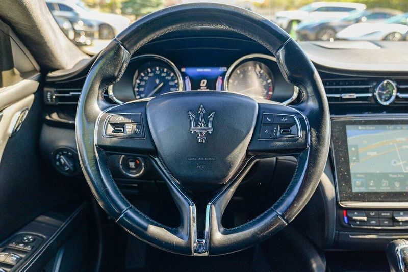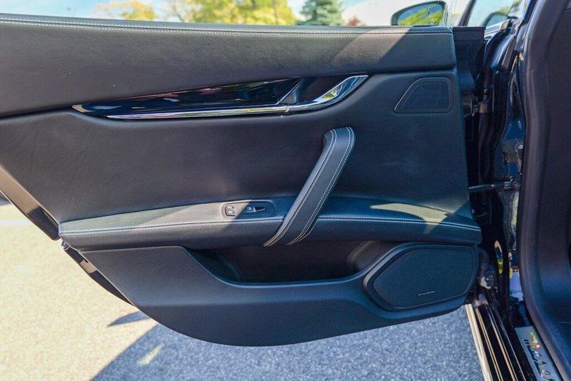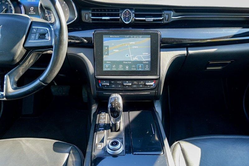 This Quattroporte S GranLusso is nicely equipped with 3.0L V6, 10 Speakers, 4-Wheel Disc Brakes, ABS brakes, Adaptive suspension, Air Conditioning, Alloy wheels, AM/FM radio: SiriusXM, Anti-whiplash front head restraints, Apple CarPlay/Android Auto, Auto tilt-away steering wheel, Auto-dimming door mirrors, Auto-dimming Rear-View mirror, Automatic temperature control, Bumpers: body-color, Delay-off headlights, Door auto-latch, Driver door bin, Driver vanity mirror, Dual front impact airbags, Dual front side impact airbags, Electronic Stability Control, Exterior Parking Camera Rear, Four wheel independent suspension, Front anti-roll bar, Front Bucket Seats, Front Center Armrest, Front dual zone A/C, Front reading lights, Front Seat Ventilation, Garage door transmitter, harman/kardon Speakers, Headlight cleaning, Heated door mirrors, Heated front seats, High intensity discharge headlights: Bi-Xenon, Illuminated entry, Leather Shift Knob, Low tire pressure warning, Memory seat, Navigation System, Occupant sensing airbag, Outside temperature display, Overhead airbag, Overhead console, Passenger door bin, Passenger vanity mirror, Power door mirrors, Power driver seat, Power moonroof, Power passenger seat, Power steering, Power windows, Radio data system, Radio: AM/FM w/Maserati Touch Control Plus & Nav, Rain sensing wipers, Rear anti-roll bar, Rear fog lights, Rear reading lights, Rear seat center armrest, Rear window defroster, Remote keyless entry, Security system, Speed control, Speed-sensing steering, Speed-Sensitive Wipers, Split folding rear seat, Steering wheel memory, Steering wheel mounted audio controls, Tachometer, Telescoping steering wheel, Tilt steering wheel, Traction control, Trip computer, Turn signal indicator mirrors, Variably intermittent wipers, Voltmeter, Wheels: 20'' Mercurio Alloy, and Wheels: 20'' Urano Alloy.