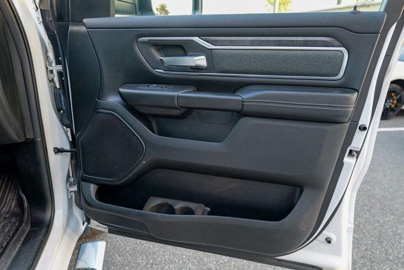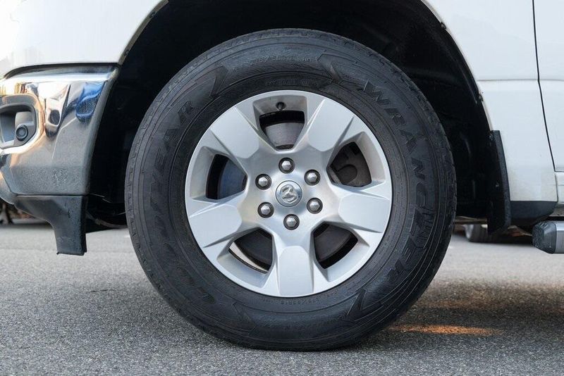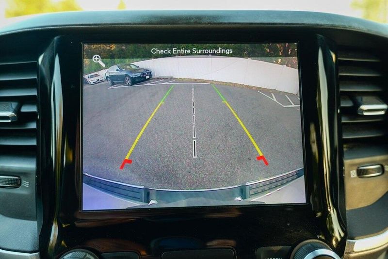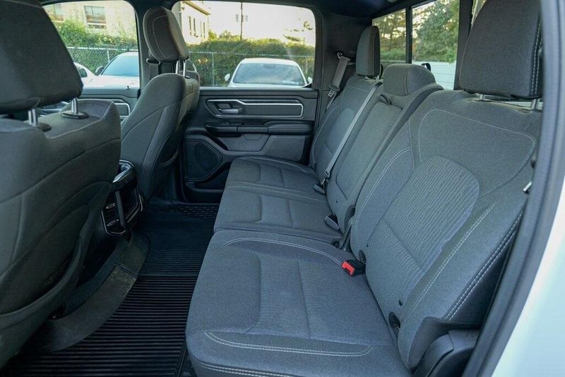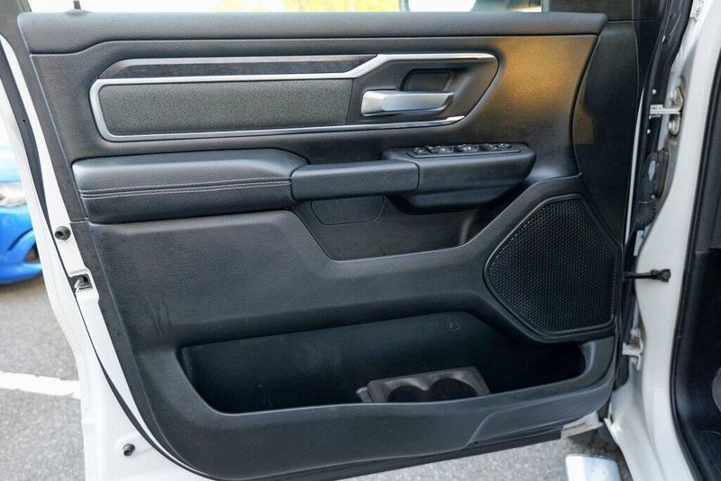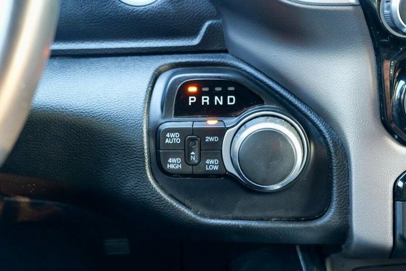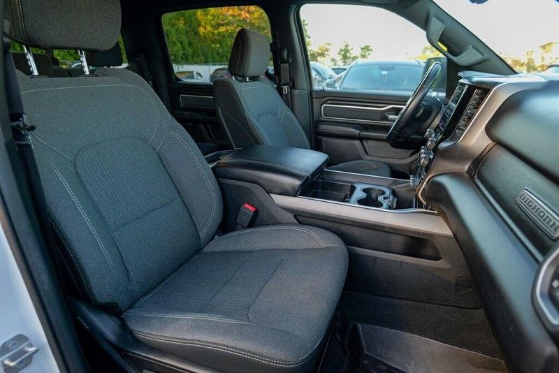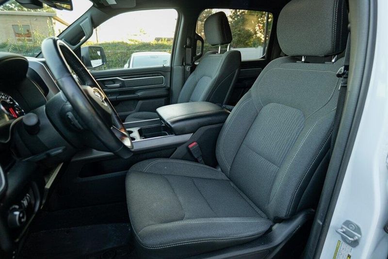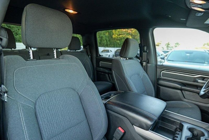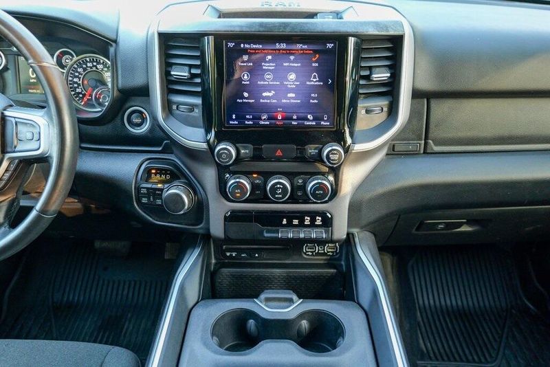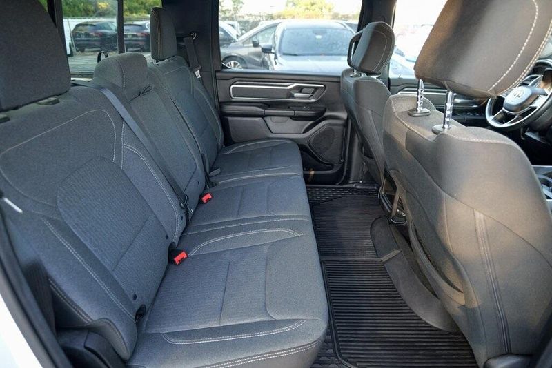 This 1500 Big Horn/Lone Star is nicely equipped with Bed Utility Group (4 Adjustable Cargo Tie-Down Hooks, Pick-Up Box Lighting, and Spray In Bedliner), Big Horn Level 1 Equipment Group (Auto-Dimming Rear-View Mirror, Big Horn IP Badge, Class IV Receiver Hitch, Cluster 3.5'' TFT Color Display, Foam Bottle Insert (Door Trim Panel), Glove Box Lamp, Power 4-Way Driver Lumbar Adjust, Power 8-Way Driver Seat, Power Adjustable Pedals, Power Heated Fold Away Mirrors, Radio: Uconnect 4 w/8.4'' Display, Rear Dome w/On/Off Switch Lamp, Rear Power Sliding Window, Rear Window Defroster, Single Disc Remote CD Player, SiriusXM Satellite Radio, Sun Visors w/Illuminated Vanity Mirrors, and Universal Garage Door Opener), Quick Order Package 25Z Big Horn/Lone Star (Steering Wheel Mounted Audio Controls), 1-Year SiriusXM Radio Service, 1-Yr SiriusXM Guardian Trial, 3 Rear Seat Head Restraints, 3.21 Rear Axle Ratio, 4 Way Front Headrests, 4-Wheel Disc Brakes, 400W Inverter, 48V Belt Starter Generator, 5-Year SiriusXM Traffic Service, 5-Year SiriusXM Travel Link Service, 6 Speakers, 8.4'' Touchscreen Display, ABS brakes, Air Conditioning, Air Conditioning ATC w/Dual Zone Control, Alloy wheels, AM/FM radio, Apple CarPlay, Brake assist, Bumpers: chrome, Cloth Bench Seat, Compass, Delay-off headlights, Disassociated Touchscreen Display, Driver door bin, Dual front impact airbags, Dual front side impact airbags, Electronic Stability Control, For Details, Visit DriveUconnect.com, For More Info, Call 800-643-2112, Front & Rear Rubber Floor Mats, Front anti-roll bar, Front Center Armrest w/Storage, Front fog lights, Front reading lights, Front Seat Back Map Pockets, Front wheel independent suspension, Fully automatic headlights, Google Android Auto, GPS Antenna Input, GPS Navigation, HD Radio, Heated door mirrors, Illuminated entry, Integrated Center Stack Radio, Leather steering wheel, Low tire pressure warning, No Satellite Coverage w/HI/AK/PR/VI/GU, Occupant sensing airbag, Outside temperature display, Overhead airbag, Overhead console, Panic alarm, ParkSense Front/Rear Park Assist w/Stop, ParkView Rear Back-Up Camera, Passenger door bin, Passenger vanity mirror, Power door mirrors, Power steering, Power windows, Radio data system, Radio: Uconnect 3 w/5'' Display, Radio: Uconnect 4C Nav w/8.4'' Display, RamBox Cargo Management System, Rear 60/40 Folding Seat, Rear anti-roll bar, Rear seat center armrest, Rear step bumper, Remote keyless entry, Remote Start System, SiriusXM Traffic Plus, SiriusXM Travel Link, Speed control, Split folding rear seat, Tachometer, Telescoping steering wheel, Tilt steering wheel, Traction control, Trip computer, Variably intermittent wipers, Voltmeter, Wheel to Wheel Side Steps, and Wheels: 18'' x 8''