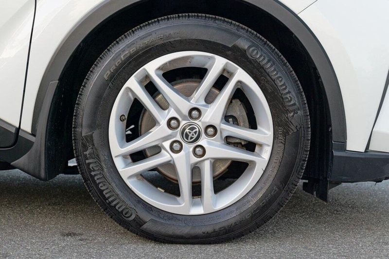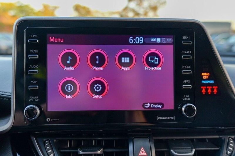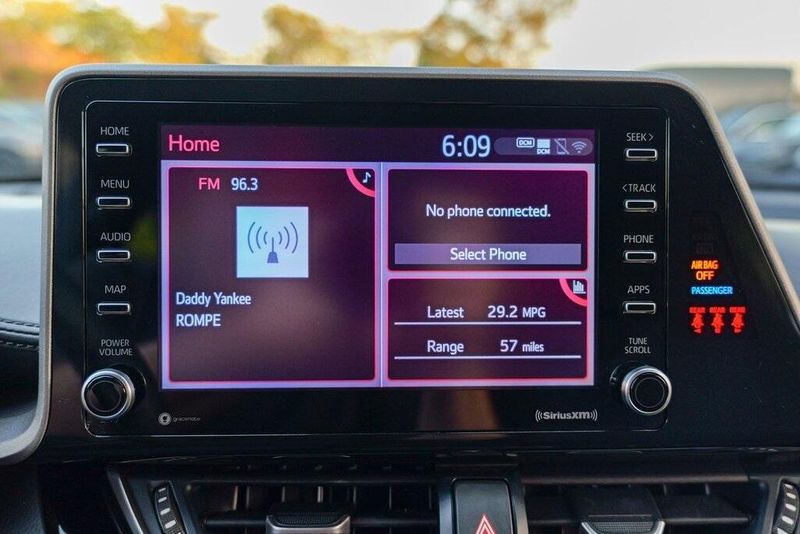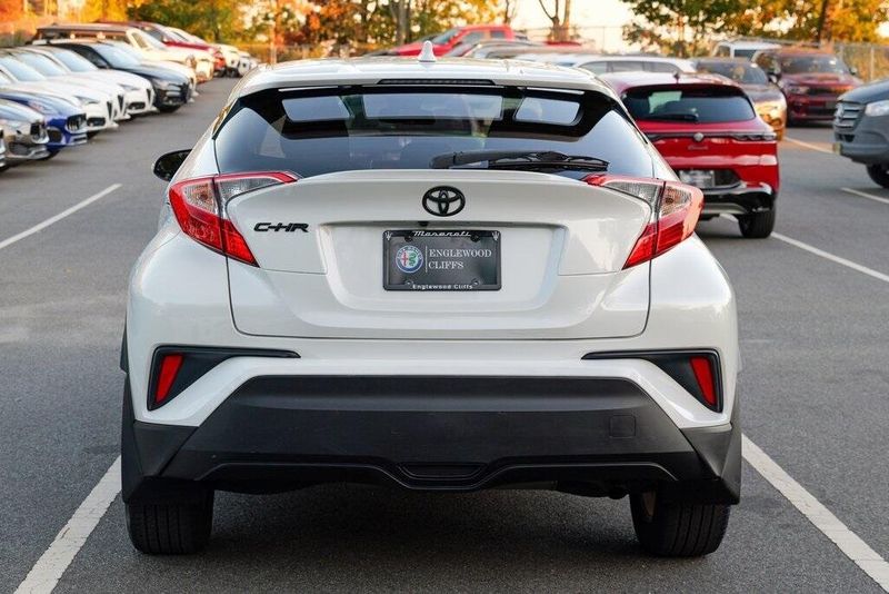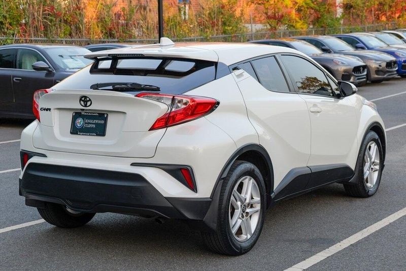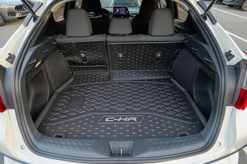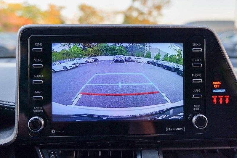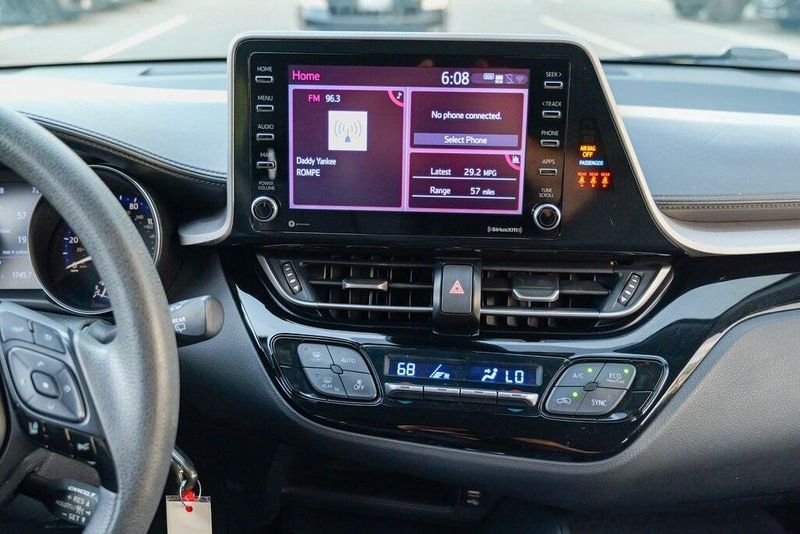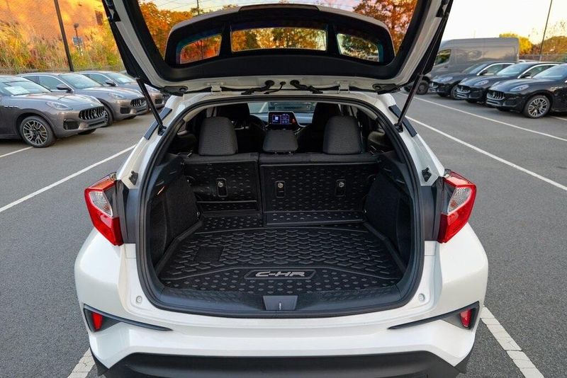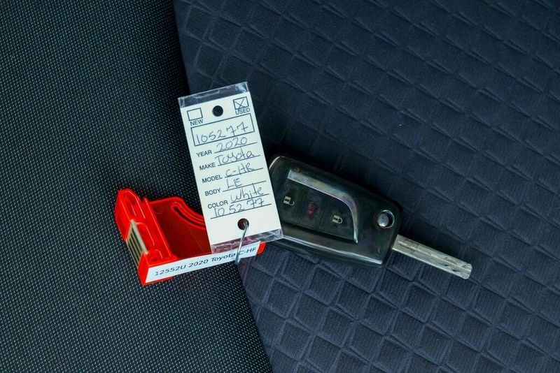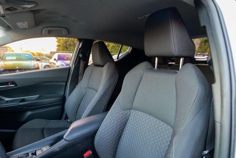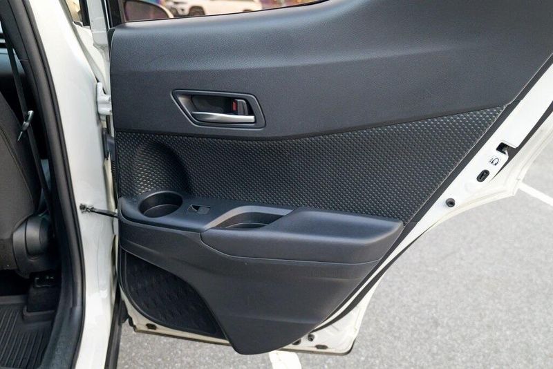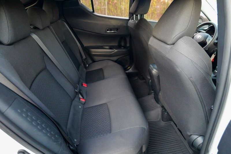 This C-HR LE is nicely equipped with 4-Wheel Disc Brakes, 6 Speakers, ABS brakes, Air Conditioning, AM/FM radio: SiriusXM, Apple CarPlay/Android Auto, Auto High-beam Headlights, Auto-dimming Rear-View mirror, Automatic temperature control, Axle Ratio: TBD, Brake assist, Bumpers: body-color, Delay-off headlights, Driver door bin, Driver vanity mirror, Dual front impact airbags, Dual front side impact airbags, Electronic Stability Control, Emergency communication system: Safety Connect with 1-year trial, Exterior Parking Camera Rear, Fabric Seat Material, Four wheel independent suspension, Front anti-roll bar, Front Bucket Seats, Front Center Armrest, Front dual zone A/C, Front reading lights, Fully automatic headlights, Heated door mirrors, Illuminated entry, Knee airbag, Leather Shift Knob, Low tire pressure warning, Occupant sensing airbag, Outside temperature display, Overhead airbag, Panic alarm, Passenger door bin, Passenger vanity mirror, Power door mirrors, Power steering, Power windows, Radio data system, Radio: AM/FM Stereo w/8'' Touch-Screen Display, Rear anti-roll bar, Rear side impact airbag, Rear window defroster, Rear window wiper, Remote keyless entry, Speed control, Speed-sensing steering, Split folding rear seat, Spoiler, Steering wheel mounted audio controls, Tachometer, Telescoping steering wheel, Tilt steering wheel, Traction control, Trip computer, Turn signal indicator mirrors, Variably intermittent wipers, and Wheels: 6.5'' x 17'' Steel.