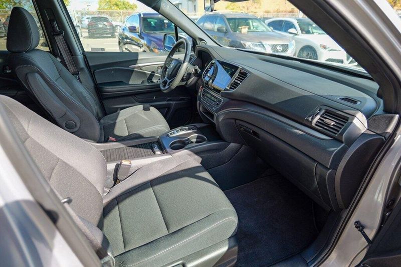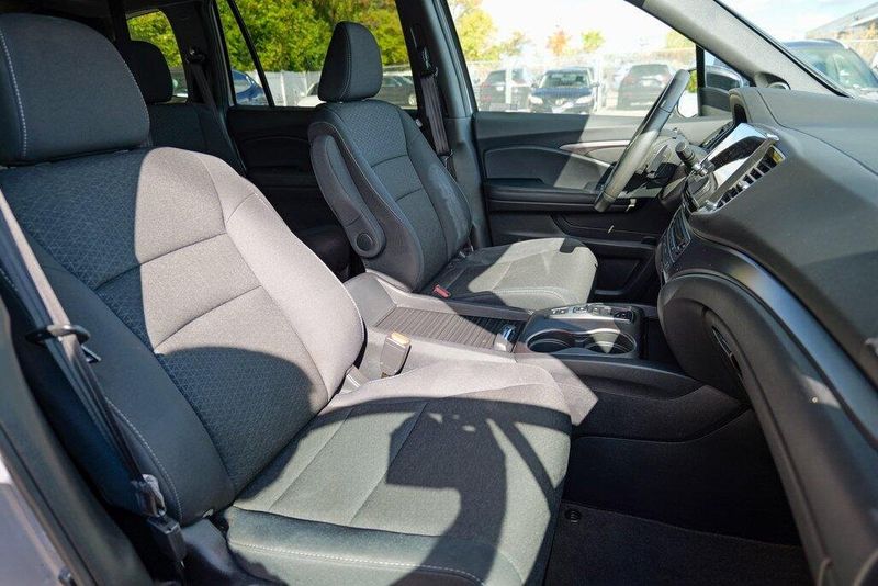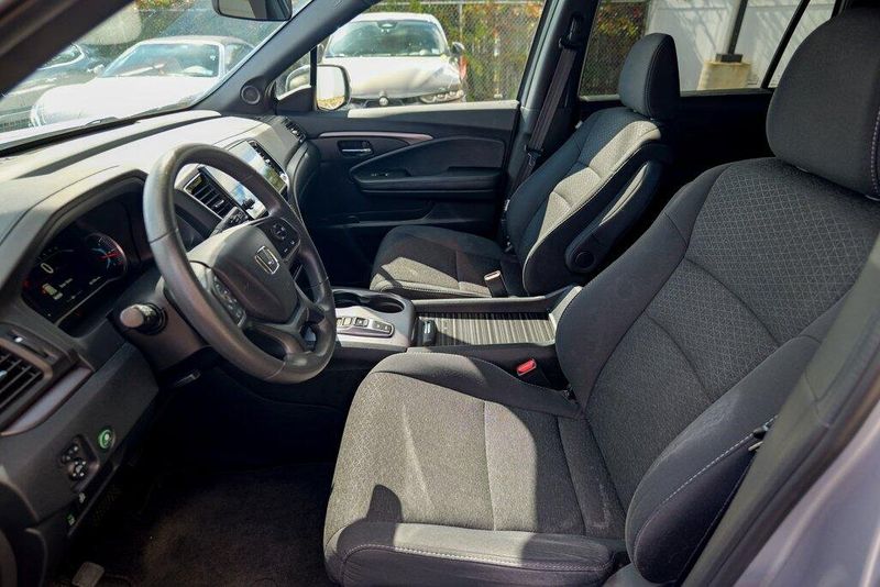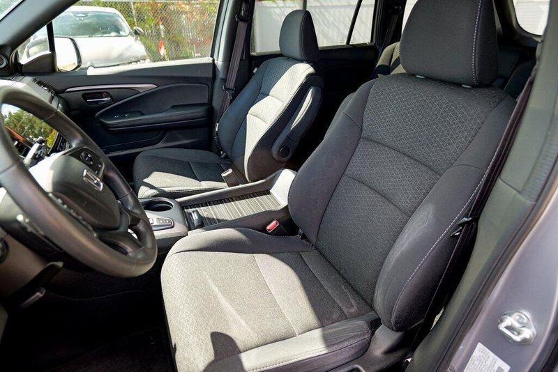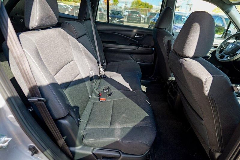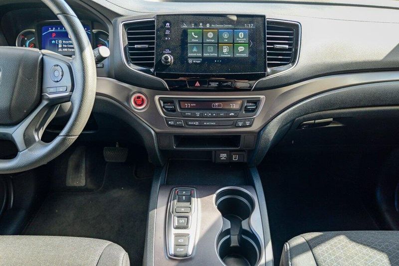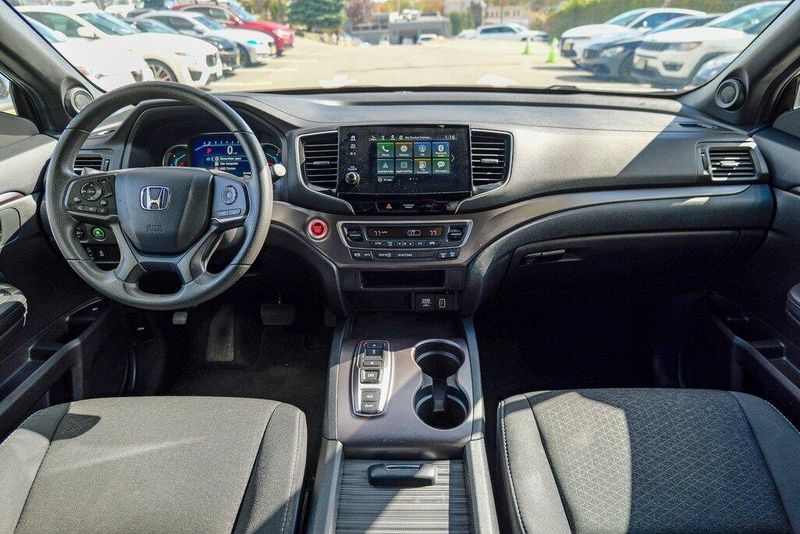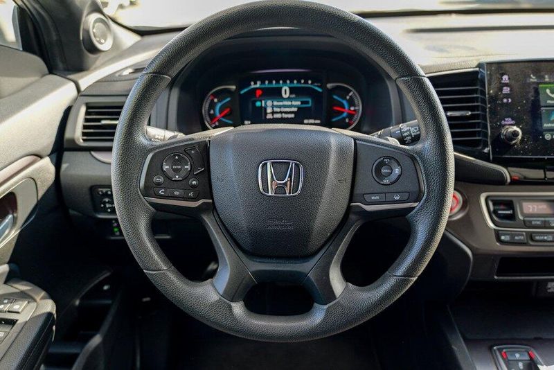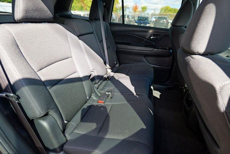 This Passport Sport is nicely equipped with 4-Wheel Disc Brakes, 4.334 Axle Ratio, 7 Speakers, ABS brakes, Air Conditioning, Alloy wheels, AM/FM radio, Apple CarPlay/Android Auto, Auto High-beam Headlights, Automatic temperature control, Brake assist, Bumpers: body-color, Cloth Seat Trim, Delay-off headlights, Driver door bin, Driver vanity mirror, Driver's Seat Mounted Armrest, Dual front impact airbags, Dual front side impact airbags, Electronic Stability Control, Emergency communication system, Exterior Parking Camera Rear, Forward collision: Collision Mitigation Braking System (CMBS) + FCW mitigation, Four wheel independent suspension, Front anti-roll bar, Front Bucket Seats, Front Center Armrest, Front dual zone A/C, Front fog lights, Front reading lights, Fully automatic headlights, Illuminated entry, Lane departure: Lane Keeping Assist System (LKAS) active, Low tire pressure warning, Occupant sensing airbag, Outside temperature display, Overhead airbag, Overhead console, Panic alarm, Passenger door bin, Passenger seat mounted armrest, Passenger vanity mirror, Power door mirrors, Power steering, Power windows, Radio data system, Radio: 215-Watt Audio System w/7 Speakers, Rear air conditioning, Rear anti-roll bar, Rear reading lights, Rear seat center armrest, Rear window defroster, Rear window wiper, Remote keyless entry, Security system, Speed control, Speed-sensing steering, Split folding rear seat, Spoiler, Steering wheel mounted audio controls, Tachometer, Telescoping steering wheel, Tilt steering wheel, Traction control, Trip computer, Variably intermittent wipers, and Wheels: 20'' Split-Spoke Gloss Black Alloy.