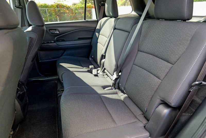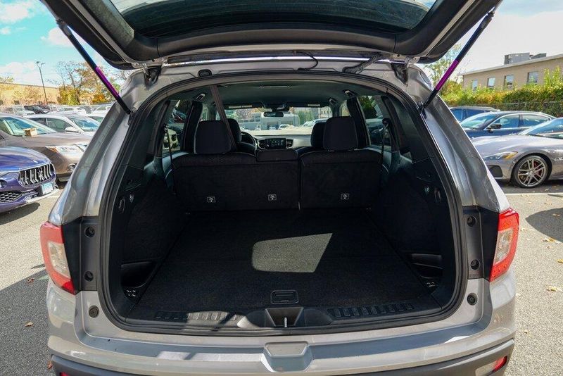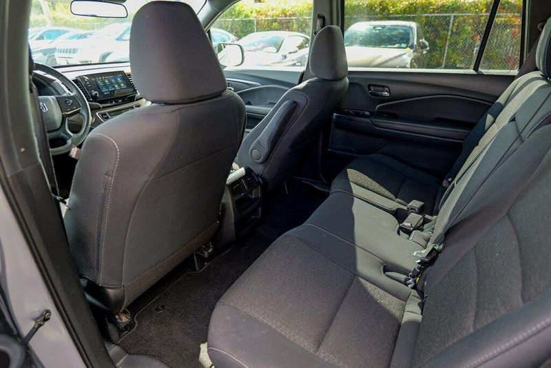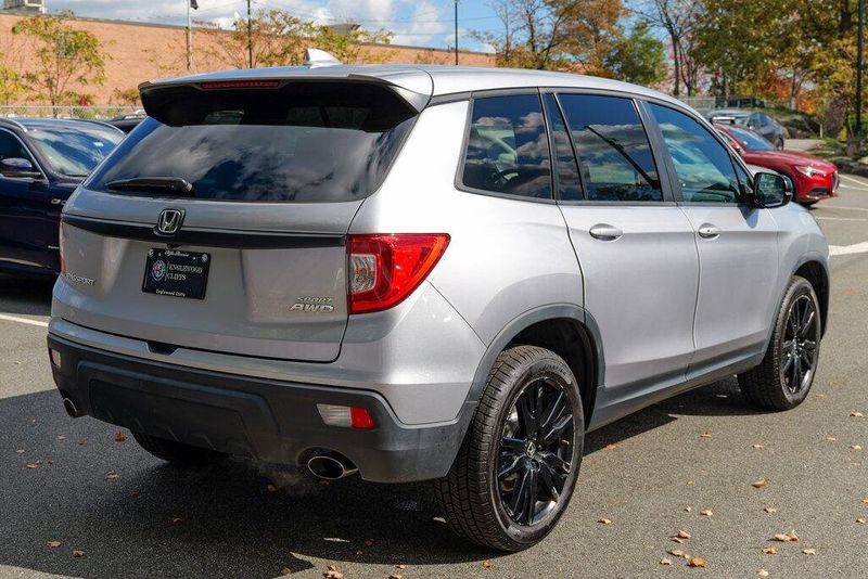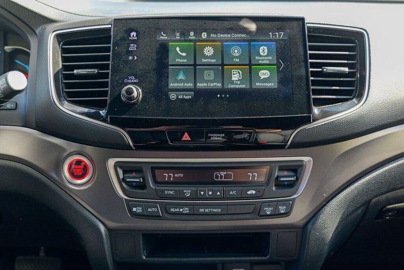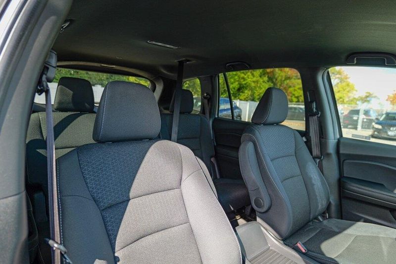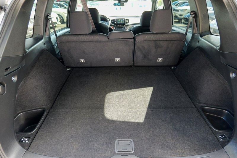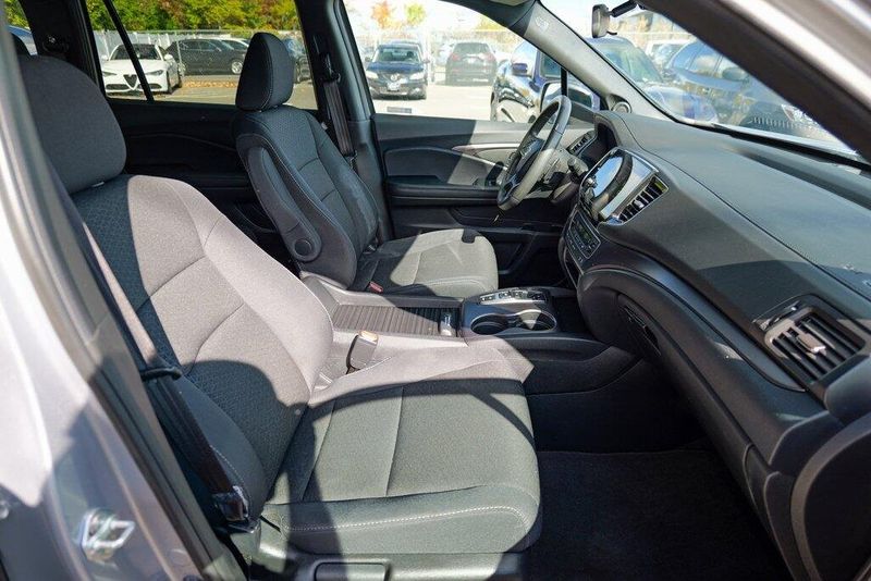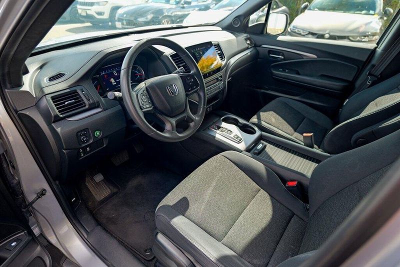 This Passport Sport is nicely equipped with 4-Wheel Disc Brakes, 4.334 Axle Ratio, 7 Speakers, ABS brakes, Air Conditioning, Alloy wheels, AM/FM radio, Apple CarPlay/Android Auto, Auto High-beam Headlights, Automatic temperature control, Brake assist, Bumpers: body-color, Cloth Seat Trim, Delay-off headlights, Driver door bin, Driver vanity mirror, Driver's Seat Mounted Armrest, Dual front impact airbags, Dual front side impact airbags, Electronic Stability Control, Emergency communication system, Exterior Parking Camera Rear, Forward collision: Collision Mitigation Braking System (CMBS) + FCW mitigation, Four wheel independent suspension, Front anti-roll bar, Front Bucket Seats, Front Center Armrest, Front dual zone A/C, Front fog lights, Front reading lights, Fully automatic headlights, Illuminated entry, Lane departure: Lane Keeping Assist System (LKAS) active, Low tire pressure warning, Occupant sensing airbag, Outside temperature display, Overhead airbag, Overhead console, Panic alarm, Passenger door bin, Passenger seat mounted armrest, Passenger vanity mirror, Power door mirrors, Power steering, Power windows, Radio data system, Radio: 215-Watt Audio System w/7 Speakers, Rear air conditioning, Rear anti-roll bar, Rear reading lights, Rear seat center armrest, Rear window defroster, Rear window wiper, Remote keyless entry, Security system, Speed control, Speed-sensing steering, Split folding rear seat, Spoiler, Steering wheel mounted audio controls, Tachometer, Telescoping steering wheel, Tilt steering wheel, Traction control, Trip computer, Variably intermittent wipers, and Wheels: 20'' Split-Spoke Gloss Black Alloy.