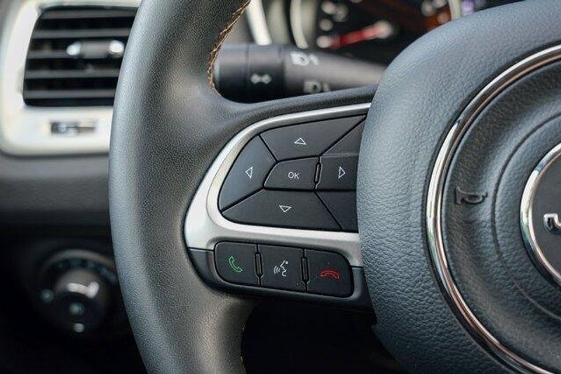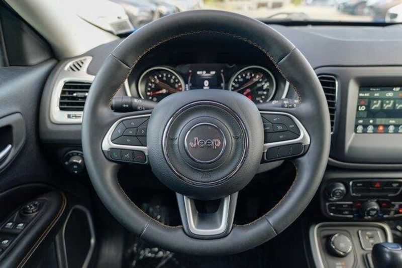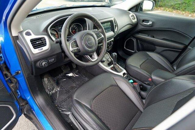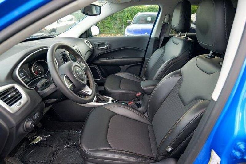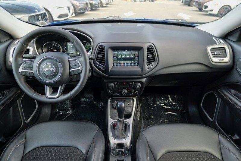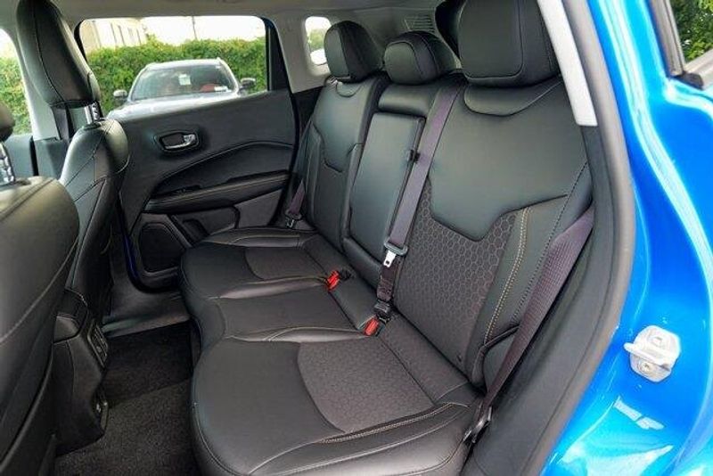 This Compass Latitude is nicely equipped with Quick Order Package 2GJ, Compass Latitude, FCA US LLC Certified Pre-Owned Certified, 4D Sport Utility, 2.4L I4, 9-Speed 948TE Automatic, 4WD, Laser Blue Pearlcoat, Black Cloth, AM/FM radio: SiriusXM, Apple CarPlay/Android Auto, Automatic temperature control, Brake assist, ParkView Rear Back-Up Camera, Radio: Uconnect 4 w/7'' Display, Wheels: 17'' x 7.0'' Silver Painted Aluminum, 3.73 Axle Ratio, 4-Wheel Disc Brakes, 6 Speakers, ABS brakes, Air Conditioning, Alloy wheels, Anti-whiplash front head restraints, Bumpers: body-color, Compass, Delay-off headlights, Driver door bin, Driver vanity mirror, Dual front impact airbags, Dual front side impact airbags, Electronic Stability Control, Four wheel independent suspension, Front anti-roll bar, Front Bucket Seats, Front Center Armrest w/Storage, Front dual zone A/C, Front fog lights, Front License Plate Bracket, Front reading lights, Fully automatic headlights, Heated door mirrors, Illuminated entry, Knee airbag, Low tire pressure warning, Occupant sensing airbag, Outside temperature display, Overhead airbag, Overhead console, Panic alarm, Passenger door bin, Passenger vanity mirror, Power door mirrors, Power steering, Power windows, Premium Cloth/Vinyl Bucket Seats, Rear anti-roll bar, Rear seat center armrest, Rear window defroster, Rear window wiper, Remote keyless entry, Roof rack: rails only, Speed control, Split folding rear seat, Spoiler, Steering wheel mounted audio controls, Tachometer, Telescoping steering wheel, Tilt steering wheel, Traction control, Trip computer, and Variably intermittent wipers.