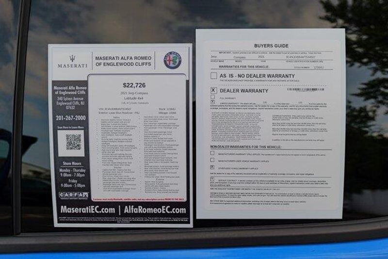 2021 Jeep Compass Latitude Laser Blue Pearlcoat Compass Latitude, 4D Sport Utility, 2.4L I4, 9-Speed 948TE Automatic, 4WD, Laser Blue Pearlcoat, Black Cloth, AM/FM radio: SiriusXM, Apple CarPlay/Android Auto, Automatic temperature control, Brake assist, ParkView Rear Back-Up Camera, Quick Order Package 2GJ, Radio: Uconnect 4 w/7'' Display, Wheels: 17'' x 7.0'' Silver Painted Aluminum.