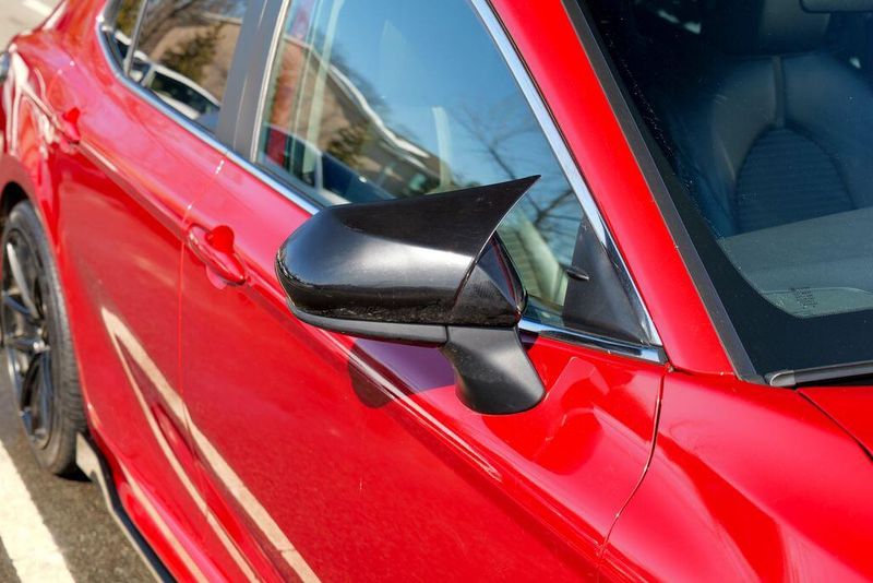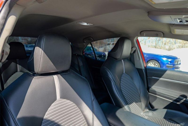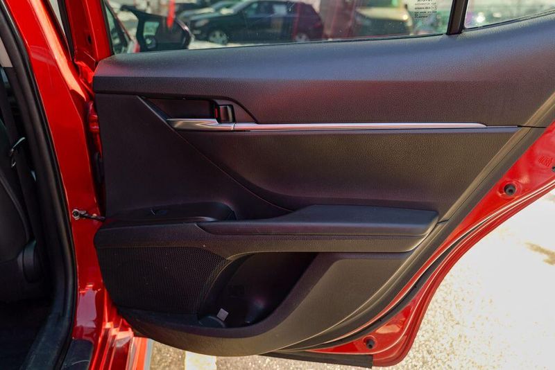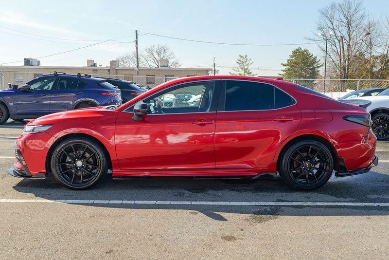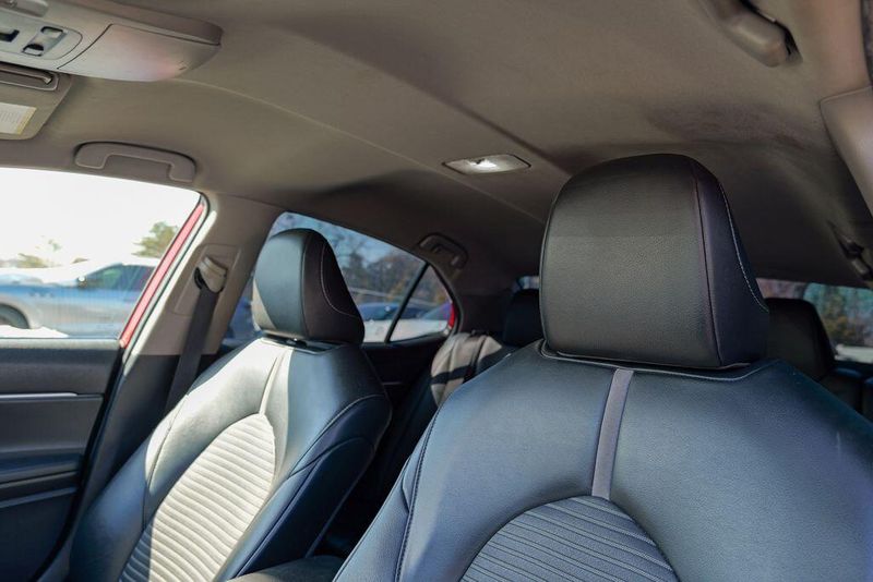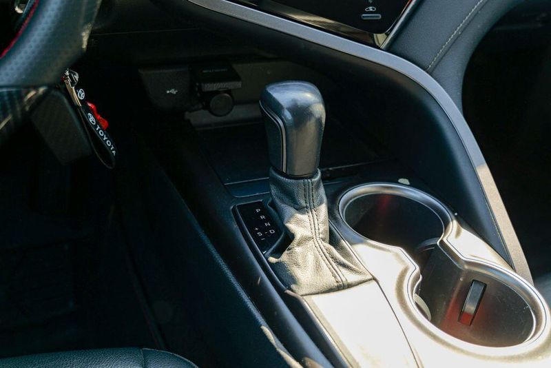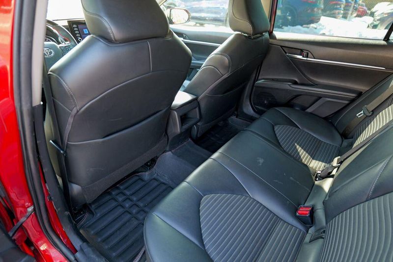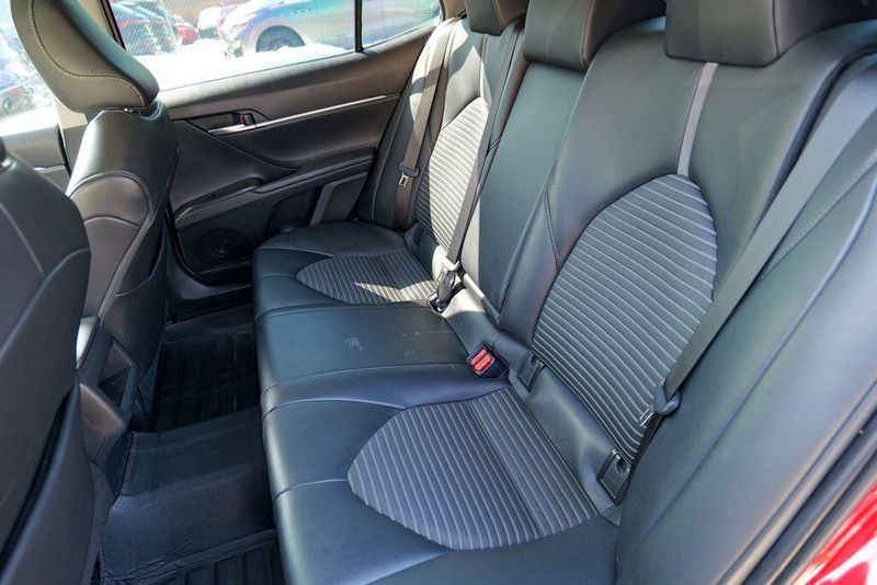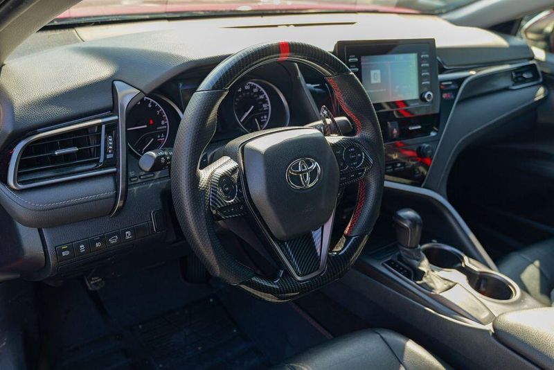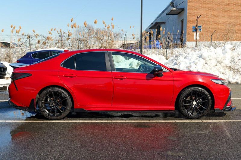 2021 Toyota Camry SE Nightshade Supersonic Red Camry SE Nightshade, 4D Sedan, 2.5L I4 DOHC 16V, 8-Speed Automatic, FWD, Supersonic Red, Black Cloth, 6 Speakers, Air Conditioning, Apple CarPlay/Android Auto, Auto High-beam Headlights, Automatic temperature control, Brake assist, Emergency communication system: Safety Connect with 1-year trial, Exterior Parking Camera Rear, Fully automatic headlights, Power door mirrors, Power driver seat, Radio: AM/FM Audio System, Remote keyless entry, Speed control, Speed-sensing steering, Spoiler, Steering wheel mounted audio controls, Wheels: 8.0J x 18'' Black-Painted Alloy.