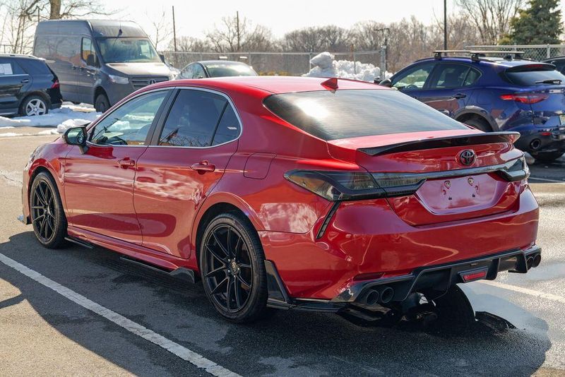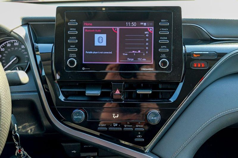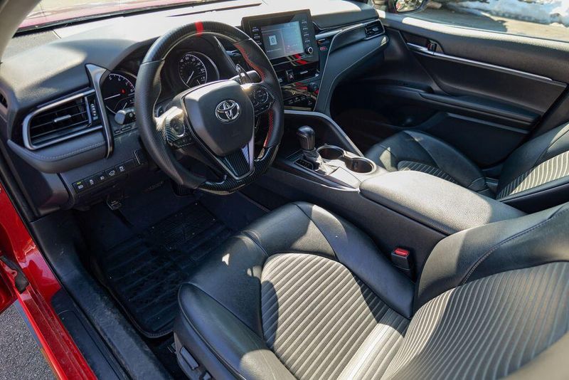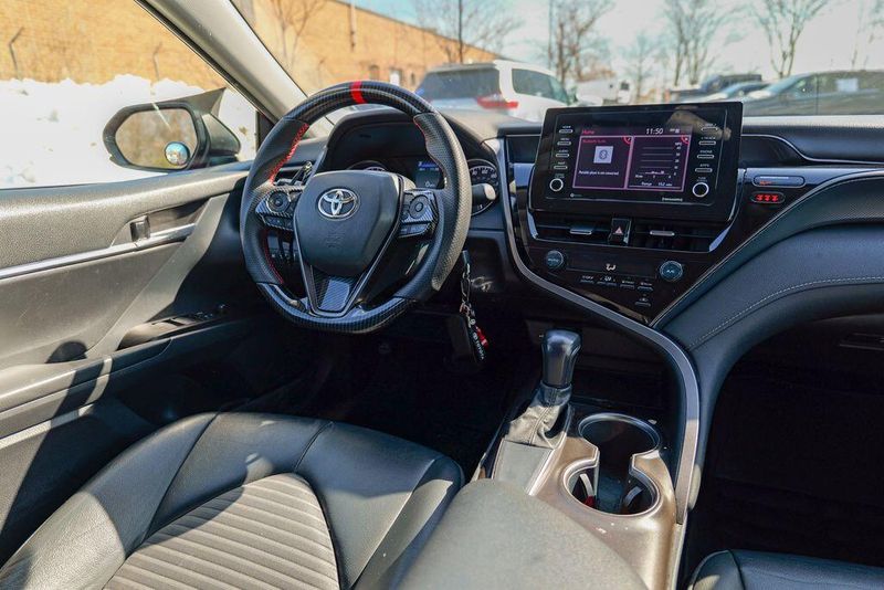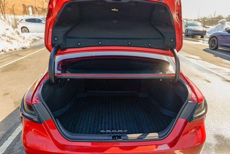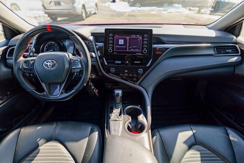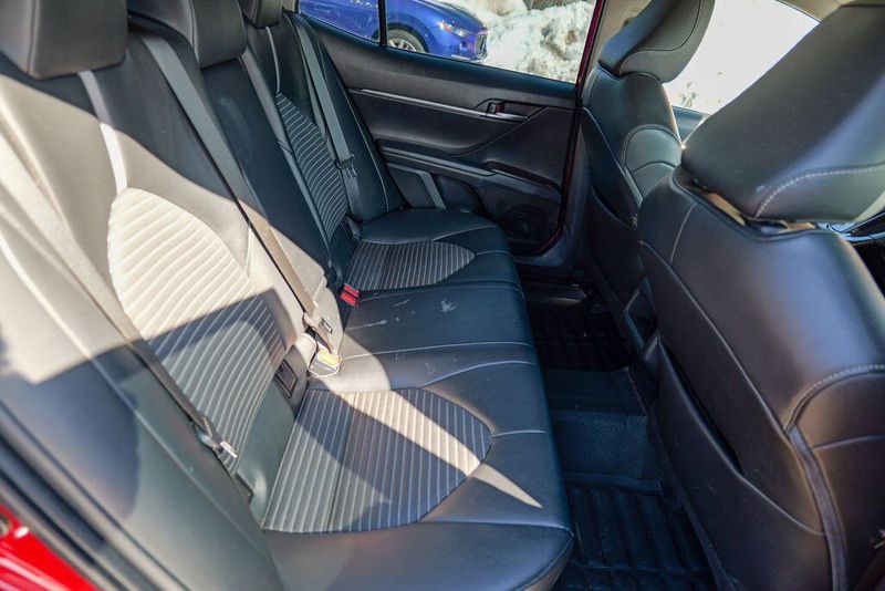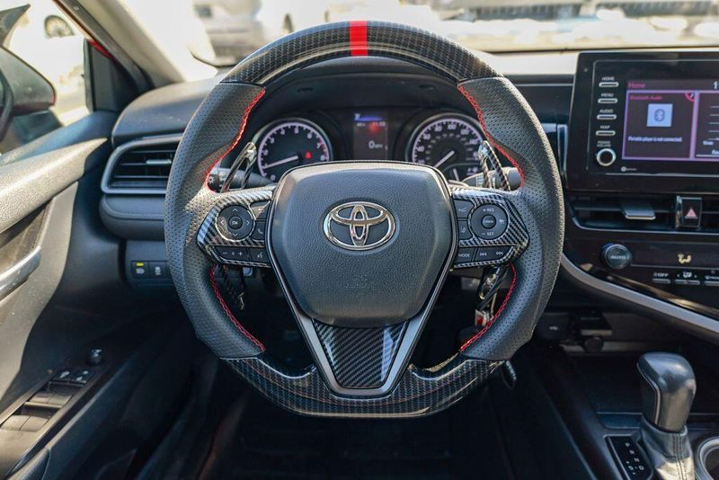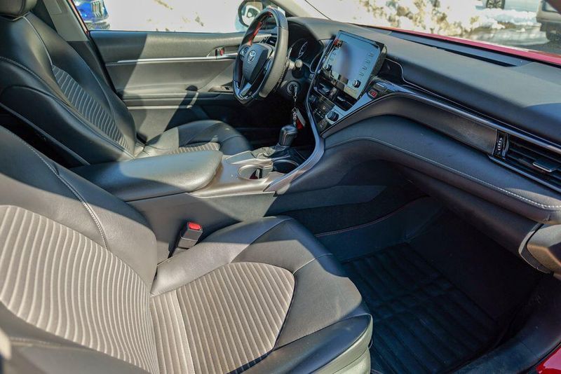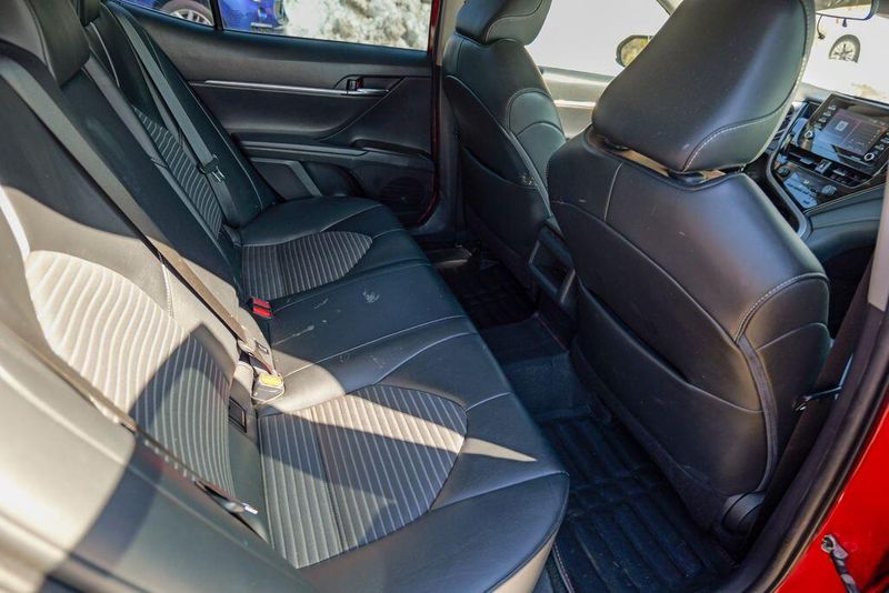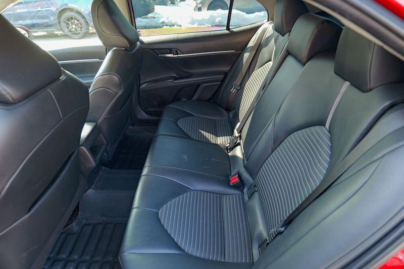 2021 Toyota Camry SE Nightshade Supersonic Red Camry SE Nightshade, 4D Sedan, 2.5L I4 DOHC 16V, 8-Speed Automatic, FWD, Supersonic Red, Black Cloth, 6 Speakers, Air Conditioning, Apple CarPlay/Android Auto, Auto High-beam Headlights, Automatic temperature control, Brake assist, Emergency communication system: Safety Connect with 1-year trial, Exterior Parking Camera Rear, Fully automatic headlights, Power door mirrors, Power driver seat, Radio: AM/FM Audio System, Remote keyless entry, Speed control, Speed-sensing steering, Spoiler, Steering wheel mounted audio controls, Wheels: 8.0J x 18'' Black-Painted Alloy.