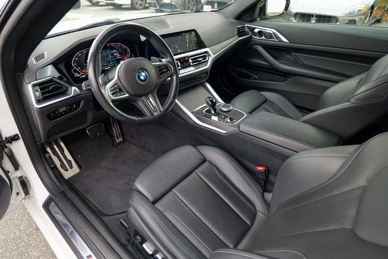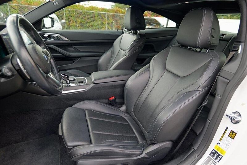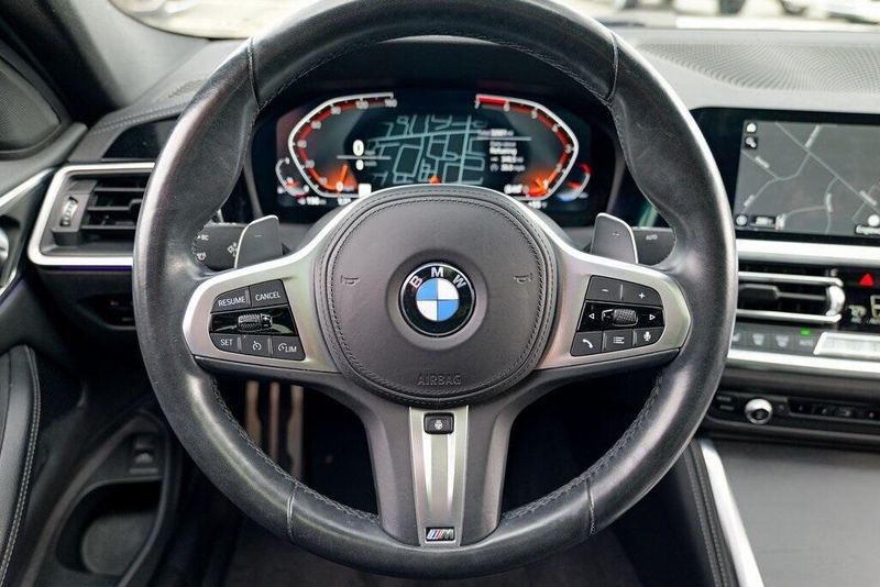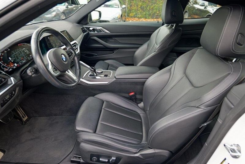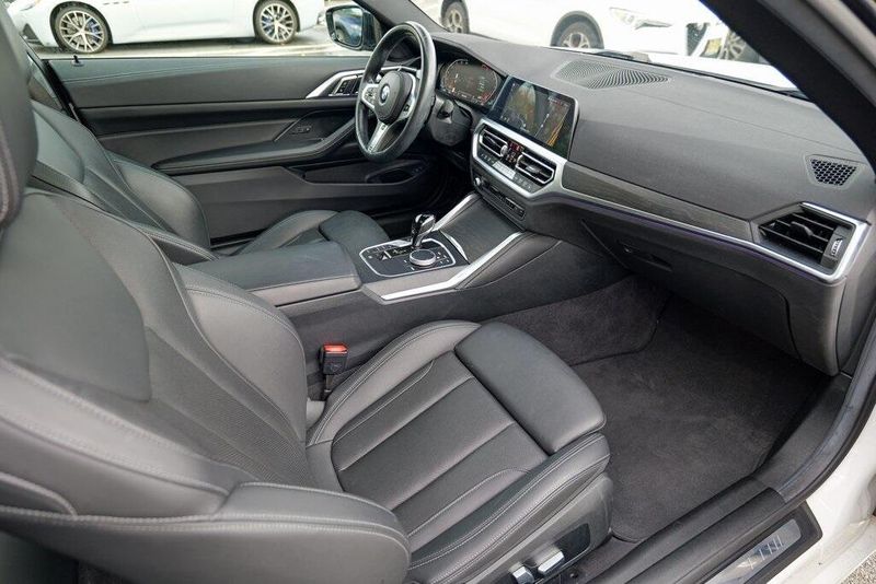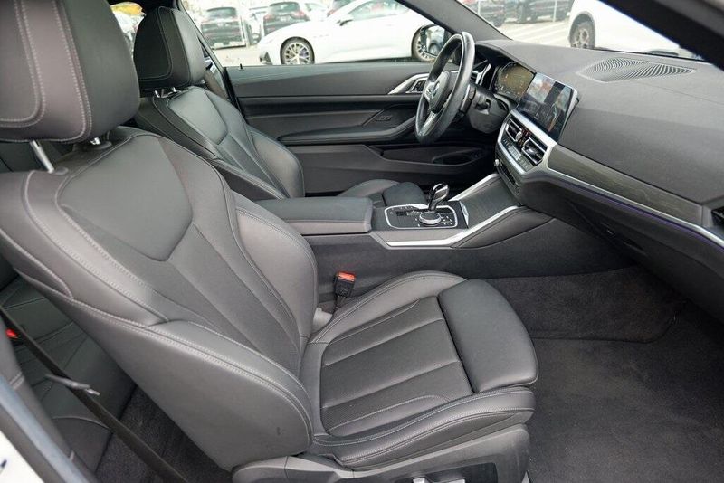 This 430i xDrive is nicely equipped with Connected Package Pro, M Sport Package (Aerodynamic Kit, LED Fog Lights, M Sport Suspension, M Steering Wheel, Rear Spoiler, Variable Sport Steering, Wheels: 19'' x 8'' M Double-Spoke Bicolor, and Without Lines Designation Outside), M Sport Package (337), Premium Package 2 (Comfort Access Keyless Entry, Gesture Control, Heated Front Seats, Heated Steering Wheel, and Lumbar Support), Shadowline Package (Black Mirror Caps and Extended Shadowline Trim), 10 Speakers, 4-Wheel Disc Brakes, ABS brakes, Air Conditioning, Alloy wheels, AM/FM Radio, AM/FM radio: SiriusXM with 360L, Apple CarPlay & Android Auto Compatibility, Apple CarPlay Compatibility, Auto High-beam Headlights, Auto-dimming door mirrors, Auto-dimming Rear-View mirror, Automatic temperature control, BMW Assist eCall, BMW TeleServices, Brake assist, Bumpers: body-color, Compass, ConnectedDrive Services, Delay-off headlights, Driver door bin, Driver vanity mirror, Dual front impact airbags, Dual front side impact airbags, Electronic Stability Control, Emergency communication system: BMW Assist eCall, Enhanced Bluetooth, Exterior Parking Camera Rear, Four wheel independent suspension, Front anti-roll bar, Front Bucket Seats, Front Center Armrest, Front dual zone A/C, Front reading lights, Fully automatic headlights, Garage door transmitter, Genuine wood console insert, Genuine wood dashboard insert, Heated door mirrors, Hi-Fi Sound System, Illuminated entry, Knee airbag, Live Cockpit Pro w/Navi, Low tire pressure warning, M Shadowline Lights, Memory seat, Navigation, Navigation System, Occupant sensing airbag, Outside temperature display, Overhead airbag, Overhead console, Panic alarm, Passenger door bin, Passenger vanity mirror, Perforated Sensatec Upholstery, Power door mirrors, Power driver seat, Power Front Seats, Power moonroof, Power passenger seat, Power steering, Power windows, Radio Control US, Radio data system, Rain sensing wipers, Rear air conditioning, Rear anti-roll bar, Rear reading lights, Rear seat center armrest, Rear window defroster, Remote Engine Start, Remote keyless entry, Security system, SensaTec Dashboard, SiriusXM w/360L, Speed control, Speed-sensing steering, Speed-Sensitive Wipers, Split folding rear seat, Sport Seats, Sport steering wheel, Steering wheel mounted audio controls, Tachometer, Telescoping steering wheel, Tilt steering wheel, Traction control, Trip computer, Turn signal indicator mirrors, Variably intermittent wipers, and Wheels: 18'' x 7.5'' V-Spoke Bi-Color Orbit Grey.