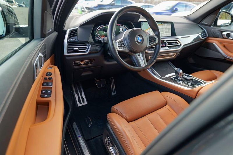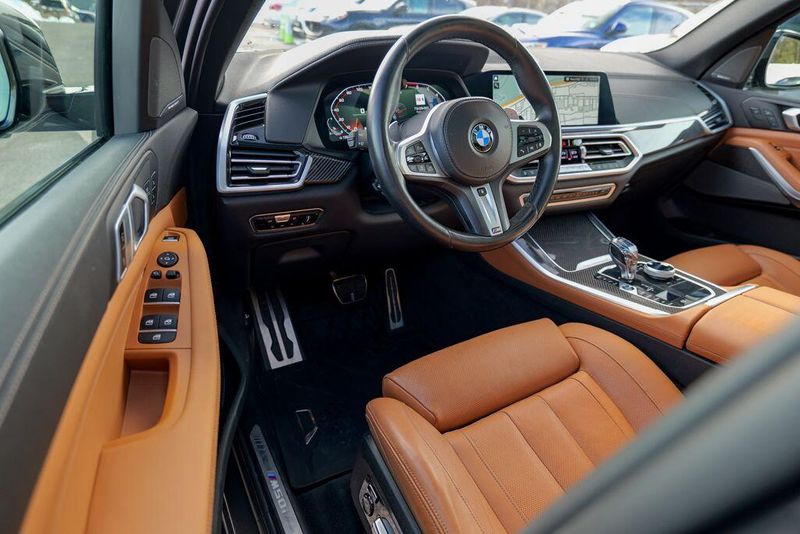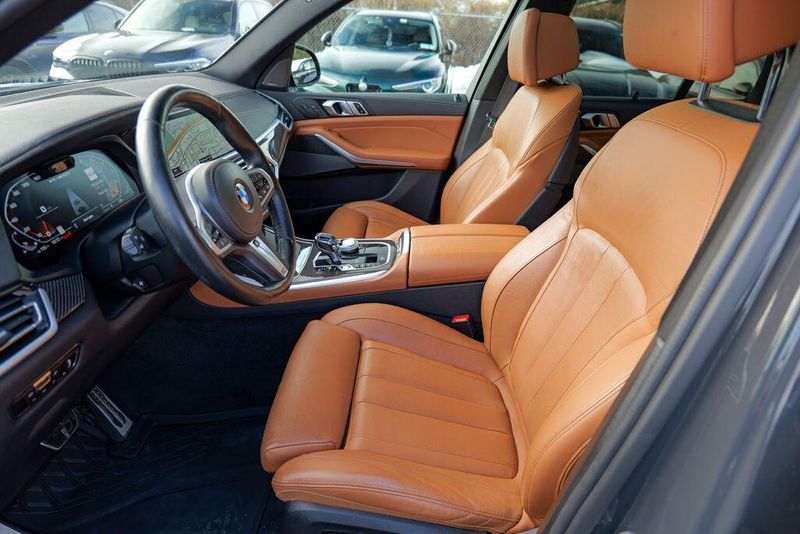 2022 BMW X5 M50i Dravit Gray Metallic X5 M50i, 4D Sport Utility, 4.4L V8 DOHC 32V Twin Turbocharged, 8-Speed Automatic Sport, AWD, Dravit Gray Metallic, Cognac Leather, 16 Speakers, Active Driving Assistant Pro, Active Park Distance Control, Adaptive suspension, AM/FM radio: SiriusXM with 360L, Auto High-beam Headlights, Automatic temperature control, Brake assist, Climate Comfort Package, Connected Package Pro, Drive Recorder, Driving Assistance Professional Package, Emergency communication system: BMW Assist eCall, Executive Package, Extended Traffic Jam Assistant, Front & Rear Heated Seats, Front dual zone A/C, Front Ventilated Seats, Fully automatic headlights, Gesture Control, Glass Controls, harman/kardon Surround Sound System, Head restraints memory, Head-Up Display, Heated Front Seats w/Armrests & Steering Wheel, Icon Adaptive LED Headlights w/Laserlight, Increased Top Speed Limiter, Memory seat, Navigation System, Panoramic Sky Lounge LED Roof, Parking Assistance Package, Parking Assistant Plus, Radio data system, Rain sensing wipers, Rear air conditioning, Rear dual zone A/C, Rear Manual Side Window Shades, Rear-View Camera, Remote keyless entry, SiriusXM Satellite Radio w/360L, Speed-sensing steering, Speed-Sensitive Wipers, Steering wheel memory, Steering wheel mounted audio controls, Surround View w/3D View, Vernasca Leather Upholstery, Wheels: 22'' x 9.5'' Fr & 22'' x 10.5'' Rr Black, WiFi Hotspot, Wireless Charging.