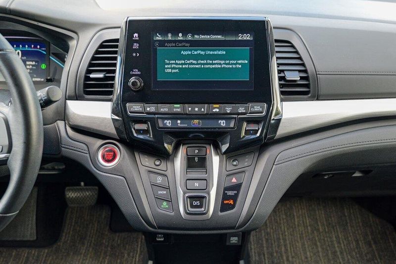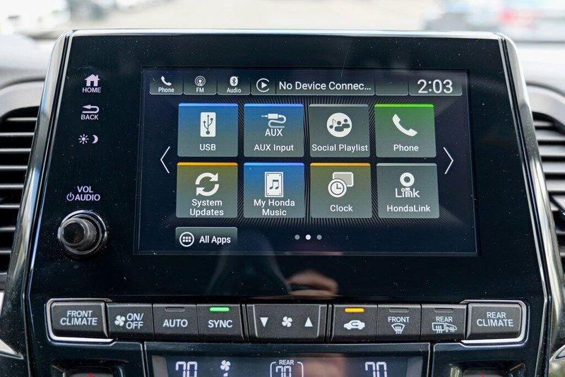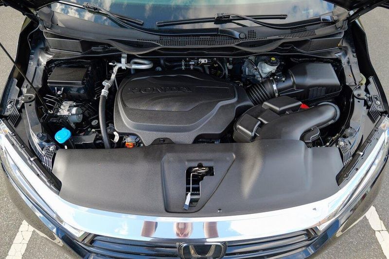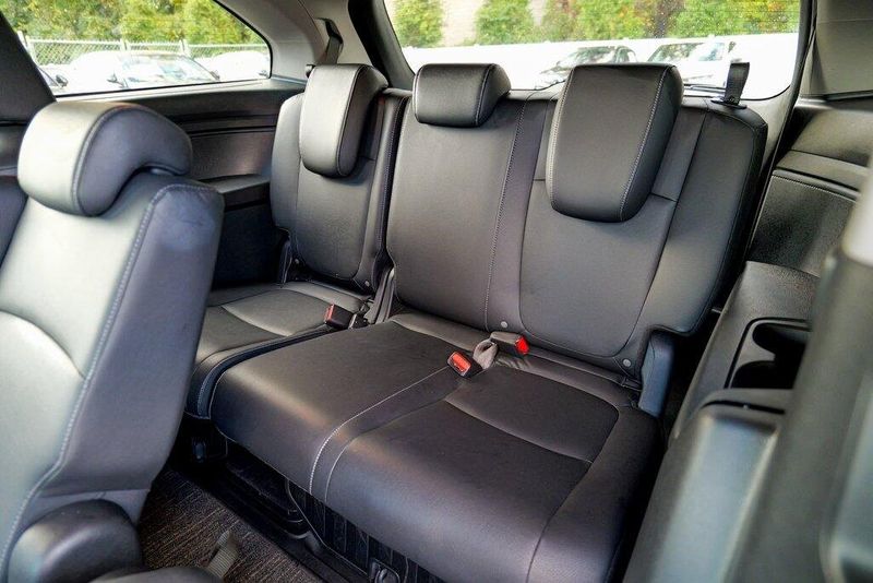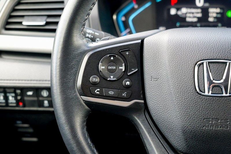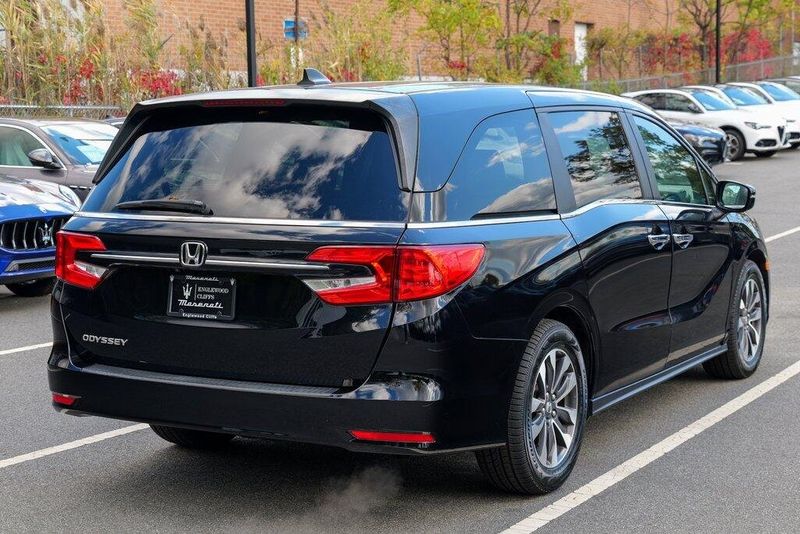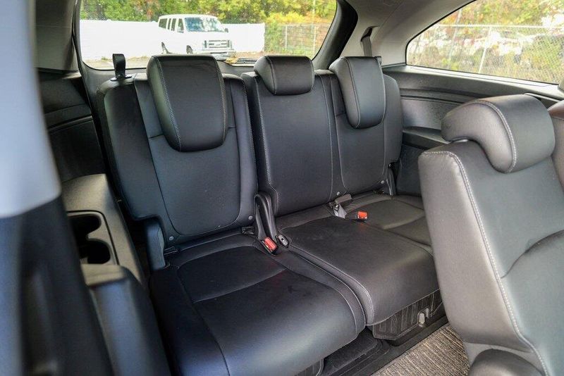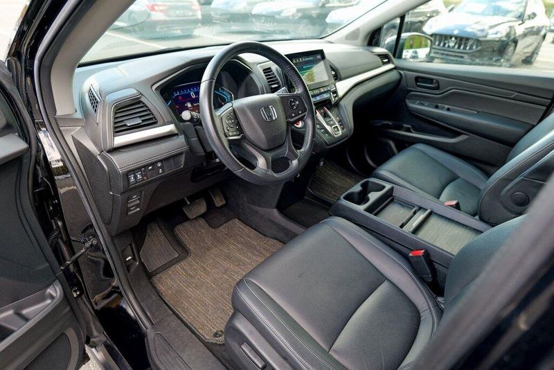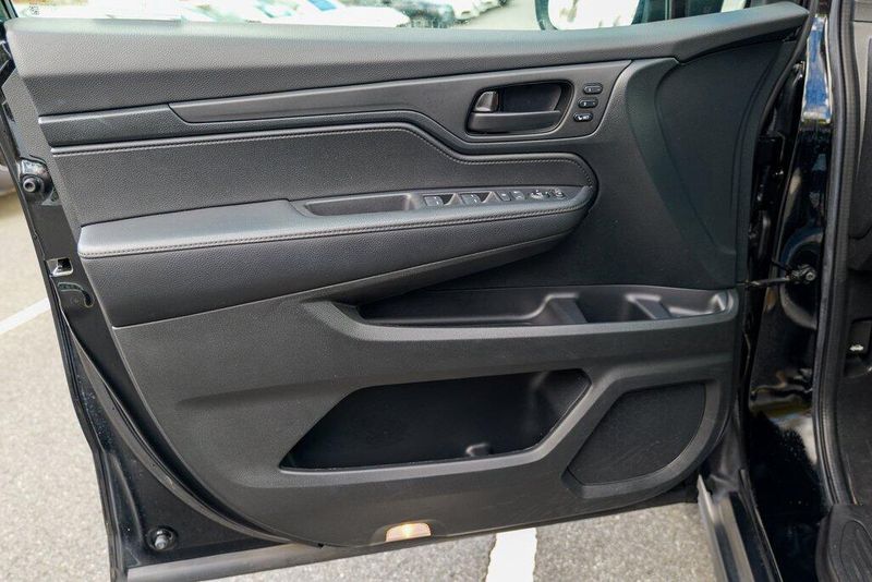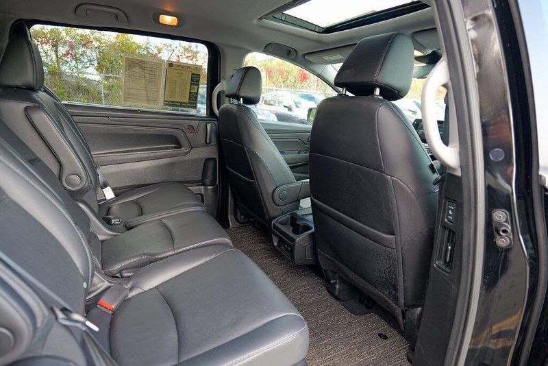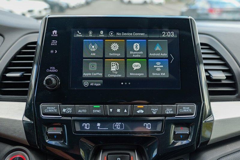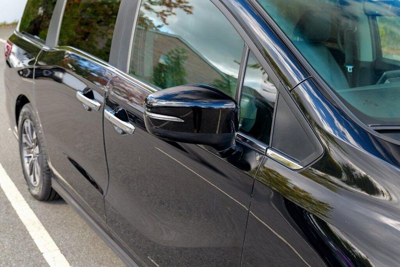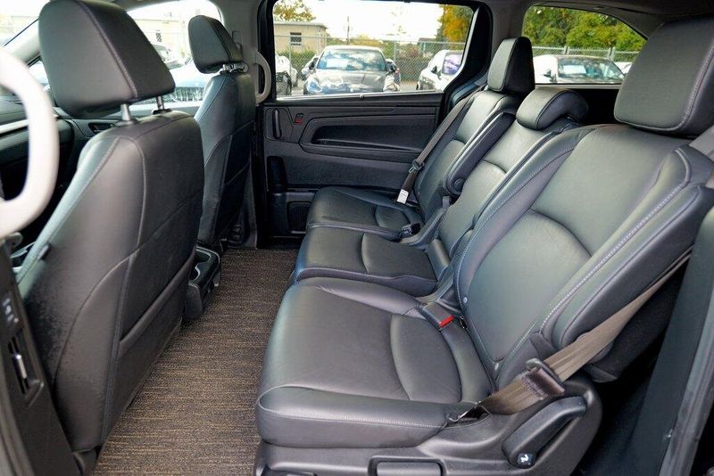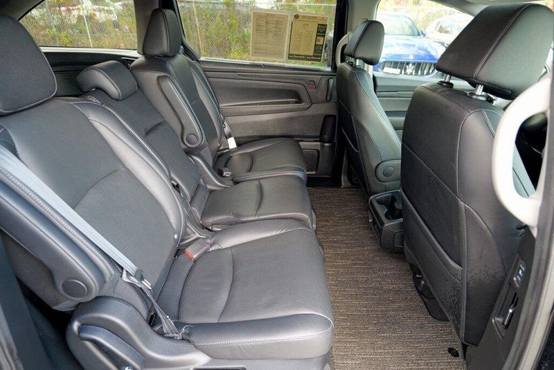 This Odyssey EX-L is nicely equipped with 18'' Machine-Finished Alloy Wheels, 3.61 Axle Ratio, 3rd row seats: split-bench, 4-Wheel Disc Brakes, 7 Speakers, A/V remote: CabinControl, ABS brakes, Adaptive Cruise Control: Adaptive Cruise Control (ACC) with Low-Speed Follow, Air Conditioning, Alloy wheels, AM/FM radio: SiriusXM, Anti-whiplash front head restraints, Apple CarPlay/Android Auto, Auto High-beam Headlights, Auto-dimming Rear-View mirror, Automatic temperature control, Blind Spot Information (BSI) System warning, Brake assist, Bumpers: body-color, Delay-off headlights, Driver door bin, Driver vanity mirror, Driver's Seat Mounted Armrest, Dual front impact airbags, Dual front side impact airbags, Electronic Stability Control, Exterior Parking Camera Rear, Forward collision: Collision Mitigation Braking System (CMBS) + FCW mitigation, Four wheel independent suspension, Front anti-roll bar, Front Bucket Seats, Front dual zone A/C, Front fog lights, Front reading lights, Fully automatic headlights, Garage door transmitter: HomeLink, Heated door mirrors, Heated Front Bucket Seats, Heated front seats, Illuminated entry, Knee airbag, Lane departure: Lane Keeping Assist System (LKAS) active, Leather Seat Trim, Leather steering wheel, Low tire pressure warning, Memory seat, Occupant sensing airbag, Outside temperature display, Overhead airbag, Overhead console, Panic alarm, Passenger door bin, Passenger seat mounted armrest, Passenger vanity mirror, Power door mirrors, Power driver seat, Power Liftgate, Power moonroof, Power passenger seat, Power steering, Power windows, Radio data system, Radio: 160-Watt AM/FM/HD/SiriusXM Audio System, Rear air conditioning, Rear anti-roll bar, Rear reading lights, Rear seat center armrest, Rear window defroster, Rear window wiper, Reclining 3rd row seat, Remote keyless entry, Security system, Speed control, Speed-sensing steering, Speed-Sensitive Wipers, Split folding rear seat, Spoiler, Steering wheel mounted audio controls, Tachometer, Telescoping steering wheel, Tilt steering wheel, Traction control, Trip computer, Turn signal indicator mirrors, and Variably intermittent wipers.