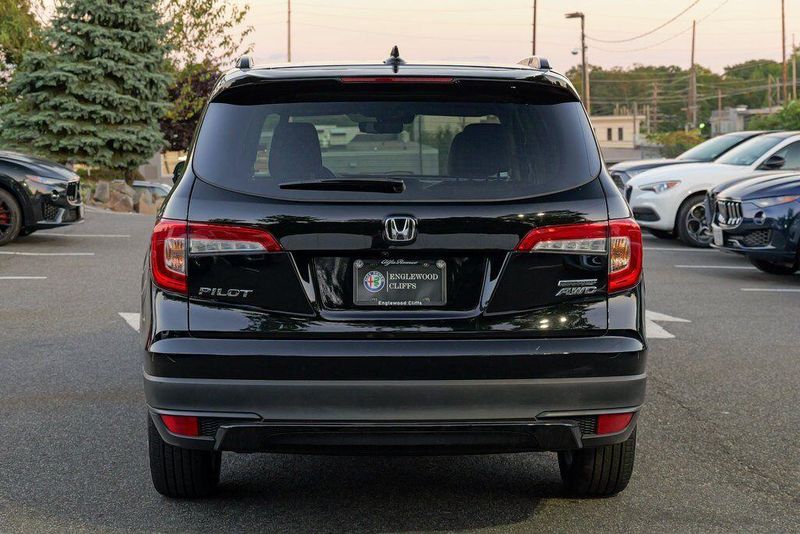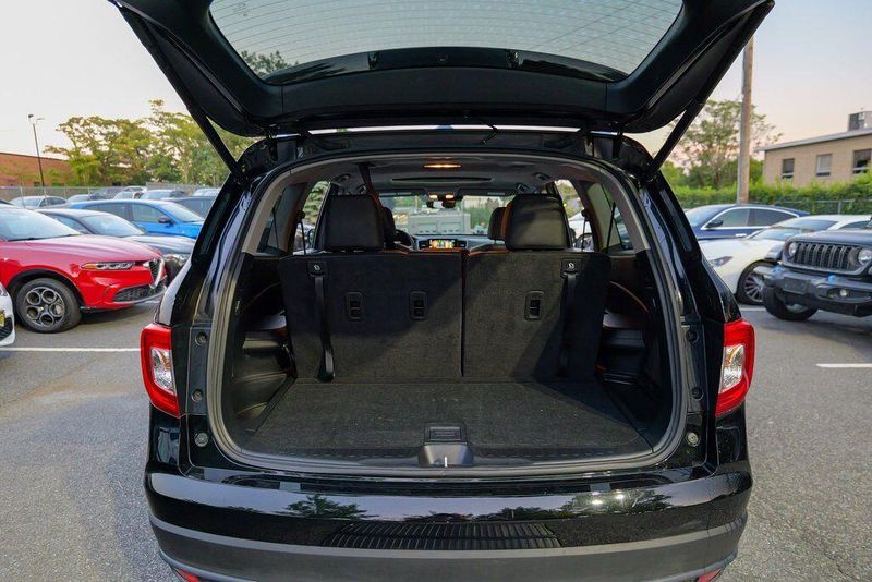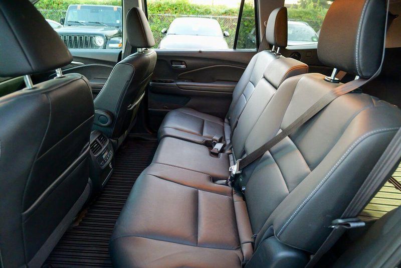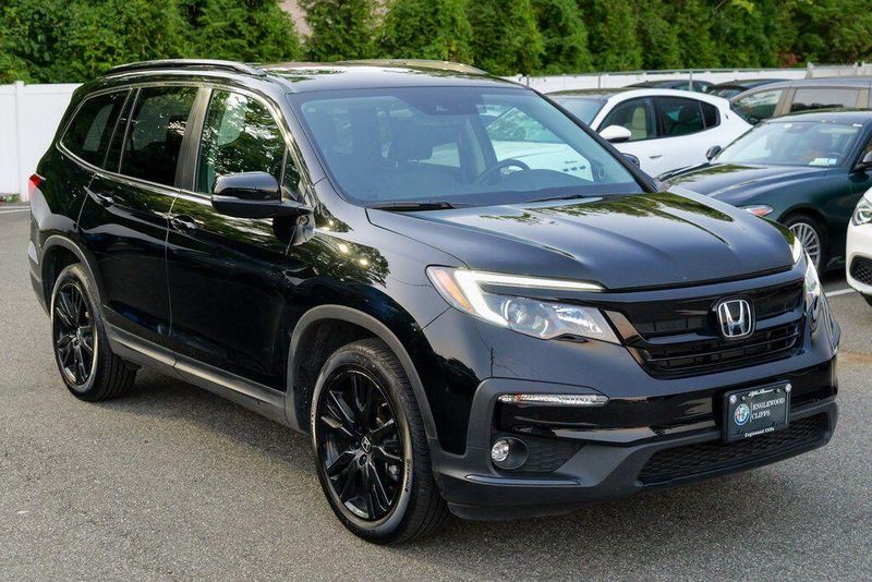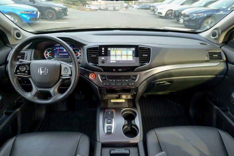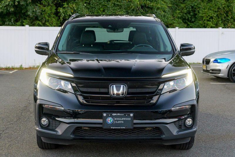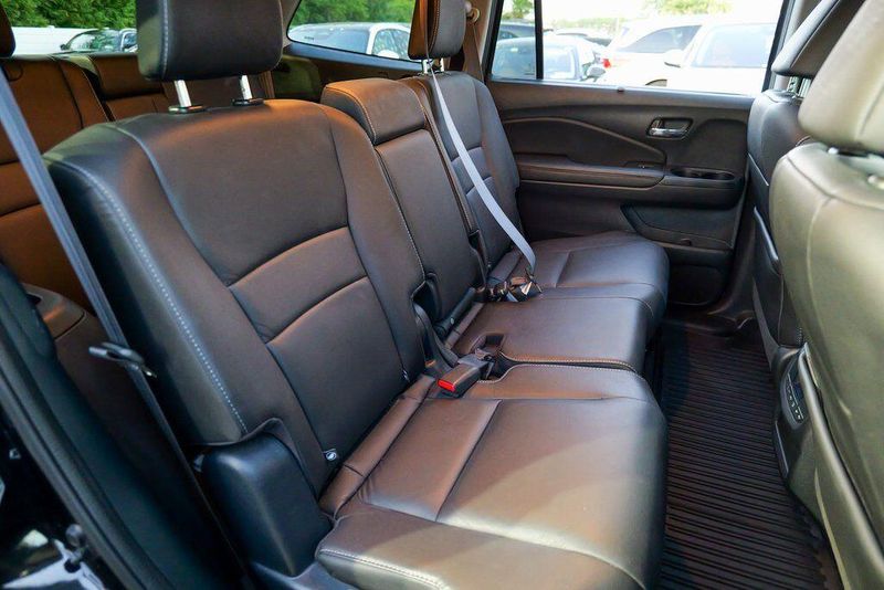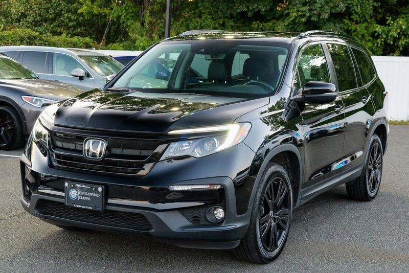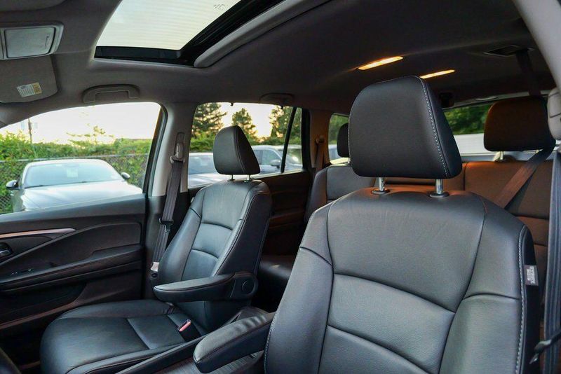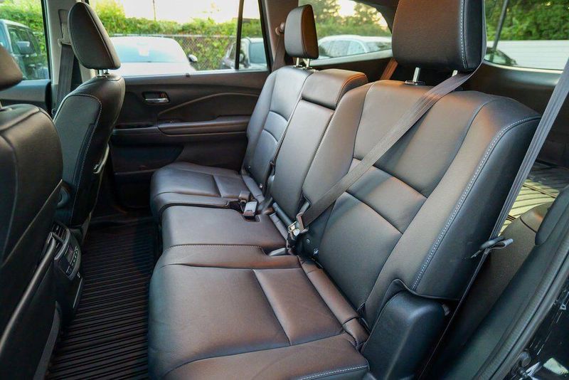 This Pilot Special Edition is nicely equipped with AWD, 3rd row seats: split-bench, 4-Wheel Disc Brakes, 4.33 Axle Ratio, 7 Speakers, A/V remote: CabinControl, ABS brakes, Air Conditioning, Alloy wheels, AM/FM radio: SiriusXM, Apple CarPlay/Android Auto, Auto High-beam Headlights, Auto-dimming Rear-View mirror, Automatic temperature control, Blind Spot Information (BSI) System warning, Brake assist, Bumpers: body-color, Delay-off headlights, Driver door bin, Driver vanity mirror, Dual front impact airbags, Dual front side impact airbags, Electronic Stability Control, Emergency communication system: HondaLink Assist, Exterior Parking Camera Rear, Forward collision: Collision Mitigation Braking System (CMBS) + FCW mitigation, Four wheel independent suspension, Front anti-roll bar, Front Bucket Seats, Front Center Armrest, Front dual zone A/C, Front fog lights, Front reading lights, Fully automatic headlights, Garage door transmitter: HomeLink, Heated door mirrors, Heated Front Bucket Seats, Heated front seats, Illuminated entry, Lane departure: Lane Keeping Assist System (LKAS) active, Leather Seat Trim, Low tire pressure warning, Memory seat, Occupant sensing airbag, Outside temperature display, Overhead airbag, Overhead console, Panic alarm, Passenger door bin, Passenger vanity mirror, Power door mirrors, Power driver seat, Power Liftgate, Power moonroof, Power passenger seat, Power steering, Power windows, Radio data system, Radio: 215-Watt Audio System, Rear air conditioning, Rear anti-roll bar, Rear reading lights, Rear seat center armrest, Rear window defroster, Rear window wiper, Reclining 3rd row seat, Remote keyless entry, Roof rack: rails only, Security system, Speed control, Speed-sensing steering, Speed-Sensitive Wipers, Split folding rear seat, Spoiler, Steering wheel mounted audio controls, Tachometer, Telescoping steering wheel, Tilt steering wheel, Traction control, Trip computer, Turn signal indicator mirrors, Variably intermittent wipers, and Wheels: 20'' Exclusive Gloss Black Alloy.