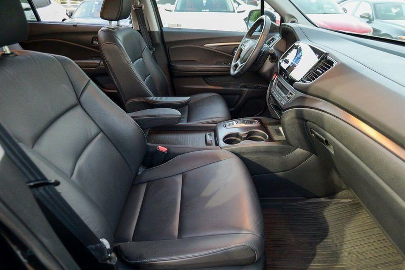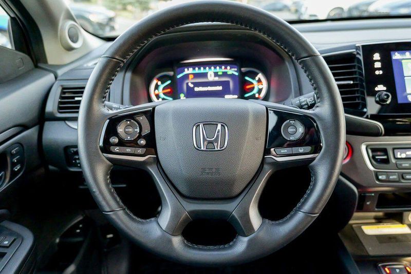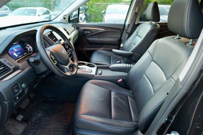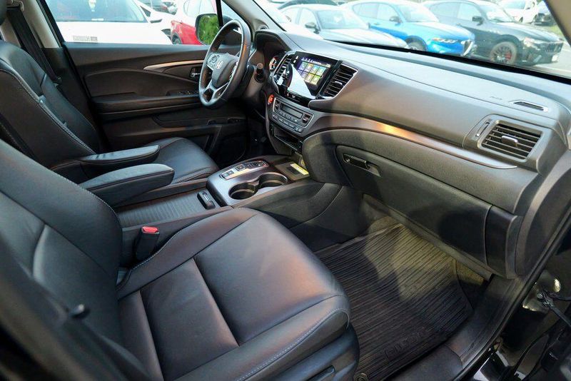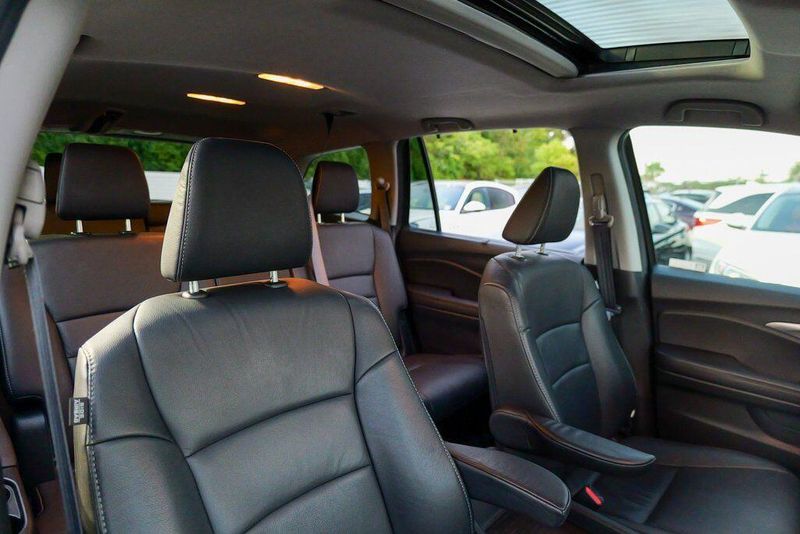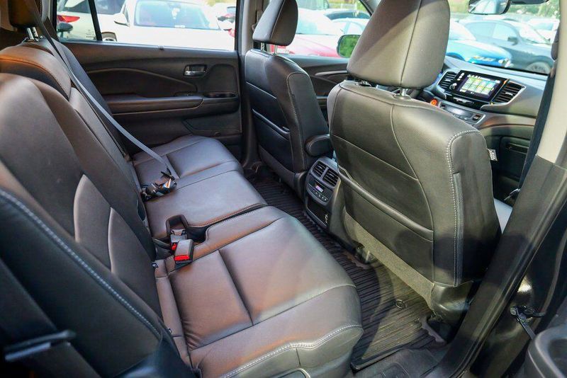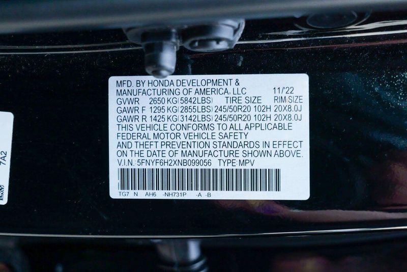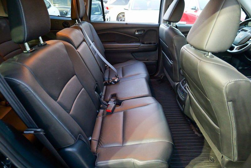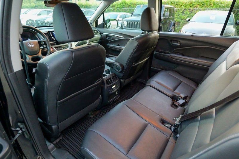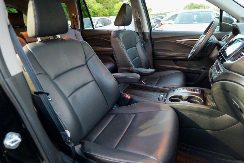 This Pilot Special Edition is nicely equipped with AWD, 3rd row seats: split-bench, 4-Wheel Disc Brakes, 4.33 Axle Ratio, 7 Speakers, A/V remote: CabinControl, ABS brakes, Air Conditioning, Alloy wheels, AM/FM radio: SiriusXM, Apple CarPlay/Android Auto, Auto High-beam Headlights, Auto-dimming Rear-View mirror, Automatic temperature control, Blind Spot Information (BSI) System warning, Brake assist, Bumpers: body-color, Delay-off headlights, Driver door bin, Driver vanity mirror, Dual front impact airbags, Dual front side impact airbags, Electronic Stability Control, Emergency communication system: HondaLink Assist, Exterior Parking Camera Rear, Forward collision: Collision Mitigation Braking System (CMBS) + FCW mitigation, Four wheel independent suspension, Front anti-roll bar, Front Bucket Seats, Front Center Armrest, Front dual zone A/C, Front fog lights, Front reading lights, Fully automatic headlights, Garage door transmitter: HomeLink, Heated door mirrors, Heated Front Bucket Seats, Heated front seats, Illuminated entry, Lane departure: Lane Keeping Assist System (LKAS) active, Leather Seat Trim, Low tire pressure warning, Memory seat, Occupant sensing airbag, Outside temperature display, Overhead airbag, Overhead console, Panic alarm, Passenger door bin, Passenger vanity mirror, Power door mirrors, Power driver seat, Power Liftgate, Power moonroof, Power passenger seat, Power steering, Power windows, Radio data system, Radio: 215-Watt Audio System, Rear air conditioning, Rear anti-roll bar, Rear reading lights, Rear seat center armrest, Rear window defroster, Rear window wiper, Reclining 3rd row seat, Remote keyless entry, Roof rack: rails only, Security system, Speed control, Speed-sensing steering, Speed-Sensitive Wipers, Split folding rear seat, Spoiler, Steering wheel mounted audio controls, Tachometer, Telescoping steering wheel, Tilt steering wheel, Traction control, Trip computer, Turn signal indicator mirrors, Variably intermittent wipers, and Wheels: 20'' Exclusive Gloss Black Alloy.