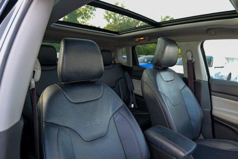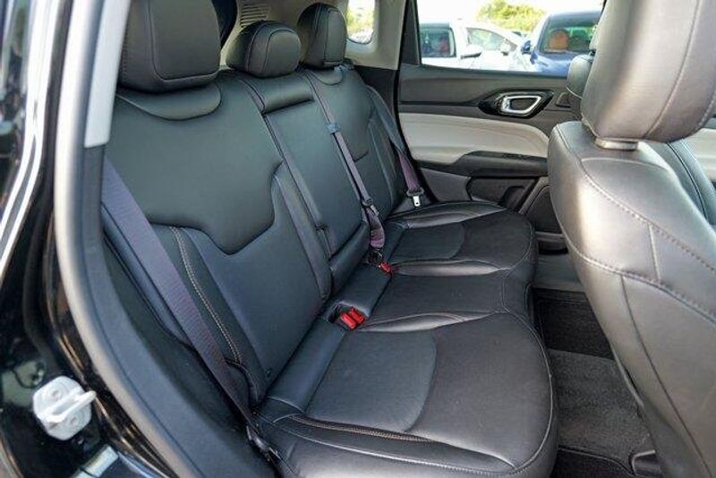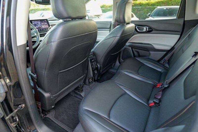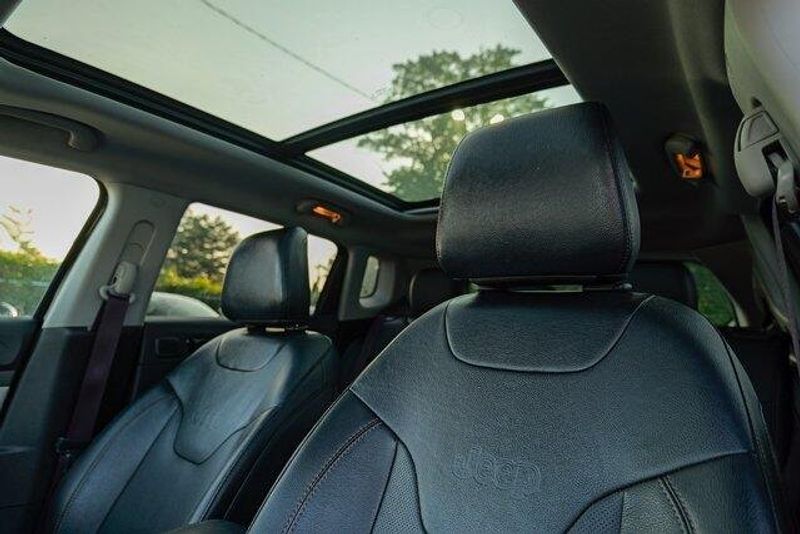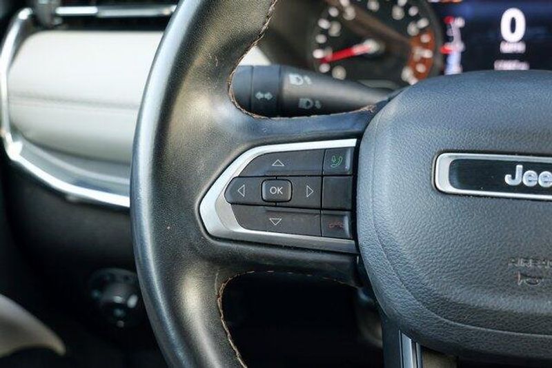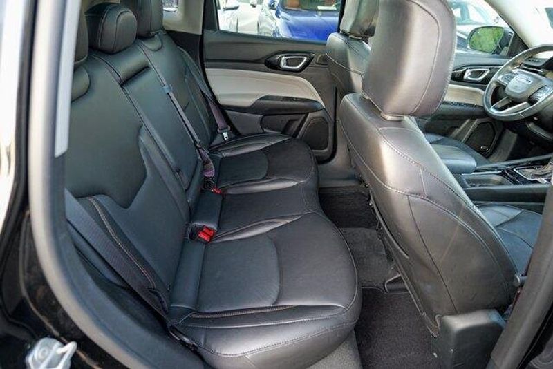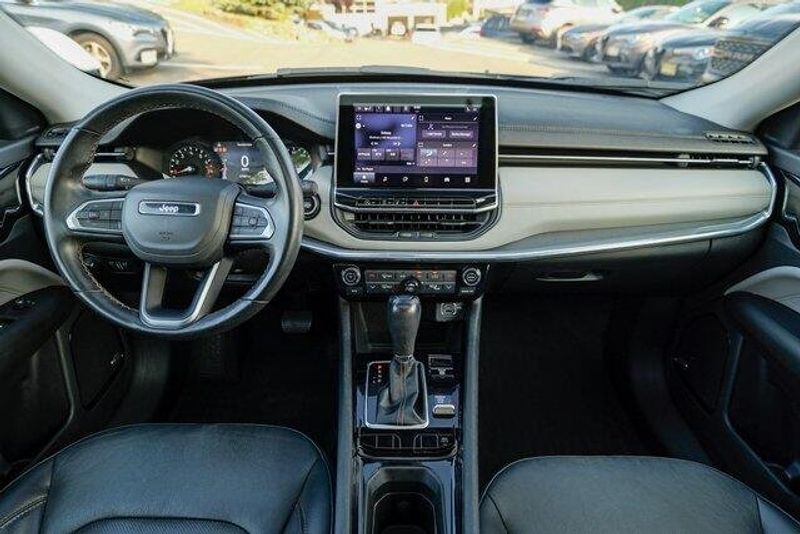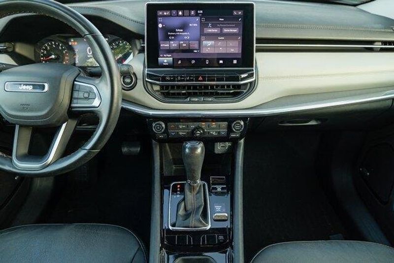 This Compass Limited is nicely equipped with Quick Order Package 2GG, Sun and Sound Group (Power Front/Fixed Rear Full Sunroof), 4WD, 10.1'' Touchscreen Display, 3.73 Axle Ratio, 4-Wheel Disc Brakes, 6 Speakers, ABS brakes, Air Conditioning, Alloy wheels, AM/FM radio: SiriusXM, Anti-whiplash front head restraints, Auto High-beam Headlights, Auto-dimming Rear-View mirror, Automatic temperature control, Brake assist, Bumpers: body-color, Compass, Delay-off headlights, Disassociated Touchscreen Display, Driver door bin, Driver vanity mirror, Dual front impact airbags, Dual front side impact airbags, Electronic Stability Control, Emergency communication system: SiriusXM Guardian, Four wheel independent suspension, Front anti-roll bar, Front Bucket Seats, Front Center Armrest w/Storage, Front dual zone A/C, Front fog lights, Front License Plate Bracket, Front reading lights, Fully automatic headlights, Global Telematics Box Module (TBM), Gloss Black Exterior Mirrors, Heated door mirrors, Heated front seats, Heated steering wheel, Illuminated entry, Knee airbag, Leather Shift Knob, Leather Trimmed Bucket Seats, Low tire pressure warning, Occupant sensing airbag, Outside temperature display, Overhead airbag, Overhead console, Panic alarm, ParkView Rear Back-Up Camera, Passenger door bin, Passenger vanity mirror, Power door mirrors, Power driver seat, Power steering, Power windows, Radio: Uconnect 5 w/10.1'' Display, Rain sensing wipers, Rear anti-roll bar, Rear seat center armrest, Rear window defroster, Rear window wiper, Remote keyless entry, Roof rack: rails only, Security system, Speed control, Split folding rear seat, Spoiler, Steering wheel mounted audio controls, Tachometer, Telescoping steering wheel, Tilt steering wheel, Traction control, Trip computer, Turn signal indicator mirrors, Variably intermittent wipers, and Wheels: 18'' x 7'' Painted Diamond Cut Aluminum.
