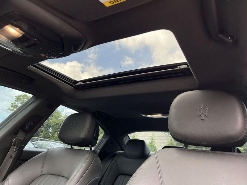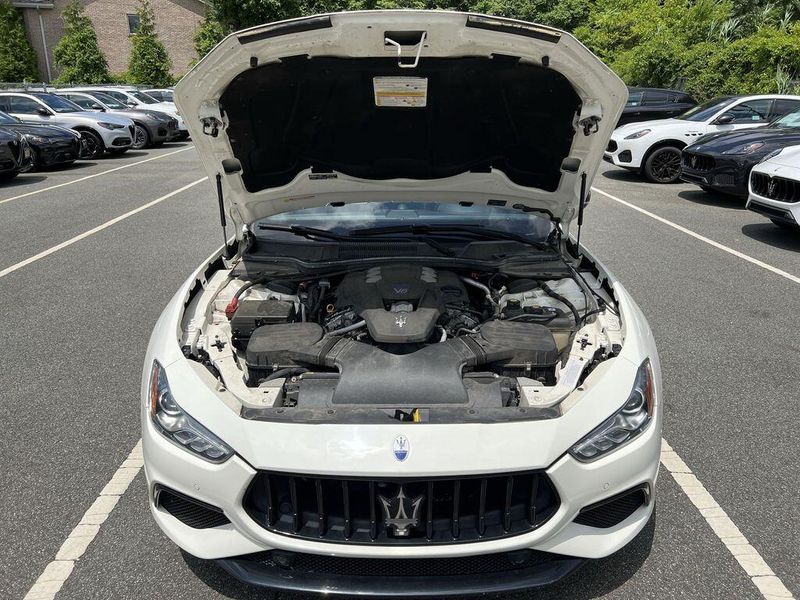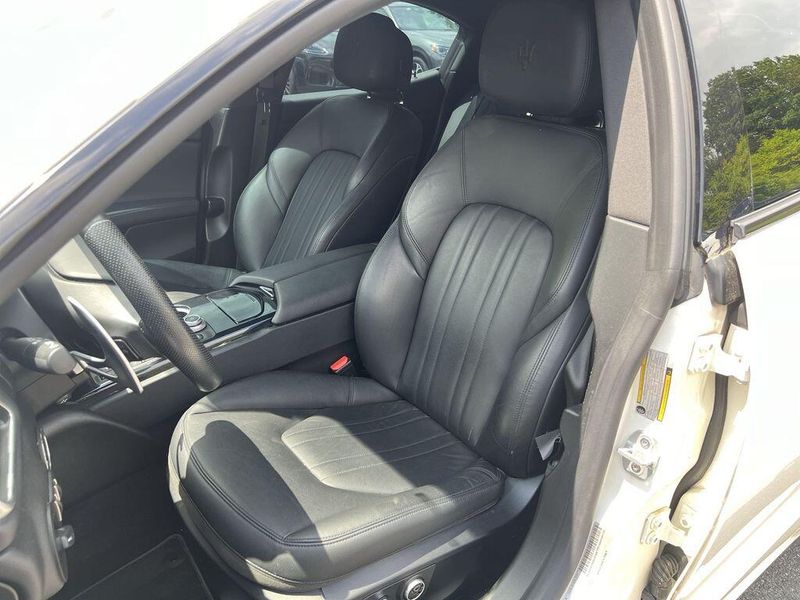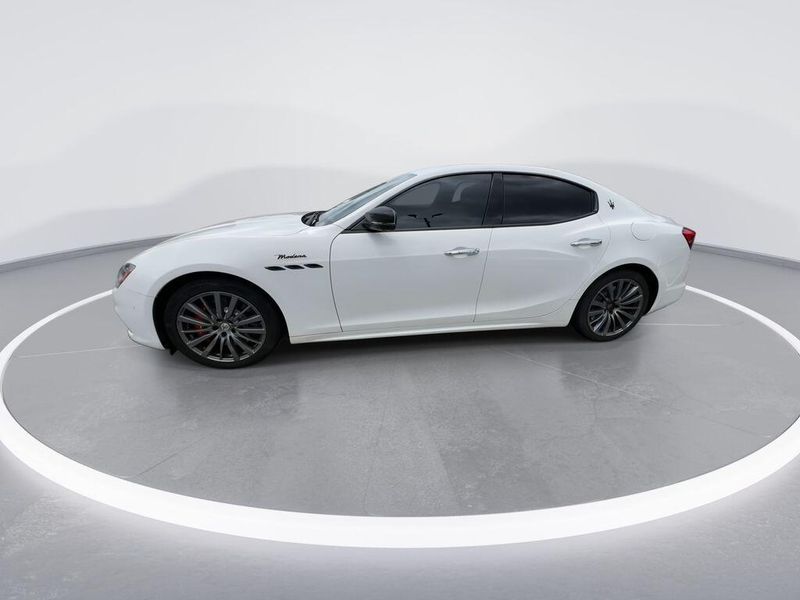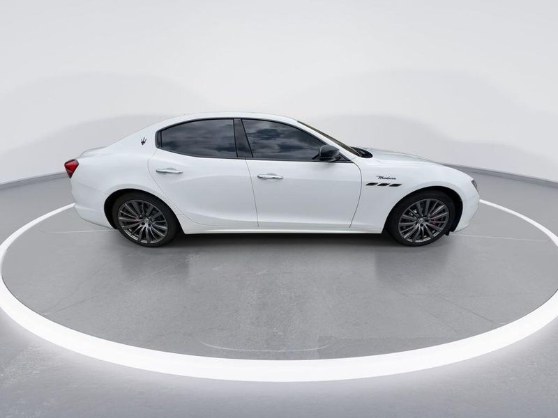 This Ghibli Modena Q4 is nicely equipped with Maserati Certified, 12-Way Power Heated Front Seats, 4-Wheel Disc Brakes, 8 Speakers, ABS brakes, Air Conditioning, Alloy wheels, Aluminum Column-Mounted Paddle Shifters, AM/FM radio: SiriusXM, Anti-whiplash front head restraints, Apple CarPlay/Android Auto, Auto-dimming door mirrors, Auto-dimming Rear-View mirror, Automatic temperature control, Brake assist, Bumpers: body-color, Compass, Delay-off headlights, Driver door bin, Driver vanity mirror, Dual front impact airbags, Dual front side impact airbags, Electronic Stability Control, Emergency communication system: Maserati Connect, Exterior Parking Camera Rear, Four wheel independent suspension, Front anti-roll bar, Front Bucket Seats, Front Center Armrest w/Storage, Front dual zone A/C, Front reading lights, Garage door transmitter: HomeLink, Heated door mirrors, Heated front seats, Heated steering wheel, High intensity discharge headlights: Bi-Xenon, Illuminated entry, Knee airbag, Leather Shift Knob, Leather steering wheel, Leather Upholstery, Low tire pressure warning, Memory seat, Navigation System, Occupant sensing airbag, Outside temperature display, Overhead airbag, Overhead console, Panic alarm, Passenger door bin, Passenger vanity mirror, Power door mirrors, Power driver seat, Power moonroof, Power passenger seat, Power steering, Power windows, Radio data system, Radio: AM/FM w/Maserati Intelligent Assistant, Rain sensing wipers, Rear anti-roll bar, Rear fog lights, Rear reading lights, Rear seat center armrest, Rear window defroster, Remote keyless entry, Security system, Speed control, Speed-sensing steering, Speed-Sensitive Wipers, Split folding rear seat, Sport steering wheel, Steering wheel memory, Steering wheel mounted audio controls, Tachometer, Telescoping steering wheel, Tilt steering wheel, Traction control, Trip computer, Turn signal indicator mirrors, Variably intermittent wipers, Voltmeter, and Wheels: 19'' Silver Poseidone.