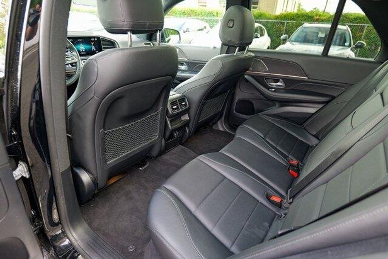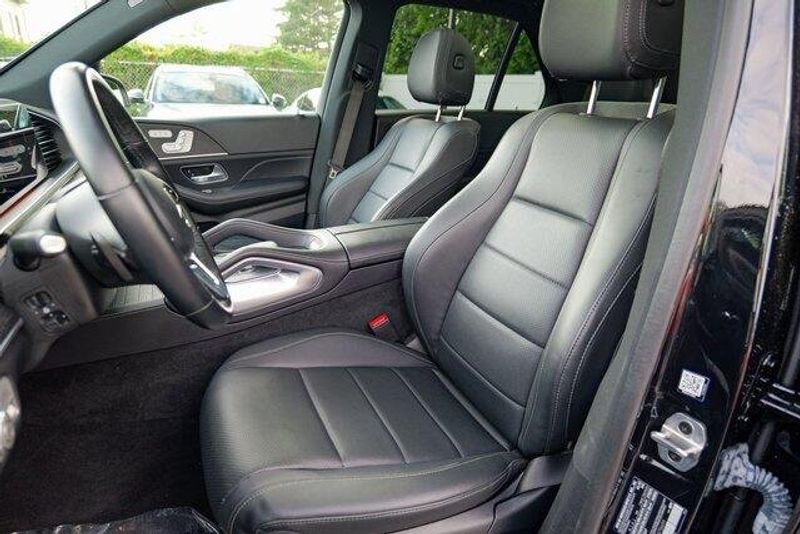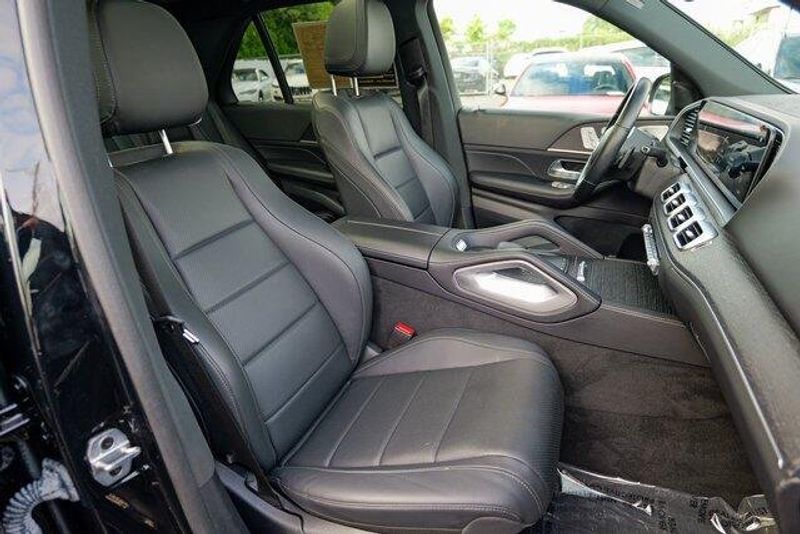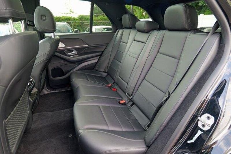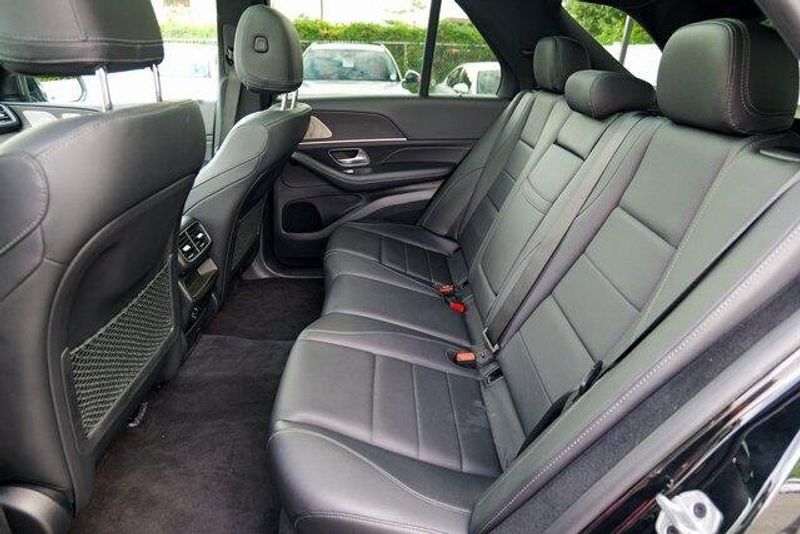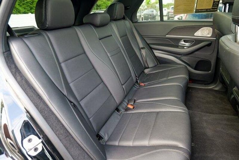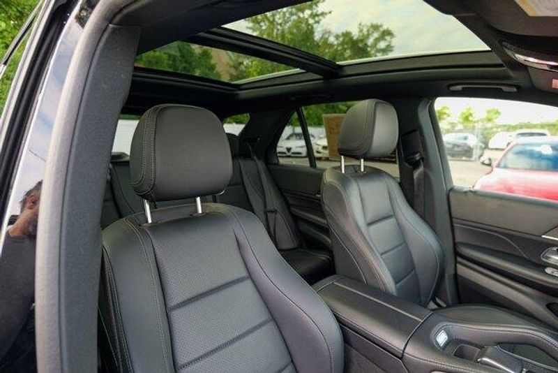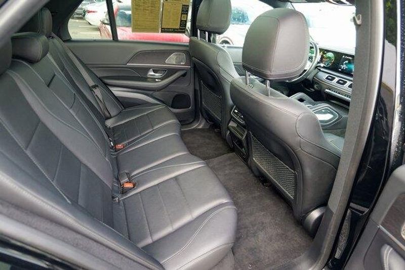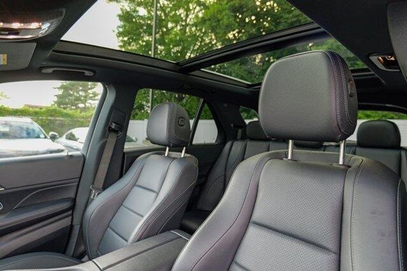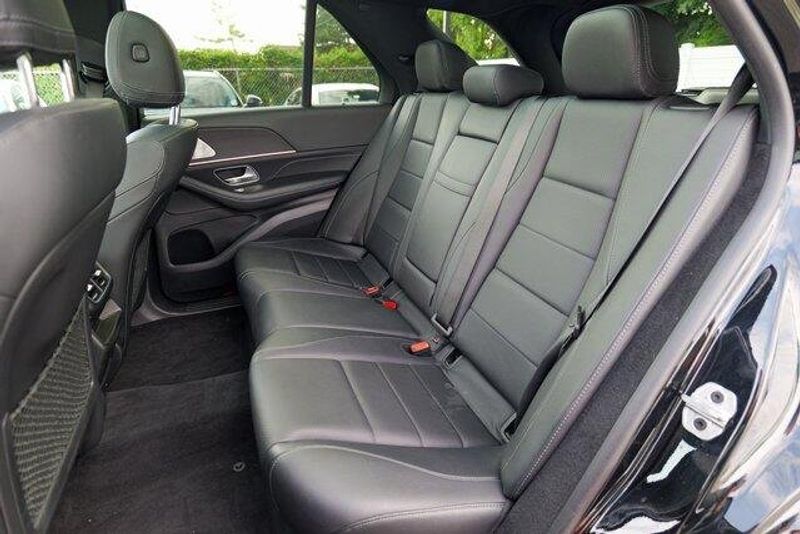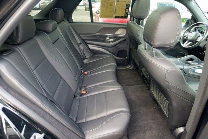 This GLE 350 is nicely equipped with GLE 350 4MATIC, 4D Sport Utility, 2.0L I4 Turbocharged, 9-Speed Automatic, 4MATIC, Black, Black Leatherette, Navigation system: MBUX, Radio: 12.3'' Media Display w/Touchscreen, 3.69 Axle Ratio, 4-Wheel Disc Brakes, 8 Speakers, ABS brakes, Air Conditioning, Alloy wheels, AM/FM radio: SiriusXM, Anti-whiplash front head restraints, Apple CarPlay/Android Auto, Auto High-beam Headlights, Auto tilt-away steering wheel, Auto-dimming door mirrors, Auto-dimming Rear-View mirror, Automatic temperature control, Brake assist, Bumpers: body-color, Compass, Delay-off headlights, Driver door bin, Driver vanity mirror, Dual front impact airbags, Dual front side impact airbags, Electronic Stability Control, Emergency communication system: eCall Emergency System, Exterior Parking Camera Rear, Four wheel independent suspension, Front anti-roll bar, Front Bucket Seats, Front Center Armrest, Front dual zone A/C, Front reading lights, Fully automatic headlights, Garage door transmitter: HomeLink, Genuine wood console insert, Genuine wood dashboard insert, Genuine wood door panel insert, Heated door mirrors, Heated front seats, Heated Power Front Seats w/Driver Memory, Illuminated entry, Knee airbag, Leather steering wheel, Low tire pressure warning, MB-Tex Upholstery, Memory seat, Occupant sensing airbag, Outside temperature display, Overhead airbag, Panic alarm, Passenger door bin, Passenger vanity mirror, Power adjustable front head restraints, Power door mirrors, Power driver seat, Power Liftgate, Power moonroof, Power passenger seat, Power steering, Power windows, Premium audio system: MBUX, Radio data system, Rain sensing wipers, Rear anti-roll bar, Rear fog lights, Rear reading lights, Rear seat center armrest, Rear window defroster, Rear window wiper, Remote keyless entry, Roof rack: rails only, Security system, Speed control, Speed-sensing steering, Speed-Sensitive Wipers, Split folding rear seat, Spoiler, Steering wheel memory, Steering wheel mounted audio controls, Tachometer, Telescoping steering wheel, Tilt steering wheel, Traction control, Trip computer, Turn signal indicator mirrors, Weather band radio, and Wheels: 19'' Twin 5-Spoke.