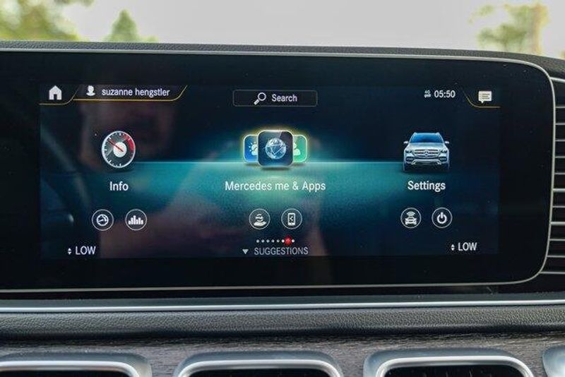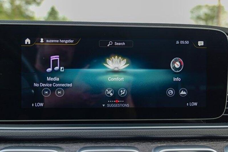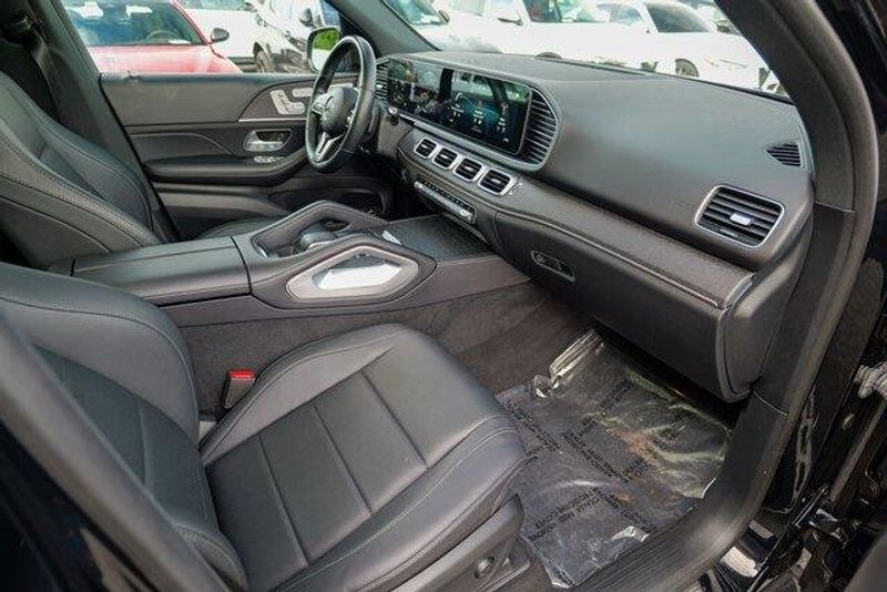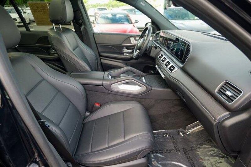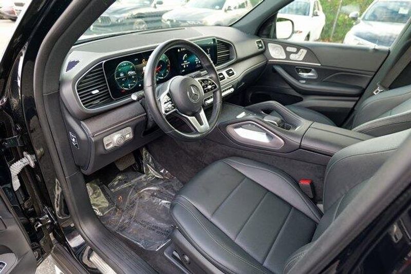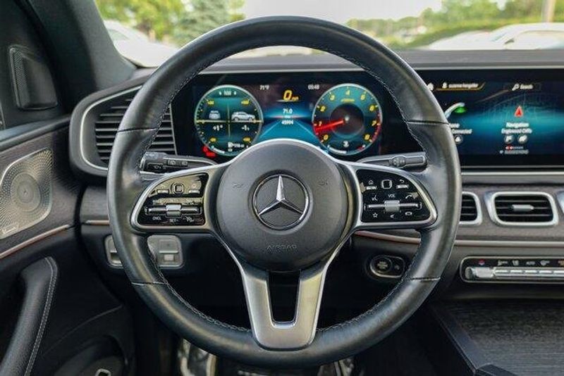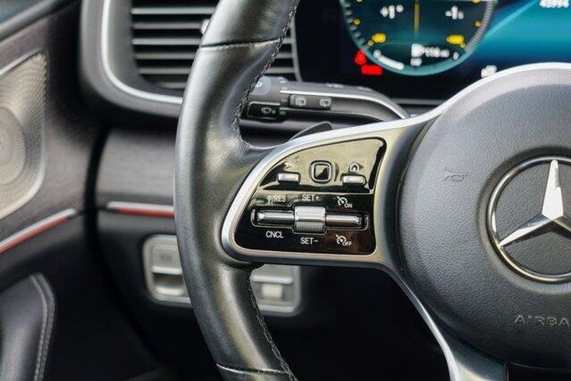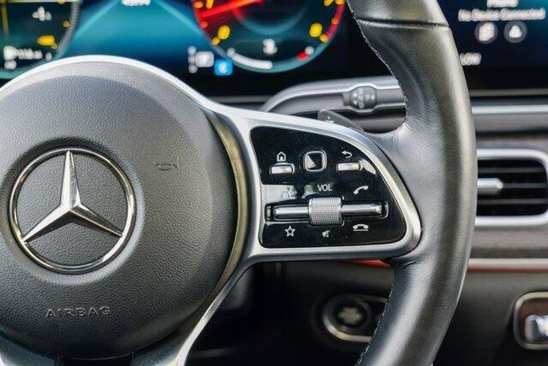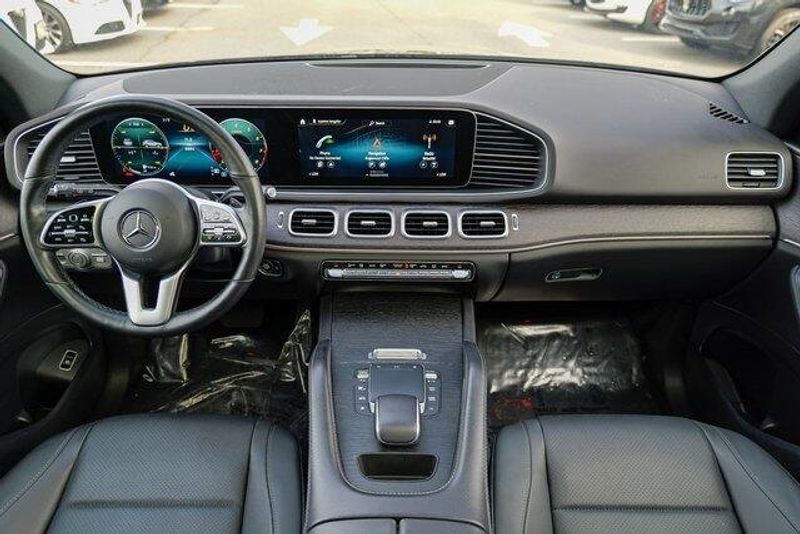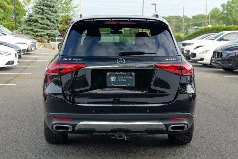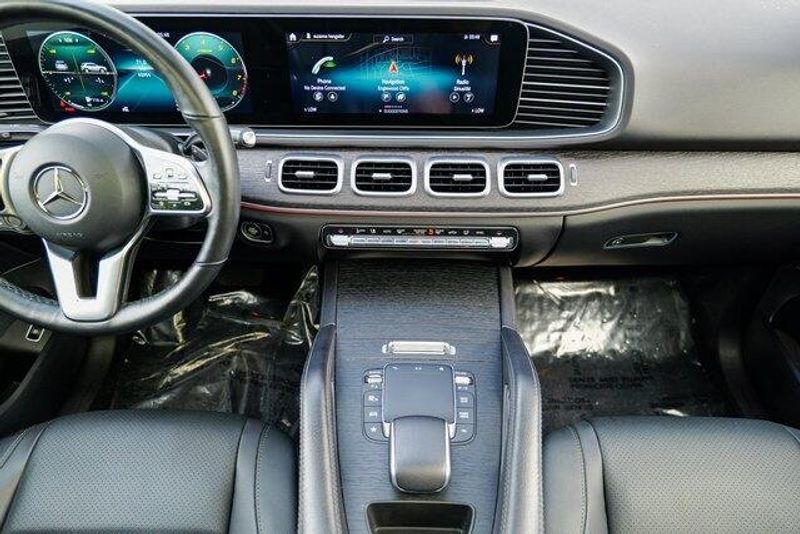 This GLE 350 is nicely equipped with GLE 350 4MATIC, 4D Sport Utility, 2.0L I4 Turbocharged, 9-Speed Automatic, 4MATIC, Black, Black Leatherette, Navigation system: MBUX, Radio: 12.3'' Media Display w/Touchscreen, 3.69 Axle Ratio, 4-Wheel Disc Brakes, 8 Speakers, ABS brakes, Air Conditioning, Alloy wheels, AM/FM radio: SiriusXM, Anti-whiplash front head restraints, Apple CarPlay/Android Auto, Auto High-beam Headlights, Auto tilt-away steering wheel, Auto-dimming door mirrors, Auto-dimming Rear-View mirror, Automatic temperature control, Brake assist, Bumpers: body-color, Compass, Delay-off headlights, Driver door bin, Driver vanity mirror, Dual front impact airbags, Dual front side impact airbags, Electronic Stability Control, Emergency communication system: eCall Emergency System, Exterior Parking Camera Rear, Four wheel independent suspension, Front anti-roll bar, Front Bucket Seats, Front Center Armrest, Front dual zone A/C, Front reading lights, Fully automatic headlights, Garage door transmitter: HomeLink, Genuine wood console insert, Genuine wood dashboard insert, Genuine wood door panel insert, Heated door mirrors, Heated front seats, Heated Power Front Seats w/Driver Memory, Illuminated entry, Knee airbag, Leather steering wheel, Low tire pressure warning, MB-Tex Upholstery, Memory seat, Occupant sensing airbag, Outside temperature display, Overhead airbag, Panic alarm, Passenger door bin, Passenger vanity mirror, Power adjustable front head restraints, Power door mirrors, Power driver seat, Power Liftgate, Power moonroof, Power passenger seat, Power steering, Power windows, Premium audio system: MBUX, Radio data system, Rain sensing wipers, Rear anti-roll bar, Rear fog lights, Rear reading lights, Rear seat center armrest, Rear window defroster, Rear window wiper, Remote keyless entry, Roof rack: rails only, Security system, Speed control, Speed-sensing steering, Speed-Sensitive Wipers, Split folding rear seat, Spoiler, Steering wheel memory, Steering wheel mounted audio controls, Tachometer, Telescoping steering wheel, Tilt steering wheel, Traction control, Trip computer, Turn signal indicator mirrors, Weather band radio, and Wheels: 19'' Twin 5-Spoke.