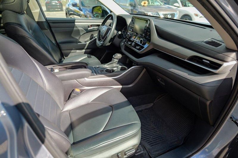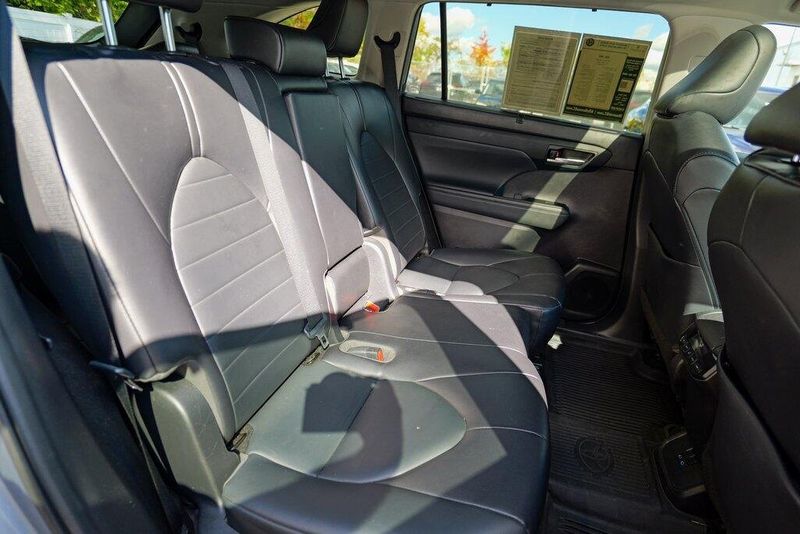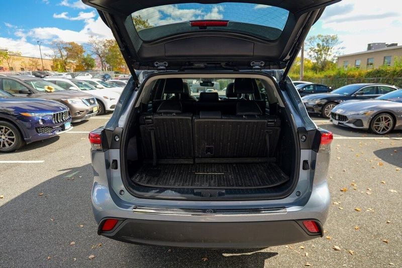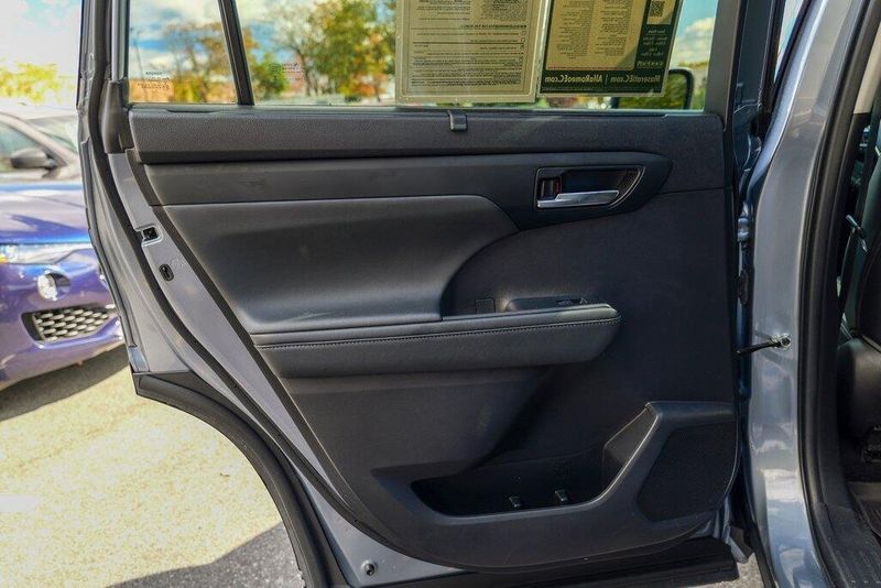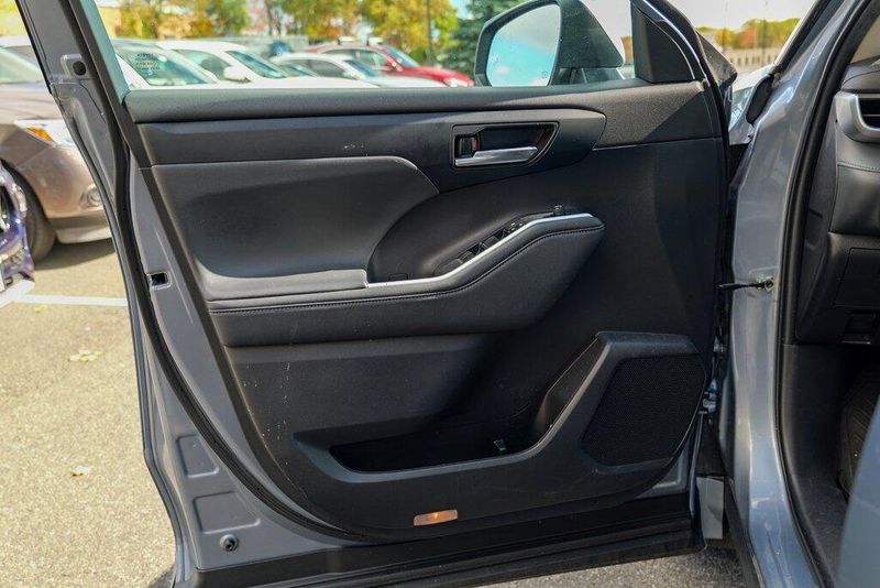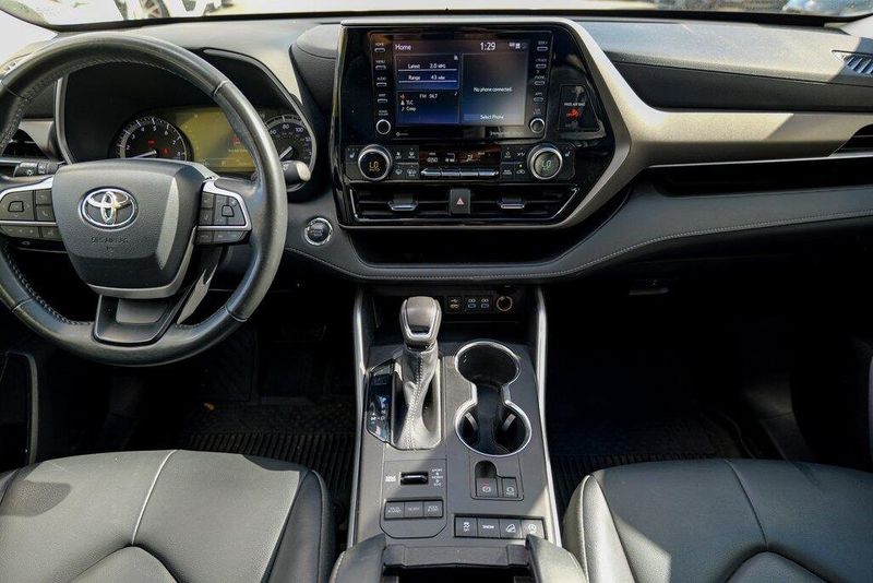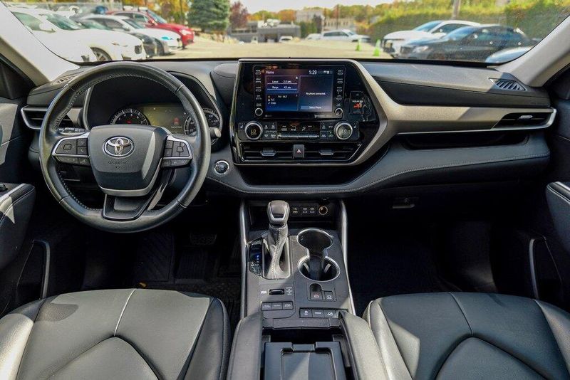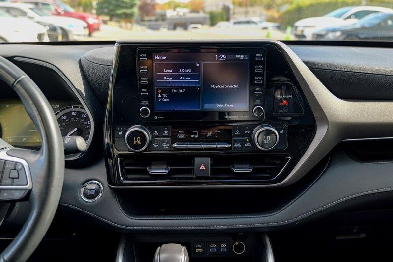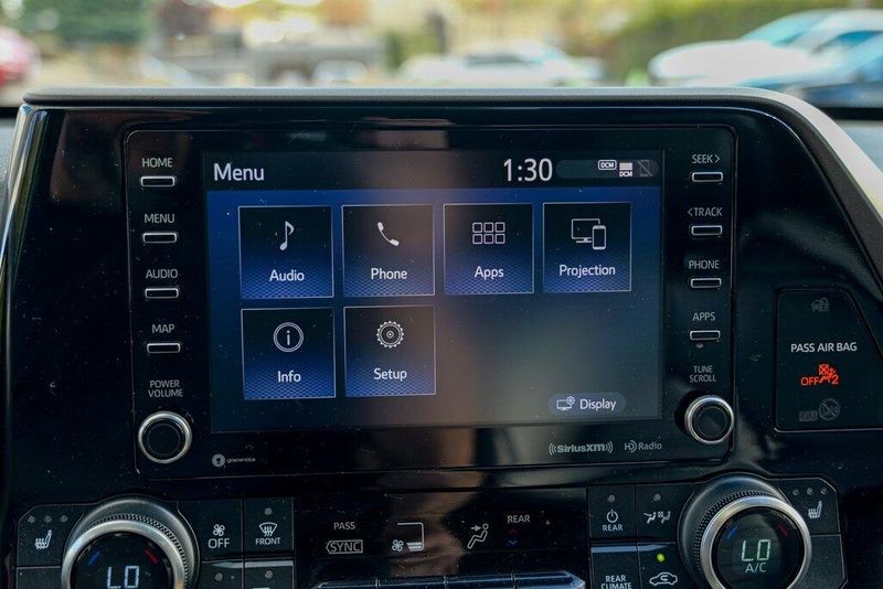 This Highlander XLE is nicely equipped with Highlander XLE, 4D Sport Utility, 3.5L V6 DOHC, 8-Speed Automatic, AWD, Moon Dust, 3.003 Axle Ratio, 3rd row seats: split-bench, 4-Wheel Disc Brakes, 6 Speakers, ABS brakes, Air Conditioning, Alloy wheels, AM/FM radio: SiriusXM, Apple CarPlay/Android Auto, Auto High-beam Headlights, Auto-dimming Rear-View mirror, Automatic temperature control, Brake assist, Bumpers: body-color, Delay-off headlights, Driver door bin, Driver vanity mirror, Dual front impact airbags, Dual front side impact airbags, Electronic Stability Control, Emergency communication system: Safety Connect with 1-year trial, Exterior Parking Camera Rear, Four wheel independent suspension, Front anti-roll bar, Front Bucket Seats, Front Center Armrest, Front dual zone A/C, Front fog lights, Front reading lights, Fully automatic headlights, Garage door transmitter: HomeLink, Heated door mirrors, Heated Front Bucket Seats, Heated front seats, Illuminated entry, Knee airbag, Leather Shift Knob, Low tire pressure warning, Occupant sensing airbag, Outside temperature display, Overhead airbag, Overhead console, Panic alarm, Passenger door bin, Passenger vanity mirror, Power door mirrors, Power driver seat, Power Liftgate, Power moonroof, Power passenger seat, Power steering, Power windows, Radio: Audio Plus, Rear air conditioning, Rear anti-roll bar, Rear reading lights, Rear window defroster, Rear window wiper, Reclining 3rd row seat, Remote keyless entry, Roof rack: rails only, Security system, SofTex Seat Trim, Speed control, Speed-sensing steering, Split folding rear seat, Spoiler, Steering wheel mounted audio controls, Tachometer, Telescoping steering wheel, Tilt steering wheel, Traction control, Trip computer, Turn signal indicator mirrors, Variably intermittent wipers, and Wheels: 18'' Machined-Finish Alloy.