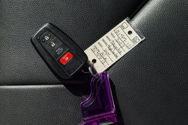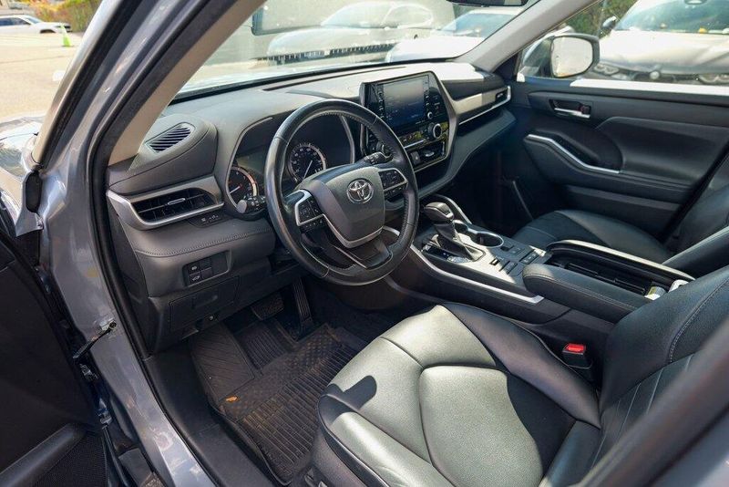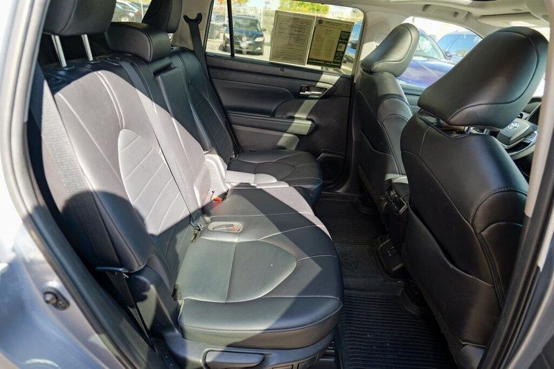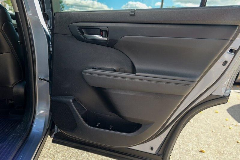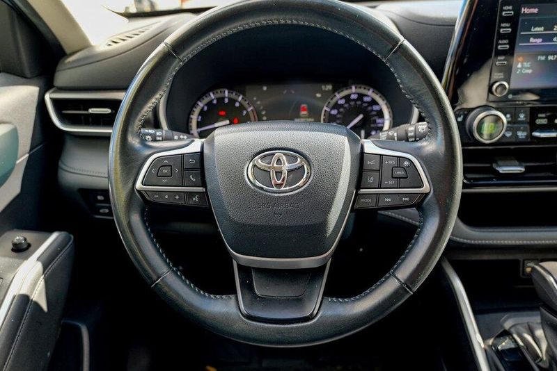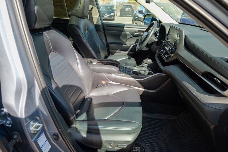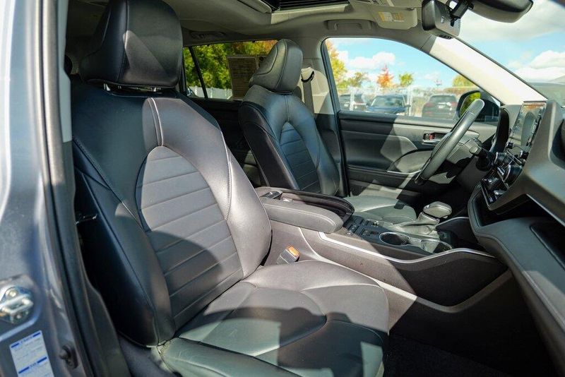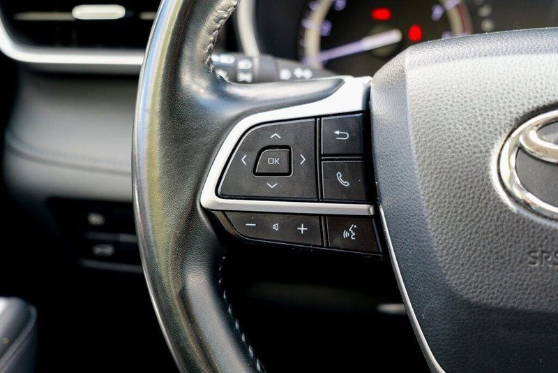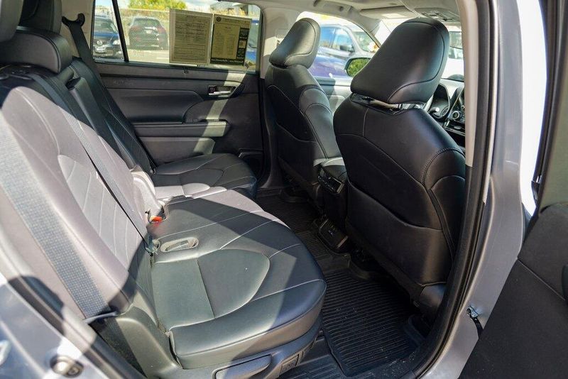 This Highlander XLE is nicely equipped with Highlander XLE, 4D Sport Utility, 3.5L V6 DOHC, 8-Speed Automatic, AWD, Moon Dust, 3.003 Axle Ratio, 3rd row seats: split-bench, 4-Wheel Disc Brakes, 6 Speakers, ABS brakes, Air Conditioning, Alloy wheels, AM/FM radio: SiriusXM, Apple CarPlay/Android Auto, Auto High-beam Headlights, Auto-dimming Rear-View mirror, Automatic temperature control, Brake assist, Bumpers: body-color, Delay-off headlights, Driver door bin, Driver vanity mirror, Dual front impact airbags, Dual front side impact airbags, Electronic Stability Control, Emergency communication system: Safety Connect with 1-year trial, Exterior Parking Camera Rear, Four wheel independent suspension, Front anti-roll bar, Front Bucket Seats, Front Center Armrest, Front dual zone A/C, Front fog lights, Front reading lights, Fully automatic headlights, Garage door transmitter: HomeLink, Heated door mirrors, Heated Front Bucket Seats, Heated front seats, Illuminated entry, Knee airbag, Leather Shift Knob, Low tire pressure warning, Occupant sensing airbag, Outside temperature display, Overhead airbag, Overhead console, Panic alarm, Passenger door bin, Passenger vanity mirror, Power door mirrors, Power driver seat, Power Liftgate, Power moonroof, Power passenger seat, Power steering, Power windows, Radio: Audio Plus, Rear air conditioning, Rear anti-roll bar, Rear reading lights, Rear window defroster, Rear window wiper, Reclining 3rd row seat, Remote keyless entry, Roof rack: rails only, Security system, SofTex Seat Trim, Speed control, Speed-sensing steering, Split folding rear seat, Spoiler, Steering wheel mounted audio controls, Tachometer, Telescoping steering wheel, Tilt steering wheel, Traction control, Trip computer, Turn signal indicator mirrors, Variably intermittent wipers, and Wheels: 18'' Machined-Finish Alloy.