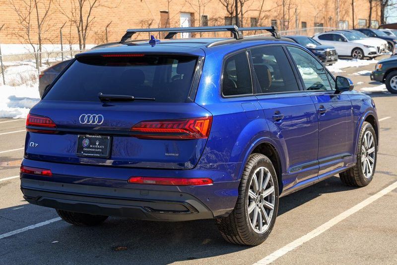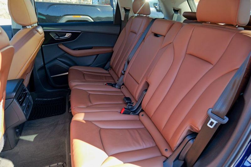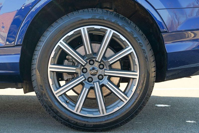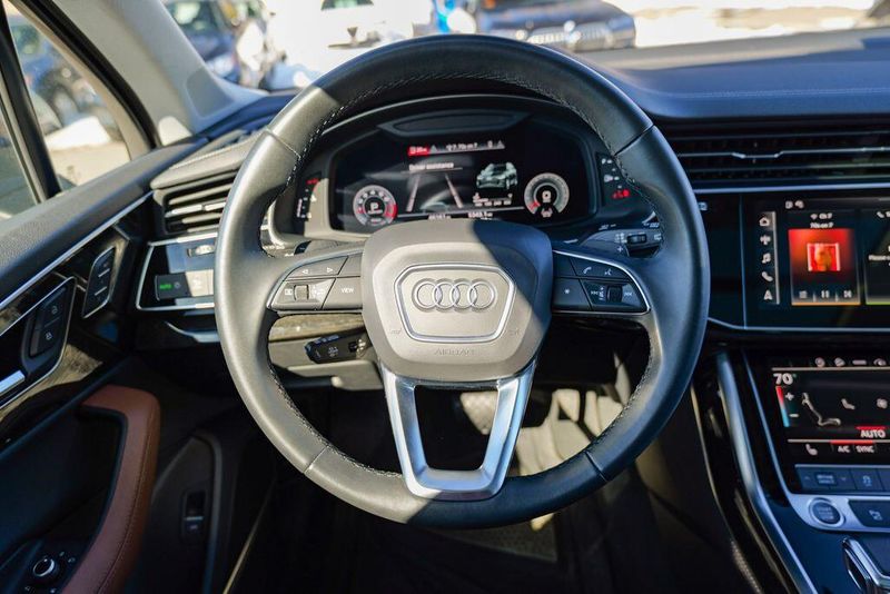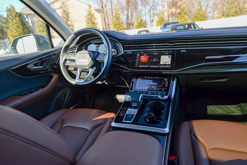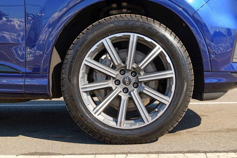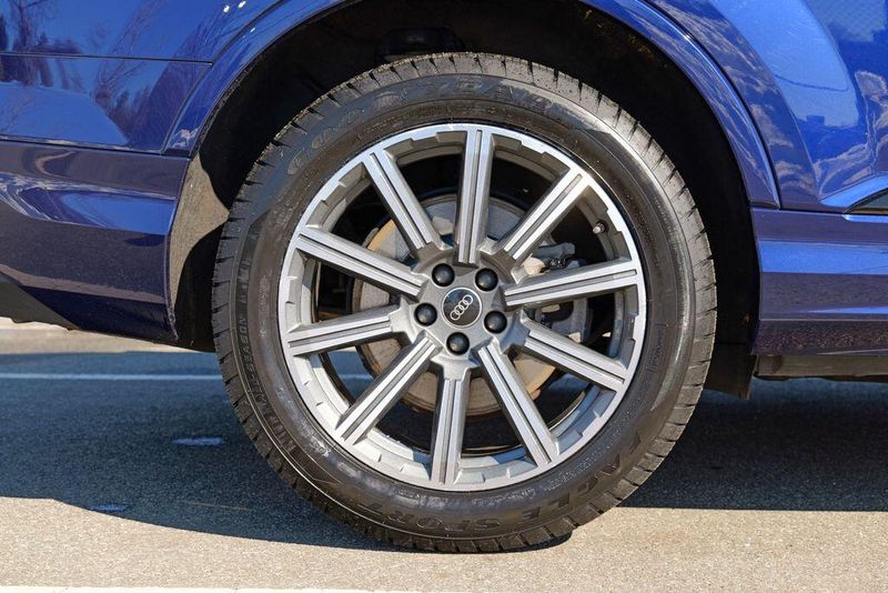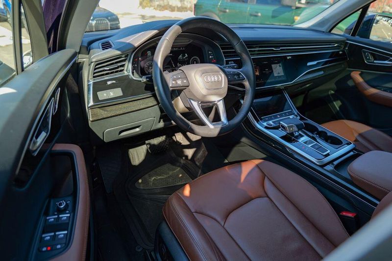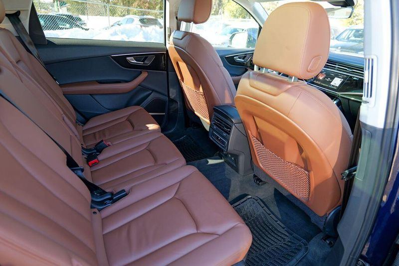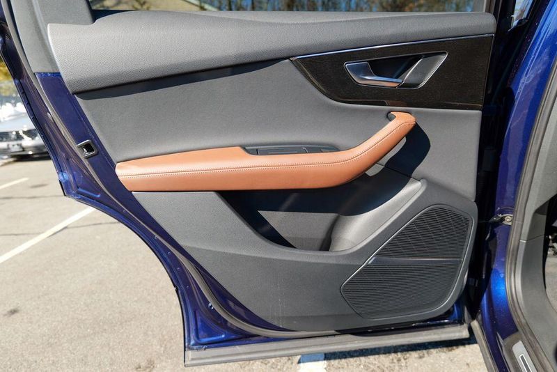 2023 Audi Q7 45 Premium Plus quattro Navarra Blue Metallic Q7 45 Premium Plus quattro, 4D Sport Utility, 2.0L 4-Cylinder TFSI, 8-Speed Automatic with Tiptronic, quattro, Navarra Blue Metallic, Brown Leather, 10 Speakers, 3rd row seats: bench, AM/FM radio: SiriusXM w/ 360L, Auto High-beam Headlights, Automatic temperature control, Bang & Olufsen Premium Sound System w/3D Sound, Black Grille, Black Optic Package, Black Window Surrounds, Brake assist, Convenience Package, Exterior Parking Camera Rear, Four wheel independent suspension, Front dual zone A/C, Fully automatic headlights, Garage door transmitter: HomeLink, Genuine wood door panel insert, Heated Front Bucket Seats, Illuminated Door Sills, Leather Seating Surfaces, Matrix-Design LED Headlights w/DRL Signature, Memory seat, Navigation system: Audi MMI Navigation plus with Touch Response, Power Liftgate, Power moonroof: Panoramic, Power passenger seat, Premium Plus Package, Radio data system, Radio: Audi Sound System, Rain sensing wipers, Rear air conditioning, Reclining 3rd row seat, Remote keyless entry, Speed control, Speed-sensing steering, Steering wheel memory, Steering wheel mounted audio controls, Turn signal indicator mirrors, Wheels: 20'' 10-Spoke-Star Design.