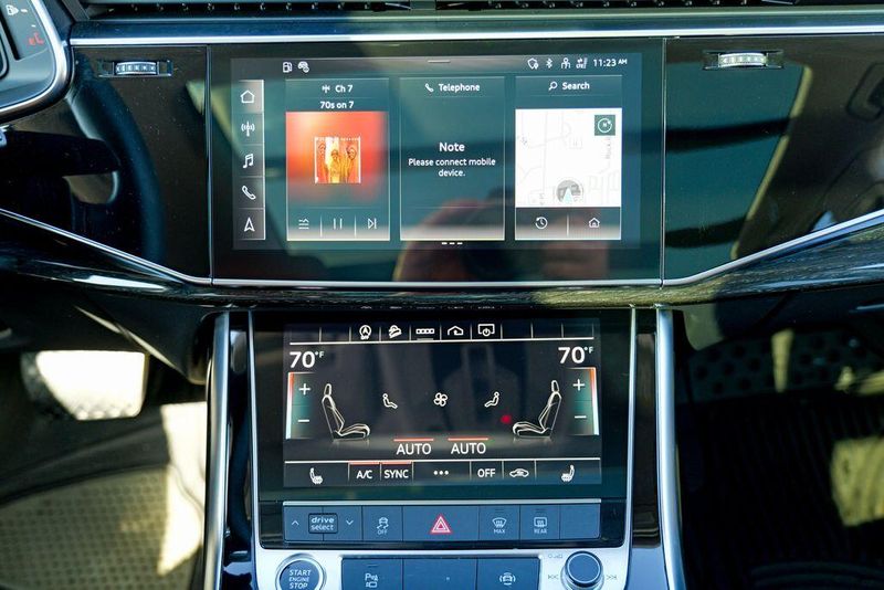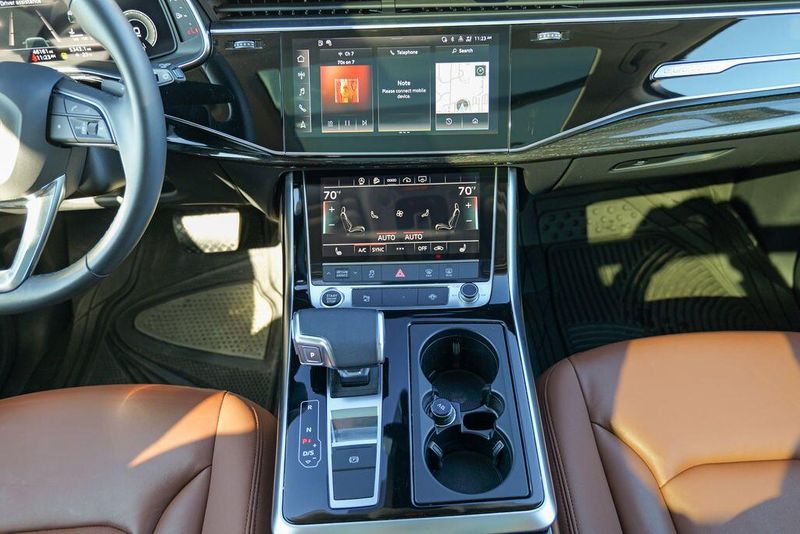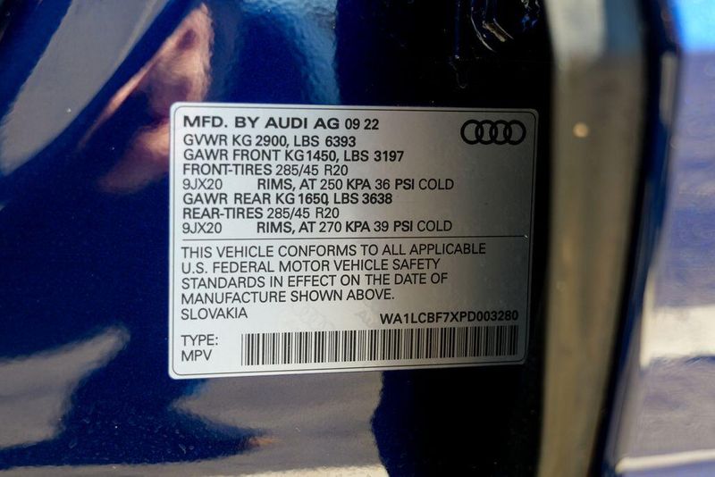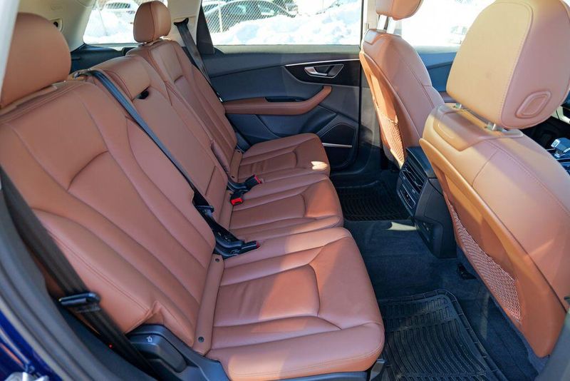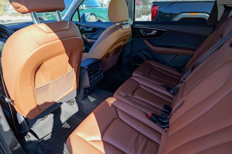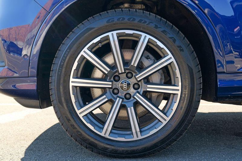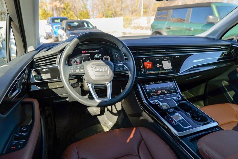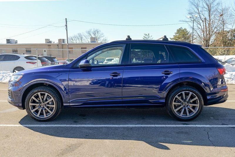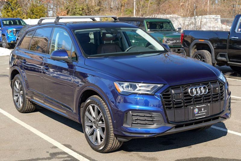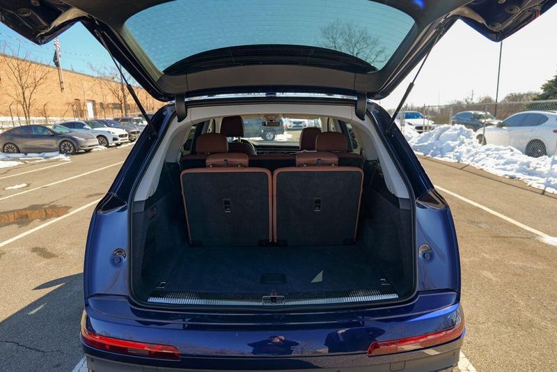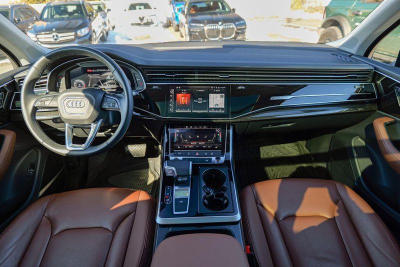 2023 Audi Q7 45 Premium Plus quattro Navarra Blue Metallic Q7 45 Premium Plus quattro, 4D Sport Utility, 2.0L 4-Cylinder TFSI, 8-Speed Automatic with Tiptronic, quattro, Navarra Blue Metallic, Brown Leather, 10 Speakers, 3rd row seats: bench, AM/FM radio: SiriusXM w/ 360L, Auto High-beam Headlights, Automatic temperature control, Bang & Olufsen Premium Sound System w/3D Sound, Black Grille, Black Optic Package, Black Window Surrounds, Brake assist, Convenience Package, Exterior Parking Camera Rear, Four wheel independent suspension, Front dual zone A/C, Fully automatic headlights, Garage door transmitter: HomeLink, Genuine wood door panel insert, Heated Front Bucket Seats, Illuminated Door Sills, Leather Seating Surfaces, Matrix-Design LED Headlights w/DRL Signature, Memory seat, Navigation system: Audi MMI Navigation plus with Touch Response, Power Liftgate, Power moonroof: Panoramic, Power passenger seat, Premium Plus Package, Radio data system, Radio: Audi Sound System, Rain sensing wipers, Rear air conditioning, Reclining 3rd row seat, Remote keyless entry, Speed control, Speed-sensing steering, Steering wheel memory, Steering wheel mounted audio controls, Turn signal indicator mirrors, Wheels: 20'' 10-Spoke-Star Design.