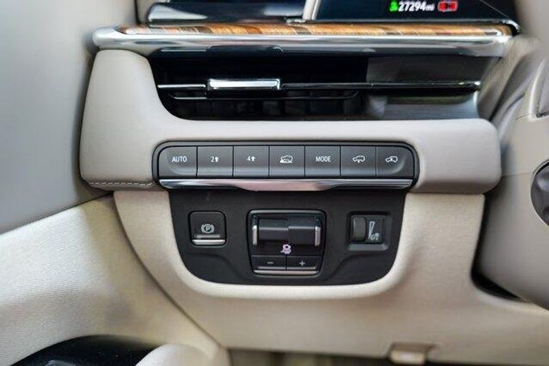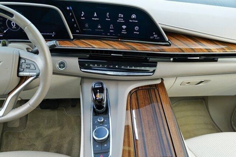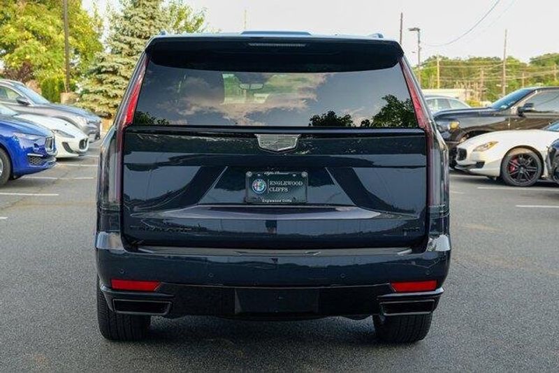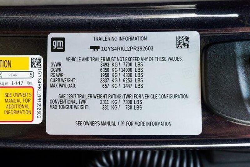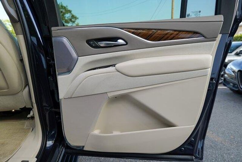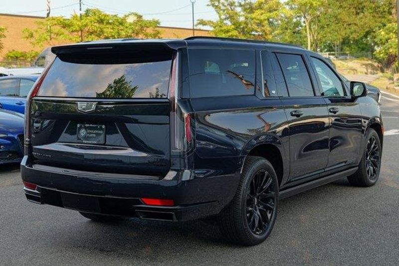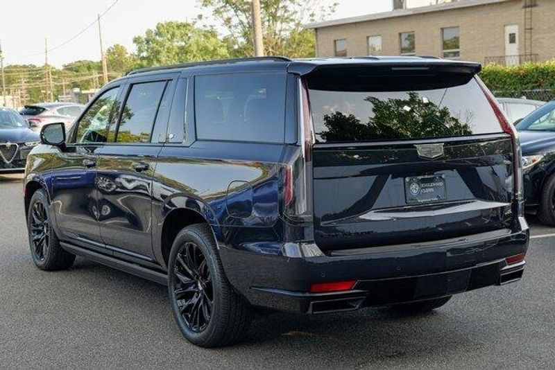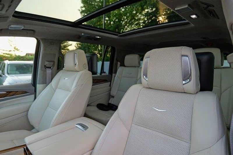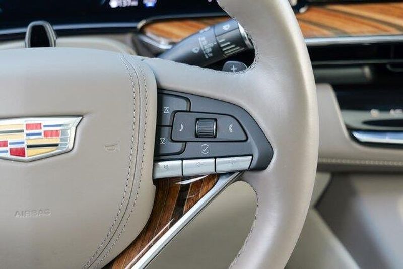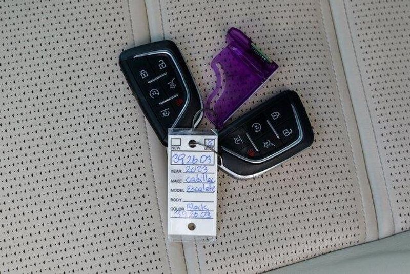 This Escalade ESV Sport Platinum is nicely equipped with Onyx Package (LPO) (Gloss Black Escalade Nameplate (LPO), Monochrome Cadillac Emblems (LPO), Wheels: 22'' 12-Spoke Gloss Black Alloy (LPO), and Wheels: 22'' Interim (LPO)), Preferred Equipment Group 1SH (Adaptive Cruise Control, AKG Studio Reference 36-Speaker Audio System, Automatic Seat Belt Tightening, Body-Color Door Handles, Door Lock & Latch Shields, Electronic Limited-Slip Differential, Enhanced Automatic Emergency Braking, Enhanced Automatic Parking Assist, Floor Console w/Covered Storage, Front Auxiliary 12-volt Power Outlet, Glass Breakage Sensor, Heated & Ventilated Driver & Front Passenger Seats, Hitch Guidance w/Hitch View, Integrated Trailer Brake Controller, Platinum Interior Trim, Power Lumbar Massage Driver Seat, Power Lumbar Massage Front Passenger Seat, Power Panoramic Tilt-Sliding Sunroof, Rear Camera Mirror, Rear Camera Mirror Washer, Rear Cross Traffic Alert, Rear Seat Entertainment System, Reconfigurable Full-Color Head-Up Display, Reverse Automatic Braking, Running Board Assist Steps, Smart Trailer Integration Indicator, Theft-Deterrent Alarm System, Trailer Side Blind Zone Alert, Vehicle Inclination Sensor, and Vehicle Interior Movement Sensor), Touring Package (Air Ride Adaptive Suspension, Illuminating Front & Rear Sill Plates, and Soft Closing Front & Rear Doors), AWD, 16.9'' Diagonal OLED Infotainment Screen, 2-Presets Memory For Driver Seat Adjuster, 3 Years of OnStar & Connected Services Plan, 3.23 Axle Ratio, 3rd row seats: split-bench, 4-Way Power Driver Lumbar Seat Adjuster, 4-Way Power Front Passenger Lumbar Seat Adjuster, 4-Wheel Disc Brakes, 8-Way Power Driver Seat Adjuster, 8-Way Power Front Passenger Seat Adjuster, A/V remote, ABS brakes, Adaptive suspension, Air Conditioning, Alloy wheels, AM/FM radio: SiriusXM with 360L, Apple CarPlay/Android Auto, Audio memory, Auto High-beam Headlights, Auto tilt-away steering wheel, Auto-dimming door mirrors, Automatic temperature control, Brake assist, Bumpers: body-color, Compass, Cooled Console w/Covered Storage, Delay-off headlights, Door auto-latch, Driver door bin, Driver vanity mirror, Dual front impact airbags, Dual front side impact airbags, Electronic Stability Control, Emergency communication system: OnStar and Cadillac connected services capable, Exterior Parking Camera Rear, Four wheel independent suspension, Front anti-roll bar, Front Bucket Seats, Front Center Armrest w/Storage, Front dual zone A/C, Front License Plate Bracket, Front reading lights, Full Semi-Aniline Leather Seat Trim, Fully automatic headlights, Garage door transmitter, Genuine wood console insert, Genuine wood dashboard insert, Genuine wood door panel insert, HD Radio, Headphones, Heads-Up Display, Heated door mirrors, Heated Driver & Front Passenger Seats, Heated front seats, Heated rear seats, Heated steering wheel, Illuminated entry, Leather steering wheel, Low tire pressure warning, Magnetic Ride Control Suspension, Memory seat, Navigation System, Not Equipped w/2nd Row Express-Up Window Control, Occupant sensing airbag, Outside temperature display, Overhead airbag, Overhead console, Panic alarm, Passenger door bin, Passenger vanity mirror, Power door mirrors, Power driver seat, Power Liftgate, Power moonroof, Power passenger seat, Power steering, Power windows, Power-Retractable Assist Steps, Premium Carpeted Floor Mats, Radio data system, Radio: AM/FM w/Navigation, Rain sensing wipers, Rear air conditioning, Rear anti-roll bar, Rear audio controls, Rear reading lights, Rear window defroster, Rear window wiper, Remote keyless entry, Security system, SiriusXM w/360L, Speed control, Split folding rear seat, Spoiler, Steering wheel memory, Steering wheel mounted audio controls, Super Cruise, Tachometer, Teen Driver, Telescoping steering wheel, Tilt steering wheel, Traction control, Trip computer, Turn signal indicator mirrors, Variab