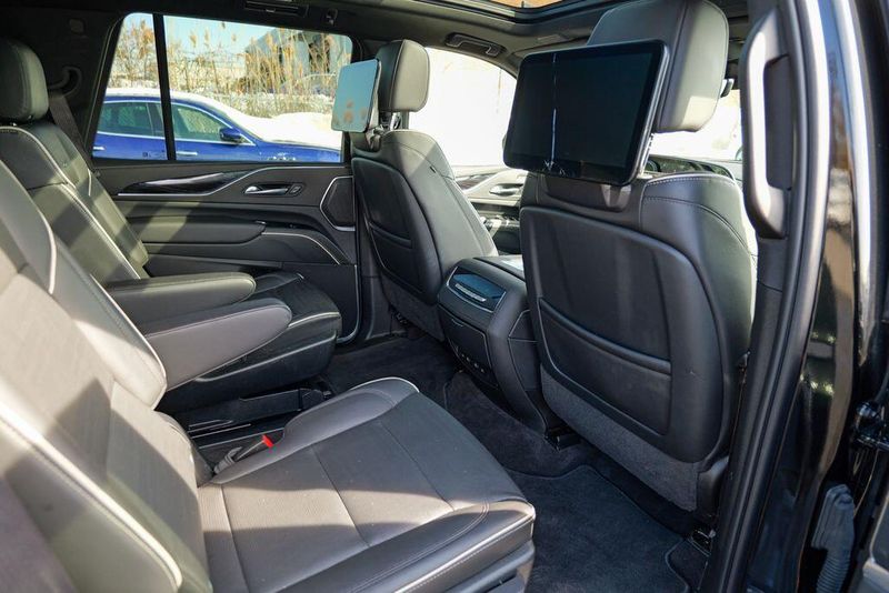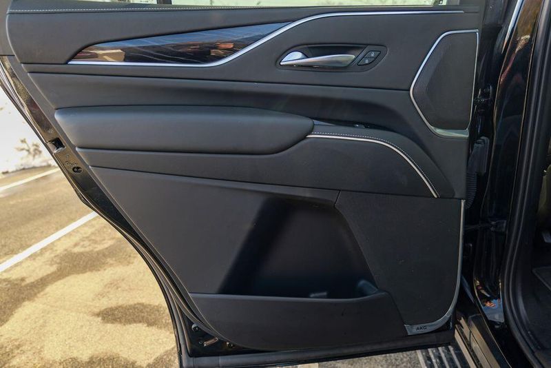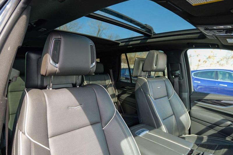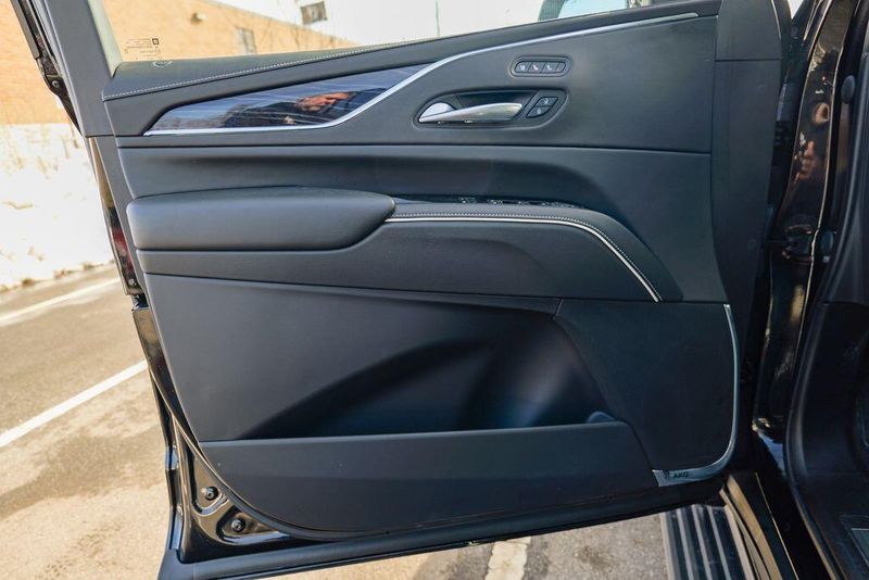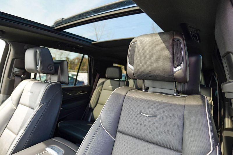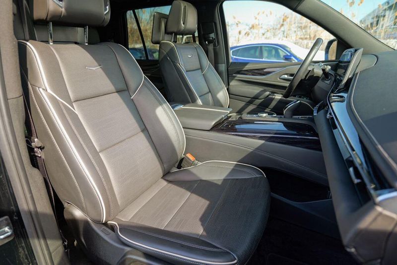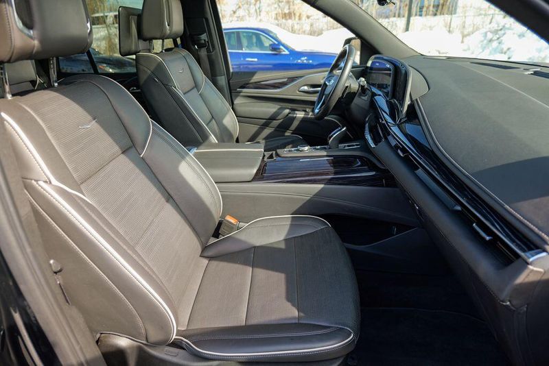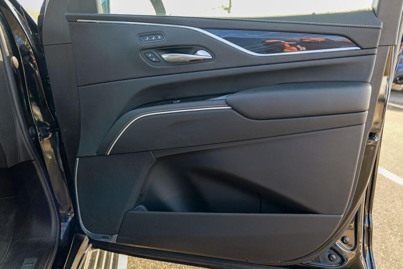 Recent Arrival! 2023 Cadillac Escalade Sport Black Raven Escalade Sport, 4D Sport Utility, 6.2L V8, 10-Speed Automatic, AWD, Black Raven, Black Leather, 16.9'' Diagonal OLED Infotainment Screen, 2-Presets Memory For Driver Seat Adjuster, 4-Way Power Driver Lumbar Seat Adjuster, 4-Way Power Front Passenger Lumbar Seat Adjuster, 8-Way Power Driver Seat Adjuster, 8-Way Power Front Passenger Seat Adjuster, Adaptive Cruise Control, Adaptive suspension, Air Conditioning, Air Ride Adaptive Suspension, AKG Studio 19-Speaker Audio System, Apple CarPlay/Android Auto, Auto High-beam Headlights, Automatic Seat Belt Tightening, Automatic temperature control, Body-Color Door Handles, Brake assist, Door Lock & Latch Shields, Electronic Limited-Slip Differential, Enhanced Automatic Emergency Braking, Enhanced Automatic Parking Assist, Exterior Parking Camera Rear, Front dual zone A/C, Fully automatic headlights, Glass Breakage Sensor, HD Radio, Heads-Up Display, Heated & Ventilated Driver & Front Passenger Seats, Heated front seats, Heated rear seats, Hitch Guidance w/Hitch View, Illuminating Front & Rear Sill Plates, Integrated Trailer Brake Controller, Leather Seating Surfaces w/Precision Perf Inserts, Magnetic Ride Control Suspension, Memory seat, Navigation System, Power Liftgate, Power Panoramic Tilt-Sliding Sunroof, Preferred Equipment Group 1SC, Radio: AM/FM w/Navigation, Rear air conditioning, Rear Camera Mirror, Rear Camera Mirror Washer, Rear Cross Traffic Alert, Rear Seat Entertainment System, Reconfigurable Full-Color Head-Up Display, Remote keyless entry, Reverse Automatic Braking, Running Board Assist Steps, SiriusXM w/360L, Smart Trailer Integration Indicator, Soft Closing Front & Rear Doors, Steering wheel memory, Steering wheel mounted audio controls, Super Cruise, Teen Driver, Theft-Deterrent Alarm System, Touring Package, Trailer Side Blind Zone Alert, Vehicle Inclination Sensor, Vehicle Interior Movement Sensor, Ventilated front seats, Wheels: 22'' 12-Spoke Polished Alloy, Wireless Apple CarPlay/Wireless Android Auto.