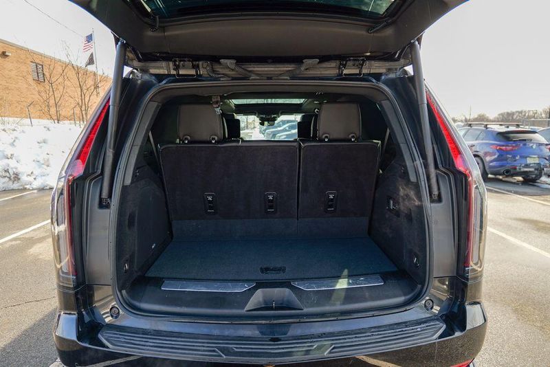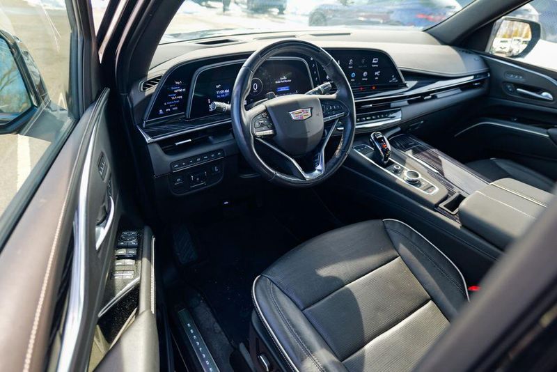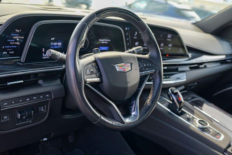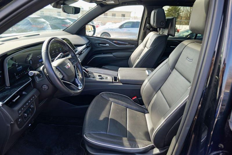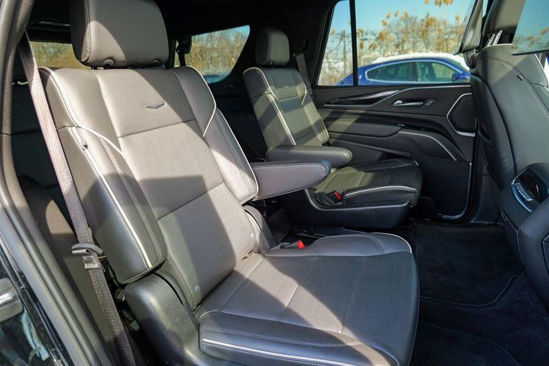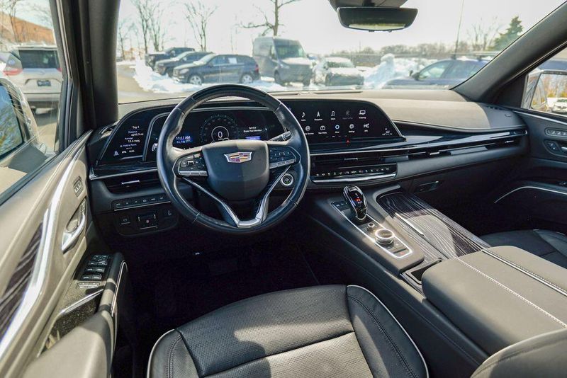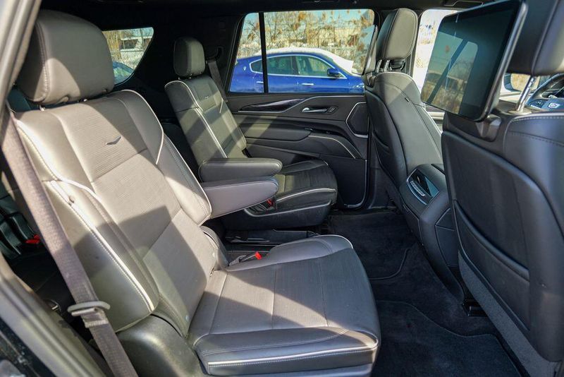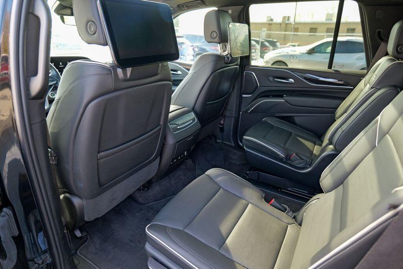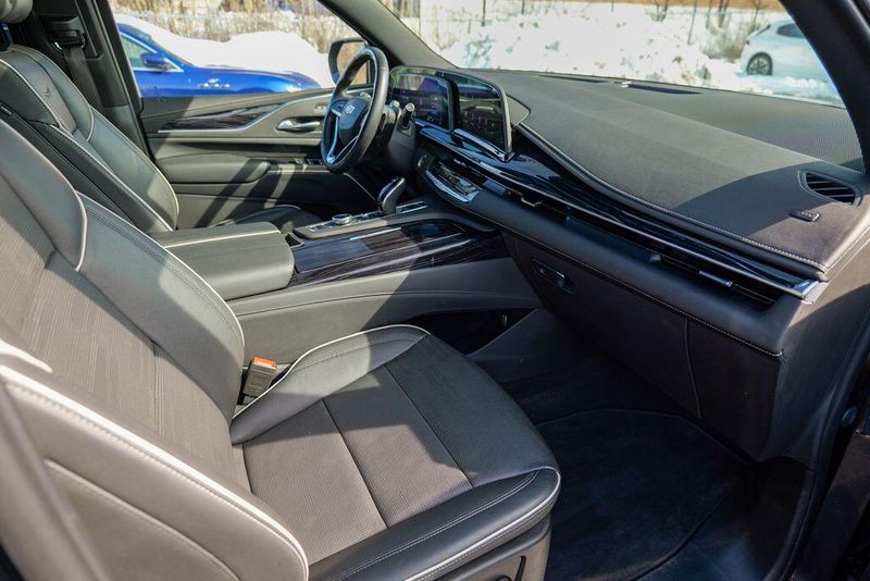 Recent Arrival! 2023 Cadillac Escalade Sport Black Raven Escalade Sport, 4D Sport Utility, 6.2L V8, 10-Speed Automatic, AWD, Black Raven, Black Leather, 16.9'' Diagonal OLED Infotainment Screen, 2-Presets Memory For Driver Seat Adjuster, 4-Way Power Driver Lumbar Seat Adjuster, 4-Way Power Front Passenger Lumbar Seat Adjuster, 8-Way Power Driver Seat Adjuster, 8-Way Power Front Passenger Seat Adjuster, Adaptive Cruise Control, Adaptive suspension, Air Conditioning, Air Ride Adaptive Suspension, AKG Studio 19-Speaker Audio System, Apple CarPlay/Android Auto, Auto High-beam Headlights, Automatic Seat Belt Tightening, Automatic temperature control, Body-Color Door Handles, Brake assist, Door Lock & Latch Shields, Electronic Limited-Slip Differential, Enhanced Automatic Emergency Braking, Enhanced Automatic Parking Assist, Exterior Parking Camera Rear, Front dual zone A/C, Fully automatic headlights, Glass Breakage Sensor, HD Radio, Heads-Up Display, Heated & Ventilated Driver & Front Passenger Seats, Heated front seats, Heated rear seats, Hitch Guidance w/Hitch View, Illuminating Front & Rear Sill Plates, Integrated Trailer Brake Controller, Leather Seating Surfaces w/Precision Perf Inserts, Magnetic Ride Control Suspension, Memory seat, Navigation System, Power Liftgate, Power Panoramic Tilt-Sliding Sunroof, Preferred Equipment Group 1SC, Radio: AM/FM w/Navigation, Rear air conditioning, Rear Camera Mirror, Rear Camera Mirror Washer, Rear Cross Traffic Alert, Rear Seat Entertainment System, Reconfigurable Full-Color Head-Up Display, Remote keyless entry, Reverse Automatic Braking, Running Board Assist Steps, SiriusXM w/360L, Smart Trailer Integration Indicator, Soft Closing Front & Rear Doors, Steering wheel memory, Steering wheel mounted audio controls, Super Cruise, Teen Driver, Theft-Deterrent Alarm System, Touring Package, Trailer Side Blind Zone Alert, Vehicle Inclination Sensor, Vehicle Interior Movement Sensor, Ventilated front seats, Wheels: 22'' 12-Spoke Polished Alloy, Wireless Apple CarPlay/Wireless Android Auto.