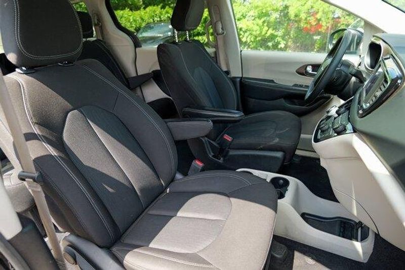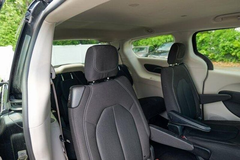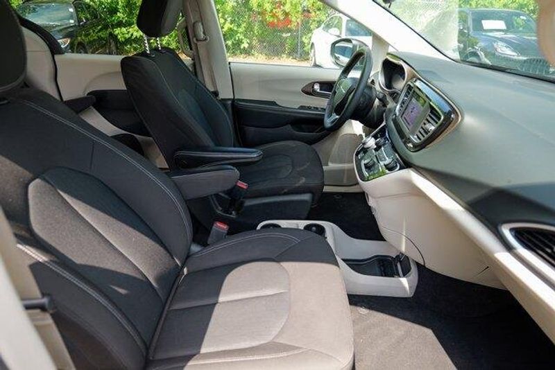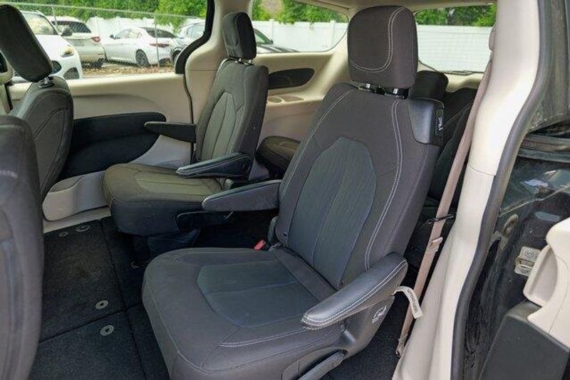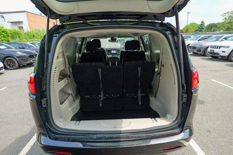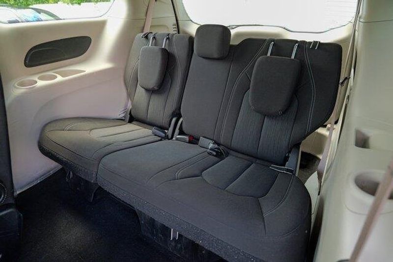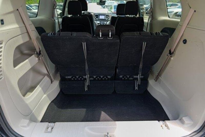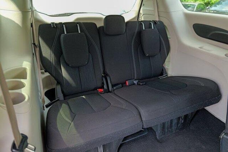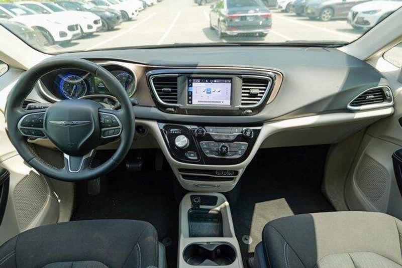 This Voyager LX is nicely equipped with Quick Order Package 27E, 17'' x 7'' Aluminum Wheels, 3.25 Axle Ratio, 3rd row seats: split-bench, 4-Wheel Disc Brakes, 6 Speakers, ABS brakes, Air Conditioning, Alloy wheels, AM/FM radio: SiriusXM, Apple CarPlay, Apple CarPlay/Android Auto, Automatic temperature control, Black Seats, Brake assist, Bumpers: body-color, Cloth Bucket Seats, Compass, Delay-off headlights, Door auto-latch, Driver door bin, Driver vanity mirror, Driver's Seat Mounted Armrest, Dual front impact airbags, Dual front side impact airbags, Electronic Stability Control, Exterior Mirrors w/Heating Element, Four wheel independent suspension, Front anti-roll bar, Front Bucket Seats, Front dual zone A/C, Front reading lights, Fully automatic headlights, Google Android Auto, GPS Antenna Input, Heated door mirrors, Heated front seats, Heated steering wheel, Illuminated entry, Knee airbag, Low tire pressure warning, Occupant sensing airbag, Outside temperature display, Overhead airbag, Overhead console, Panic alarm, ParkView Rear Back-Up Camera, Passenger door bin, Passenger seat mounted armrest, Passenger vanity mirror, Power door mirrors, Power driver seat, Power Liftgate, Power steering, Power windows, Radio data system, Radio: Uconnect 5 w/7'' Display, Rear air conditioning, Rear window defroster, Rear window wiper, Reclining 3rd row seat, Remote keyless entry, Security system, Speed control, Split folding rear seat, Spoiler, Steering wheel mounted audio controls, Tachometer, Telescoping steering wheel, Tilt steering wheel, Touring Suspension, Traction control, Trip computer, USB Host Flip, Variably intermittent wipers, and Voltmeter.