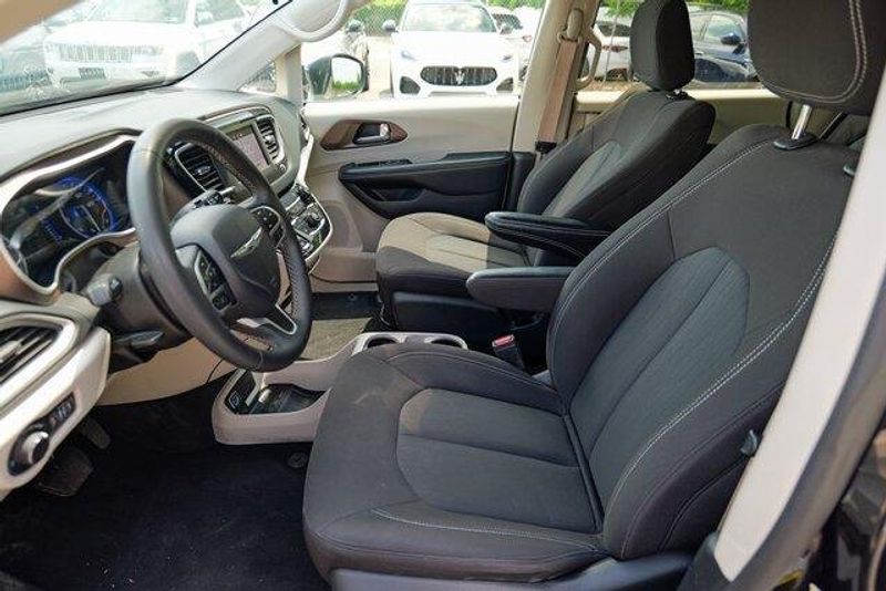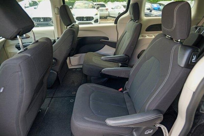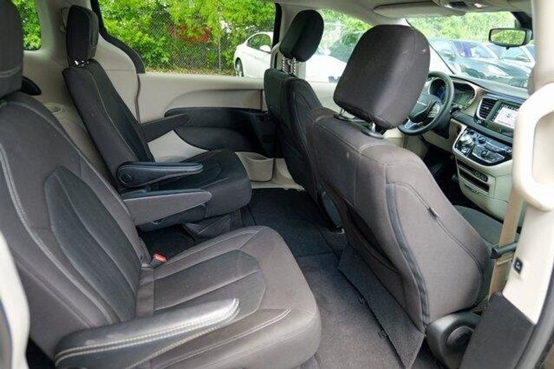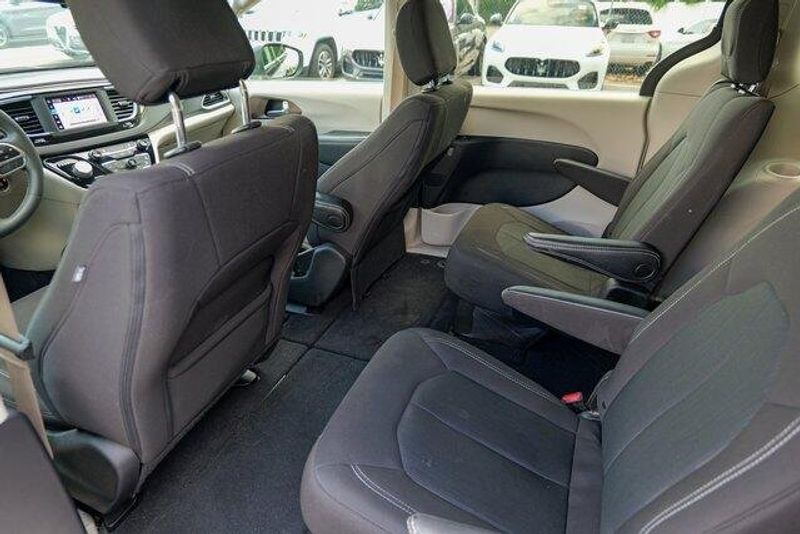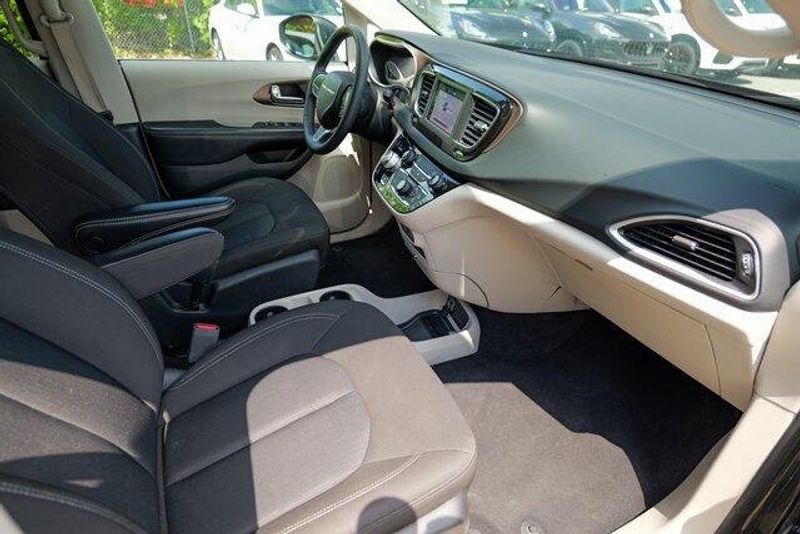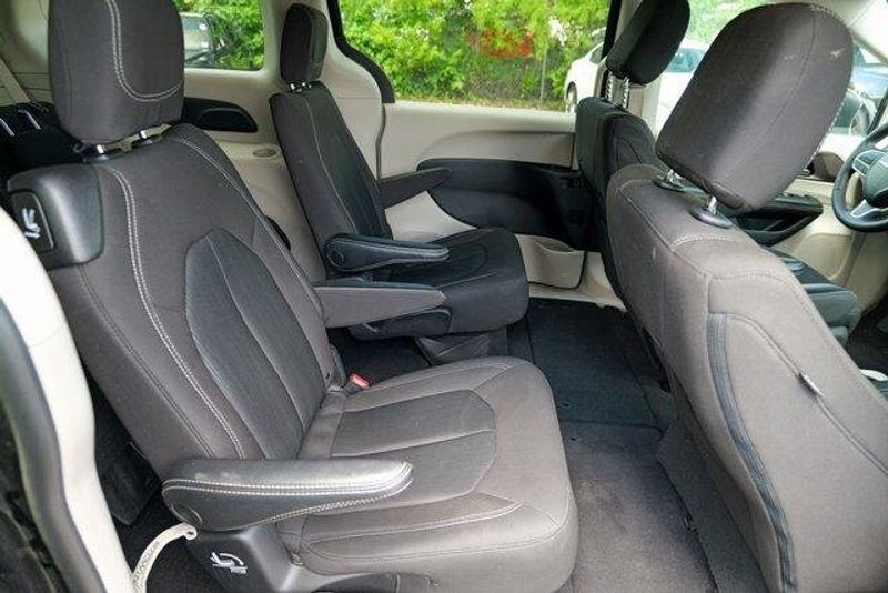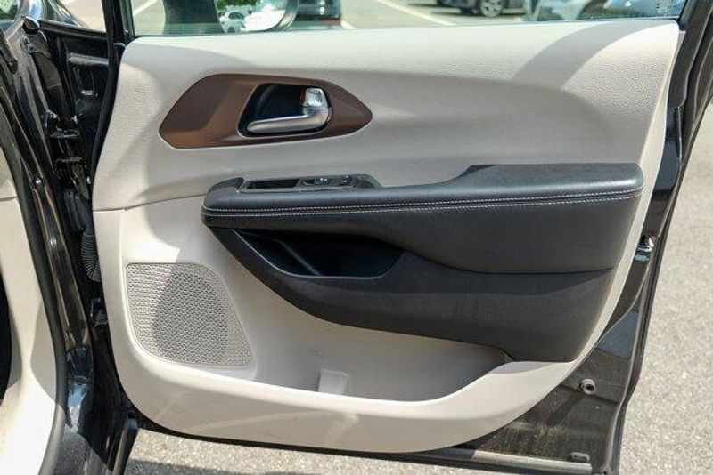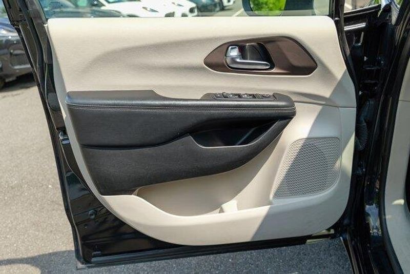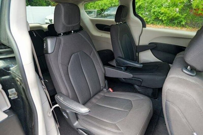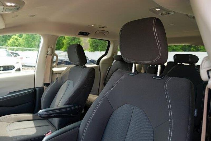 This Voyager LX is nicely equipped with Quick Order Package 27E, 17'' x 7'' Aluminum Wheels, 3.25 Axle Ratio, 3rd row seats: split-bench, 4-Wheel Disc Brakes, 6 Speakers, ABS brakes, Air Conditioning, Alloy wheels, AM/FM radio: SiriusXM, Apple CarPlay, Apple CarPlay/Android Auto, Automatic temperature control, Black Seats, Brake assist, Bumpers: body-color, Cloth Bucket Seats, Compass, Delay-off headlights, Door auto-latch, Driver door bin, Driver vanity mirror, Driver's Seat Mounted Armrest, Dual front impact airbags, Dual front side impact airbags, Electronic Stability Control, Exterior Mirrors w/Heating Element, Four wheel independent suspension, Front anti-roll bar, Front Bucket Seats, Front dual zone A/C, Front reading lights, Fully automatic headlights, Google Android Auto, GPS Antenna Input, Heated door mirrors, Heated front seats, Heated steering wheel, Illuminated entry, Knee airbag, Low tire pressure warning, Occupant sensing airbag, Outside temperature display, Overhead airbag, Overhead console, Panic alarm, ParkView Rear Back-Up Camera, Passenger door bin, Passenger seat mounted armrest, Passenger vanity mirror, Power door mirrors, Power driver seat, Power Liftgate, Power steering, Power windows, Radio data system, Radio: Uconnect 5 w/7'' Display, Rear air conditioning, Rear window defroster, Rear window wiper, Reclining 3rd row seat, Remote keyless entry, Security system, Speed control, Split folding rear seat, Spoiler, Steering wheel mounted audio controls, Tachometer, Telescoping steering wheel, Tilt steering wheel, Touring Suspension, Traction control, Trip computer, USB Host Flip, Variably intermittent wipers, and Voltmeter.