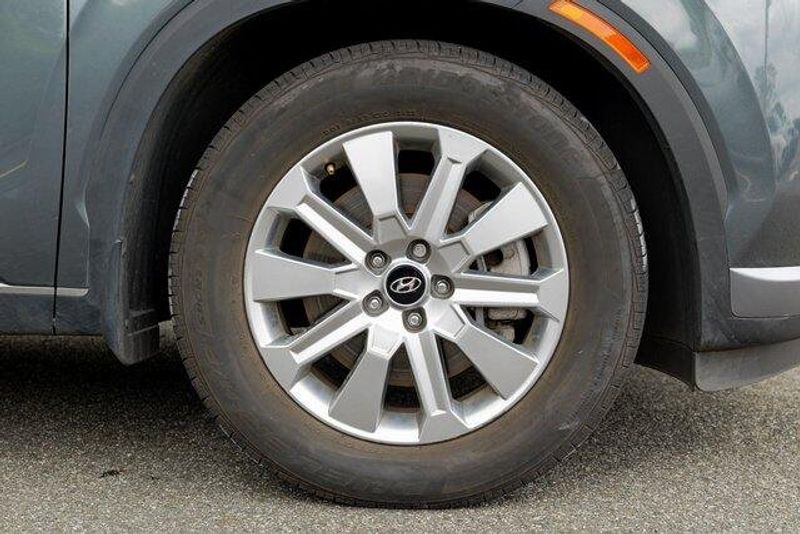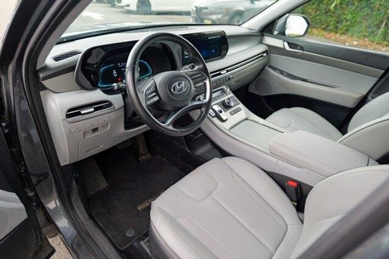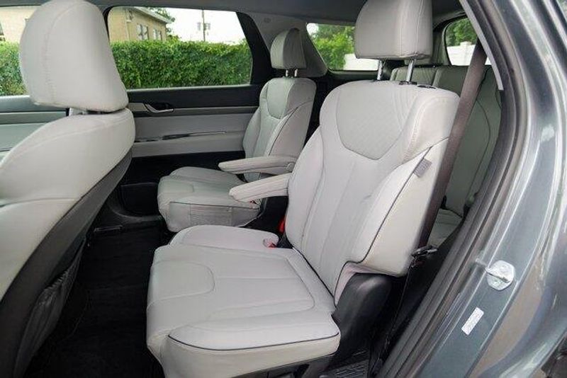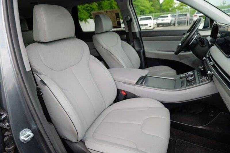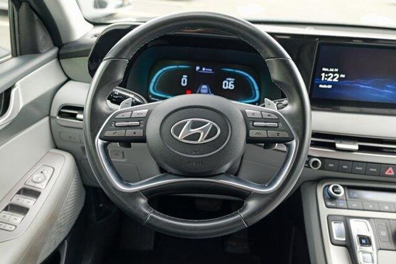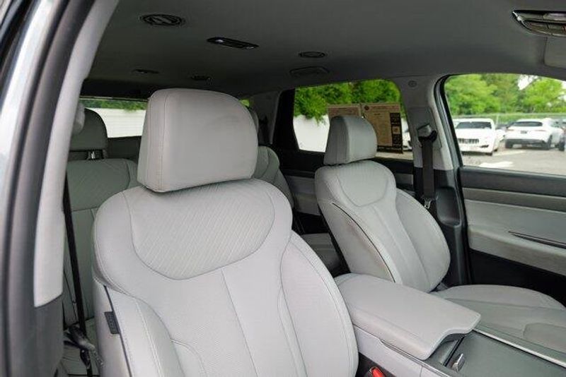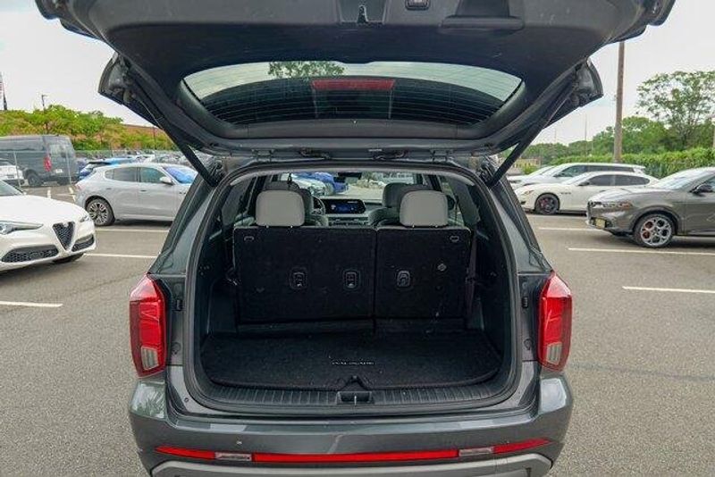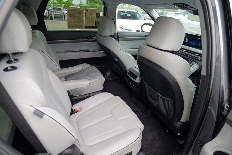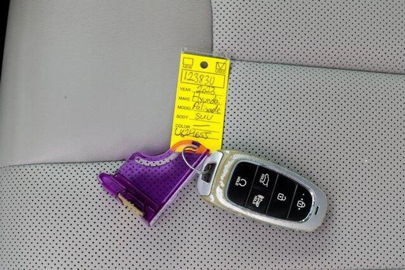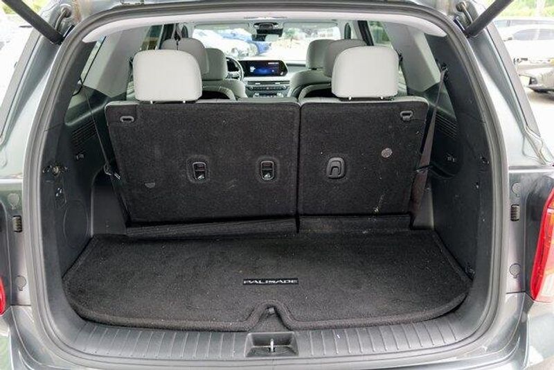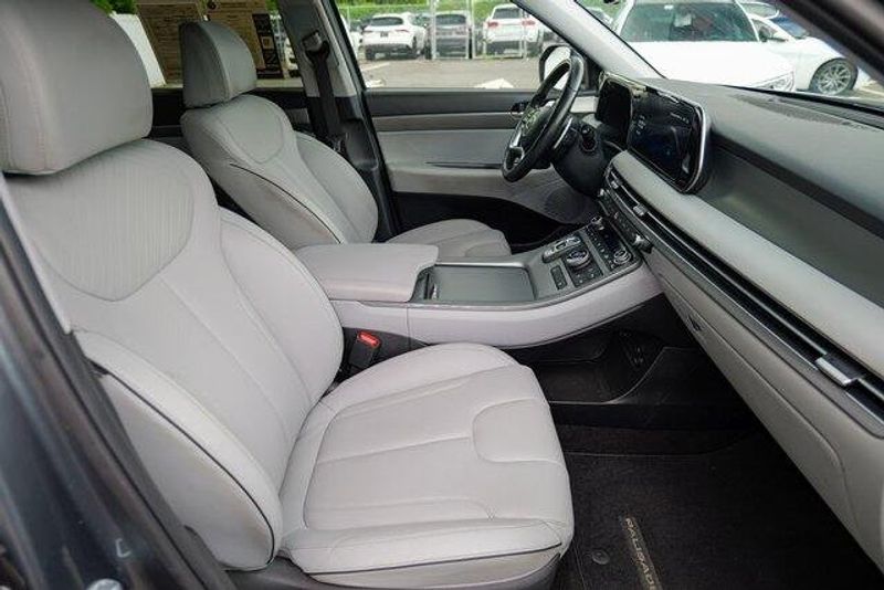 This Palisade SEL is nicely equipped with Option Group 01, 3.648 Axle Ratio, 3rd row seats: split-bench, 4-Wheel Disc Brakes, 6 Speakers, ABS brakes, Air Conditioning, Alloy wheels, AM/FM radio: SiriusXM, Apple CarPlay & Android Auto, Auto High-beam Headlights, Auto-dimming door mirrors, Auto-dimming Rear-View mirror, Automatic temperature control, Brake assist, Bumpers: body-color, Cargo Cover/Screen, Cargo Net, Cargo Tray, Carpeted Floor Mats, Delay-off headlights, Driver door bin, Driver vanity mirror, Dual front impact airbags, Dual front side impact airbags, Electronic Stability Control, Emergency communication system: Blue Link Connected Car Service (3-year complimentary subscription), Exterior Parking Camera Rear, Four wheel independent suspension, Front anti-roll bar, Front Bucket Seats, Front Center Armrest, Front dual zone A/C, Front reading lights, Fully automatic headlights, Garage door transmitter: HomeLink, H-Tex Leatherette Seat Trim, Heated door mirrors, Heated Front Bucket Seats, Heated front seats, Illuminated entry, Knee airbag, Low tire pressure warning, Navigation System, Occupant sensing airbag, Outside temperature display, Overhead airbag, Overhead console, Panic alarm, Passenger door bin, Passenger vanity mirror, Power door mirrors, Power driver seat, Power Liftgate, Power passenger seat, Power steering, Power windows, Radio data system, Radio: AM/FM/MP3 Audio System, Rear air conditioning, Rear anti-roll bar, Rear audio controls, Rear reading lights, Rear side impact airbag, Rear window defroster, Rear window wiper, Reclining 3rd row seat, Remote keyless entry, Security system, Speed control, Speed-sensing steering, Splash Trim, Split folding rear seat, Spoiler, Steering wheel mounted audio controls, Tachometer, Telescoping steering wheel, Tilt steering wheel, Traction control, Trip computer, Turn signal indicator mirrors, Variably intermittent wipers, Wheel Locks, and Wheels: 18'' x 7.5J Machine-Faced Alloy.