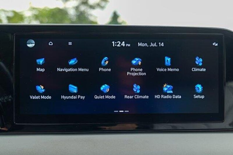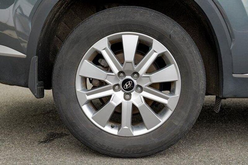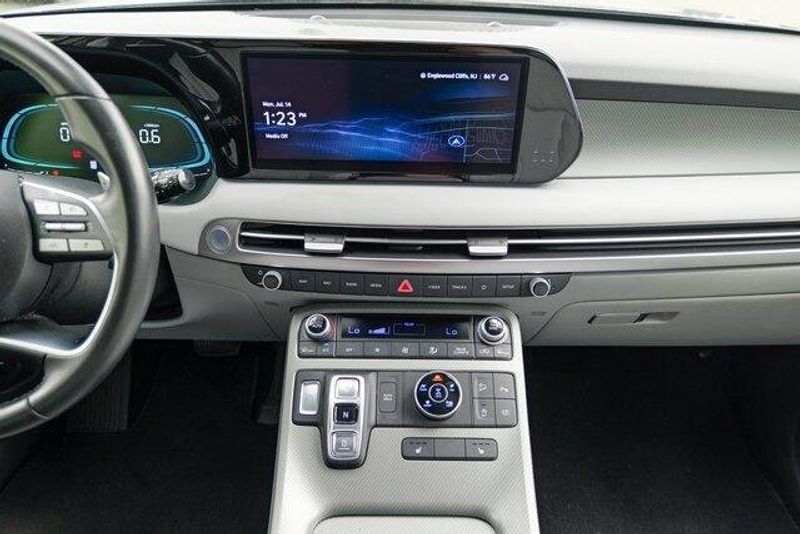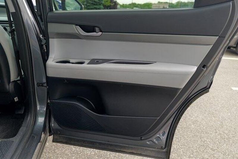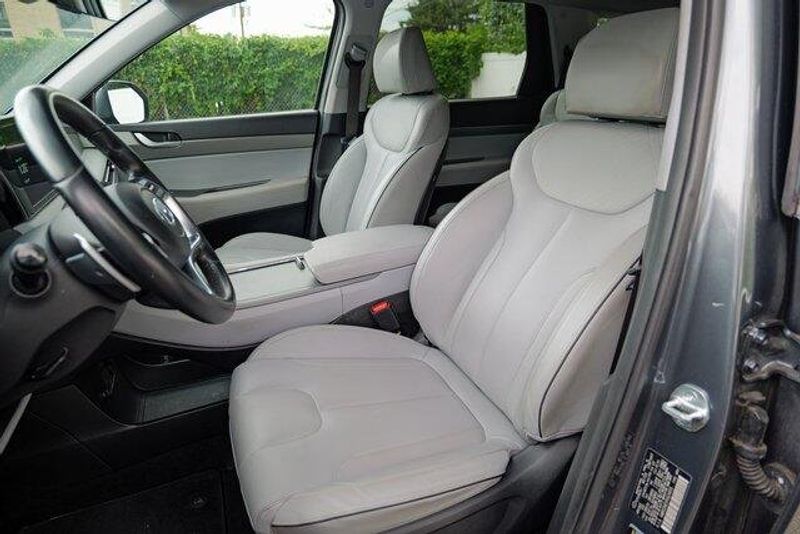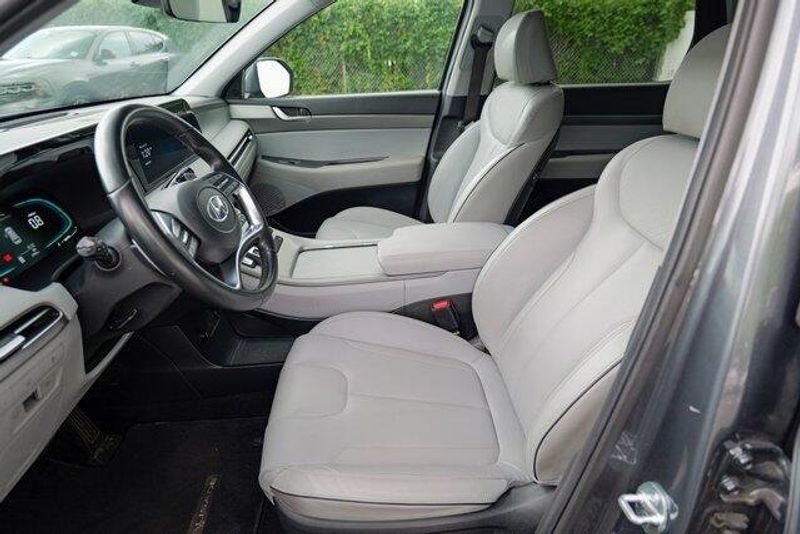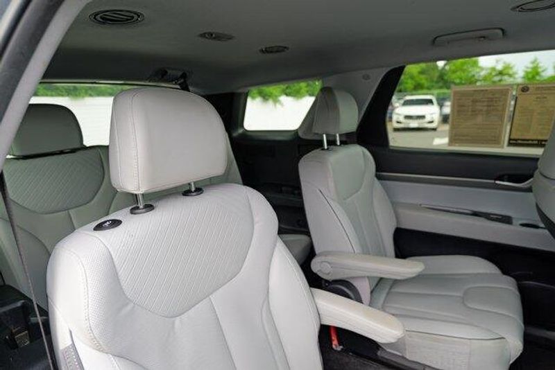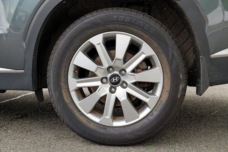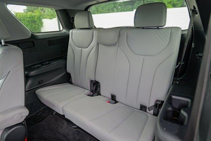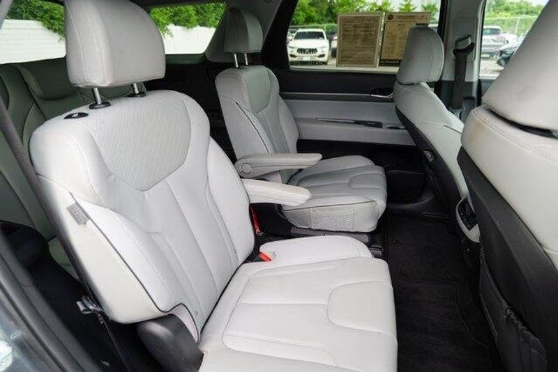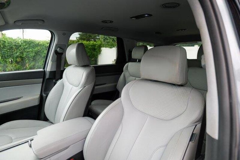 This Palisade SEL is nicely equipped with Option Group 01, 3.648 Axle Ratio, 3rd row seats: split-bench, 4-Wheel Disc Brakes, 6 Speakers, ABS brakes, Air Conditioning, Alloy wheels, AM/FM radio: SiriusXM, Apple CarPlay & Android Auto, Auto High-beam Headlights, Auto-dimming door mirrors, Auto-dimming Rear-View mirror, Automatic temperature control, Brake assist, Bumpers: body-color, Cargo Cover/Screen, Cargo Net, Cargo Tray, Carpeted Floor Mats, Delay-off headlights, Driver door bin, Driver vanity mirror, Dual front impact airbags, Dual front side impact airbags, Electronic Stability Control, Emergency communication system: Blue Link Connected Car Service (3-year complimentary subscription), Exterior Parking Camera Rear, Four wheel independent suspension, Front anti-roll bar, Front Bucket Seats, Front Center Armrest, Front dual zone A/C, Front reading lights, Fully automatic headlights, Garage door transmitter: HomeLink, H-Tex Leatherette Seat Trim, Heated door mirrors, Heated Front Bucket Seats, Heated front seats, Illuminated entry, Knee airbag, Low tire pressure warning, Navigation System, Occupant sensing airbag, Outside temperature display, Overhead airbag, Overhead console, Panic alarm, Passenger door bin, Passenger vanity mirror, Power door mirrors, Power driver seat, Power Liftgate, Power passenger seat, Power steering, Power windows, Radio data system, Radio: AM/FM/MP3 Audio System, Rear air conditioning, Rear anti-roll bar, Rear audio controls, Rear reading lights, Rear side impact airbag, Rear window defroster, Rear window wiper, Reclining 3rd row seat, Remote keyless entry, Security system, Speed control, Speed-sensing steering, Splash Trim, Split folding rear seat, Spoiler, Steering wheel mounted audio controls, Tachometer, Telescoping steering wheel, Tilt steering wheel, Traction control, Trip computer, Turn signal indicator mirrors, Variably intermittent wipers, Wheel Locks, and Wheels: 18'' x 7.5J Machine-Faced Alloy.