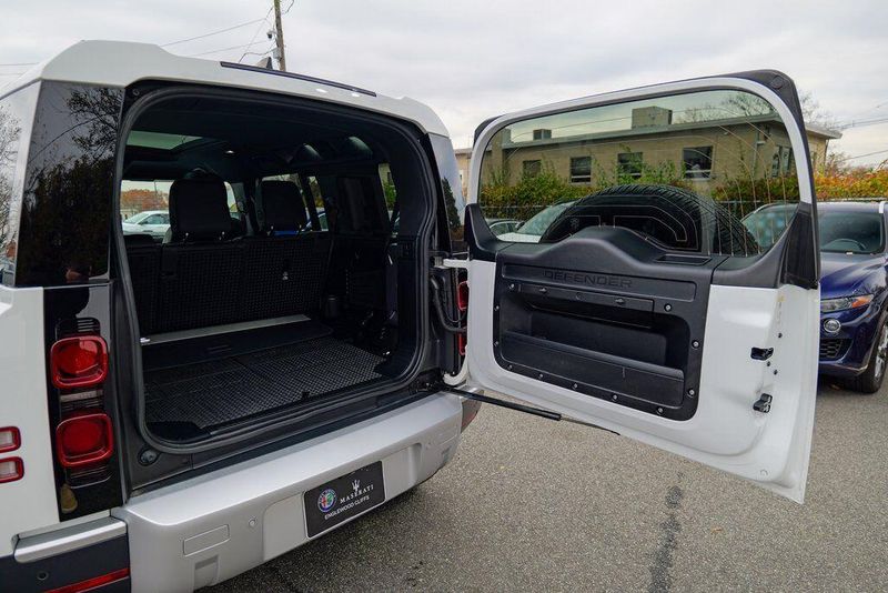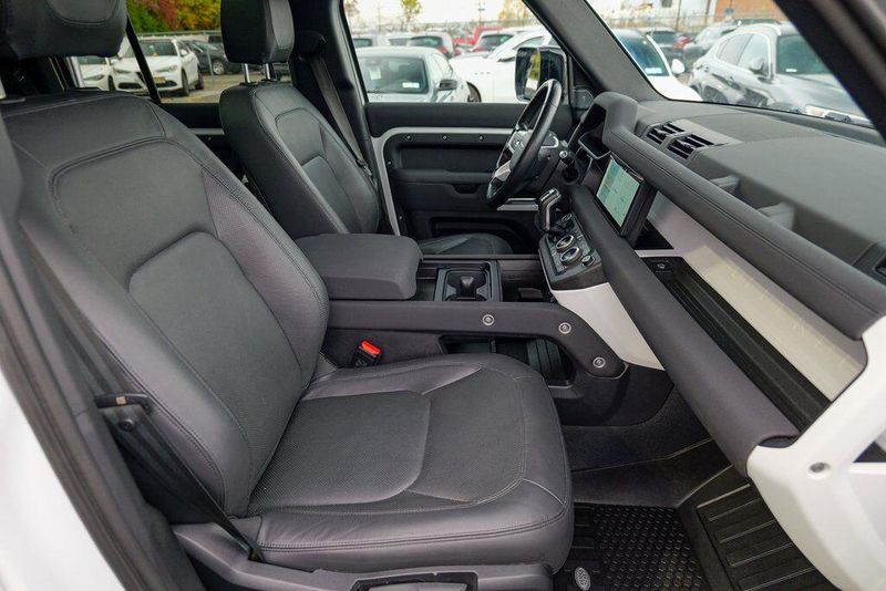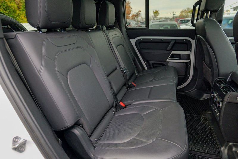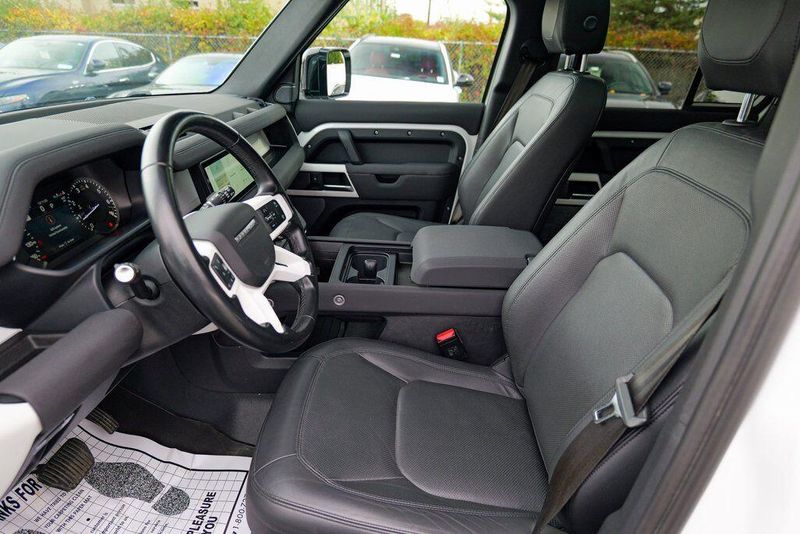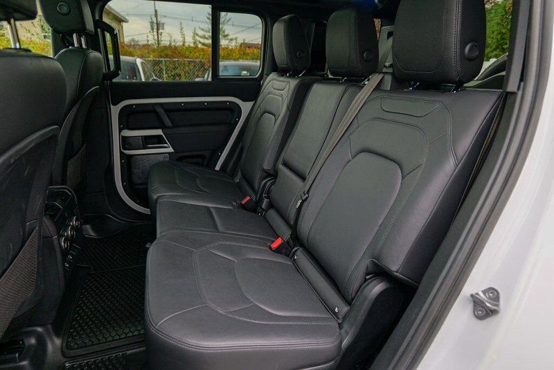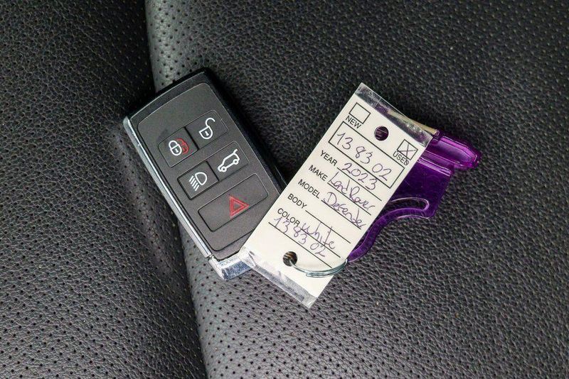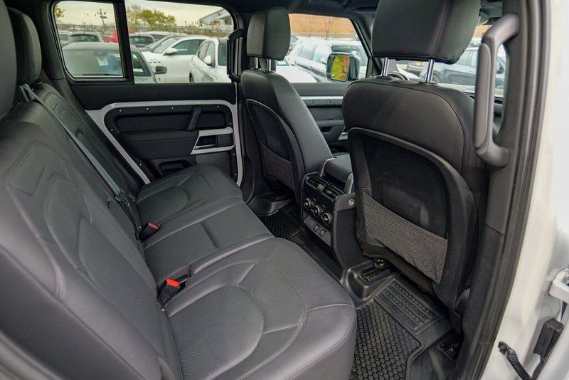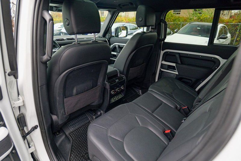 2023 Land Rover Defender 110 S Fuji White Defender 110 S, 4D Sport Utility, 2.0L Turbocharged, 8-Speed Automatic, 4WD, Fuji White, Black Leather, 3-Zone Climate Control, Air Quality Sensor, Air Suspension Pack, Automatic Headlight Levelling, Family Pack, Manual 3rd Row Seats.