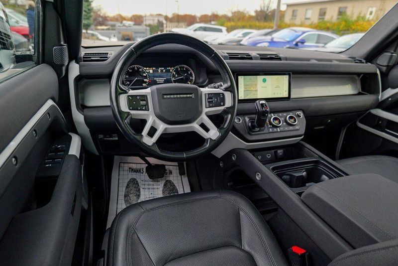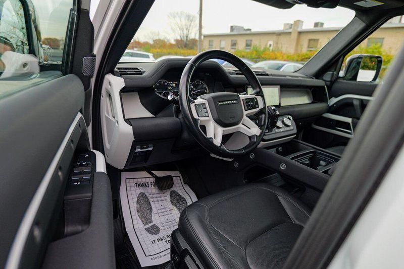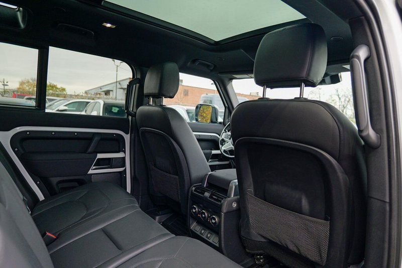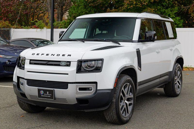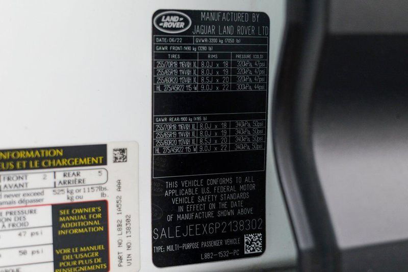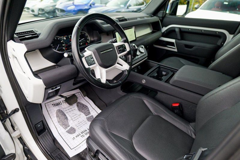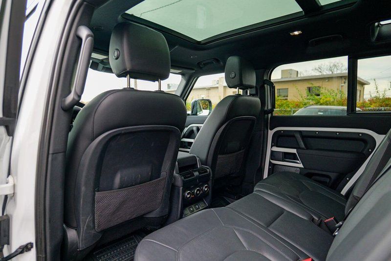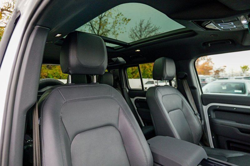2023 Land Rover Defender 110 S Fuji White Defender 110 S, 4D Sport Utility, 2.0L Turbocharged, 8-Speed Automatic, 4WD, Fuji White, Black Leather, 3-Zone Climate Control, Air Quality Sensor, Air Suspension Pack, Automatic Headlight Levelling, Family Pack, Manual 3rd Row Seats.