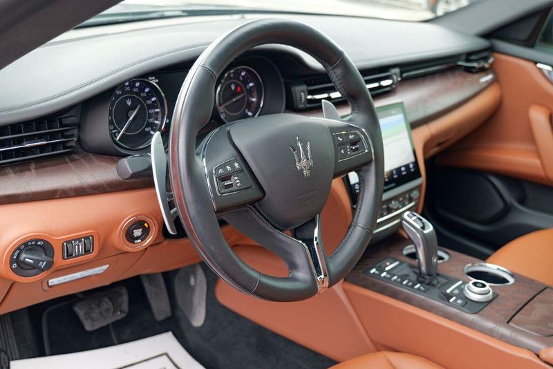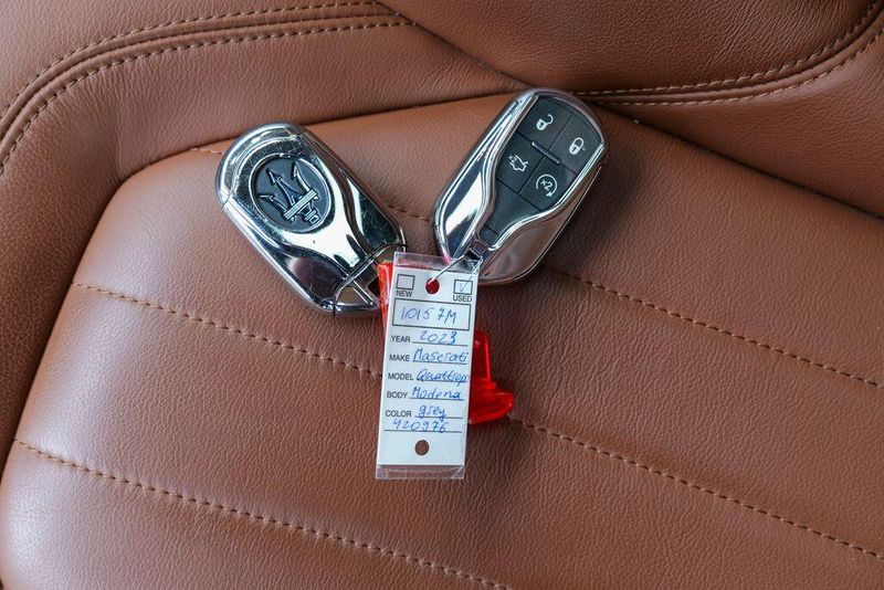 Recent Arrival! 2023 Maserati Quattroporte Modena Q4 Grigio Maratea Metallic Quattroporte Modena Q4, 4D Sedan, 3.0L V6, ZF 8-Speed Automatic, AWD, Grigio Maratea Metallic, 10 Speakers, Adaptive suspension, Alloy wheels, AM/FM radio: SiriusXM, Apple CarPlay/Android Auto, Auto High-beam Headlights, Auto tilt-away steering wheel, Auto-dimming door mirrors, Automatic temperature control, Brake assist, Bumpers: body-color, Dual front impact airbags, Dual front side impact airbags, Electronic Stability Control, Emergency communication system: Maserati Connect, Extended Leather Seat Upholstery, Exterior Parking Camera Rear, Front dual zone A/C, Garage door transmitter: HomeLink, harman/kardon 900 Watts Premium Audio System, harman/kardon Speakers, Heated door mirrors, Heated Front Bucket Seats, Heated steering wheel, Memory seat, Navigation System, Nerissimo Package, Power door mirrors, Power driver seat, Power moonroof, Radio data system, Radio: AM/FM w/Maserati Intelligent Assistant, Remote keyless entry, Speed control, Speed-sensing steering, Speed-Sensitive Wipers, Steering wheel memory, Steering wheel mounted audio controls, Turn signal indicator mirrors, Wheels: 20'' Silver Perseo.