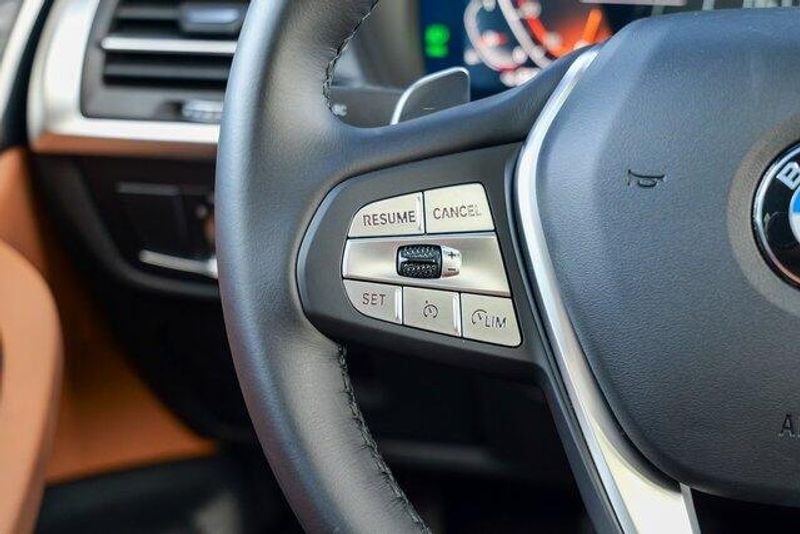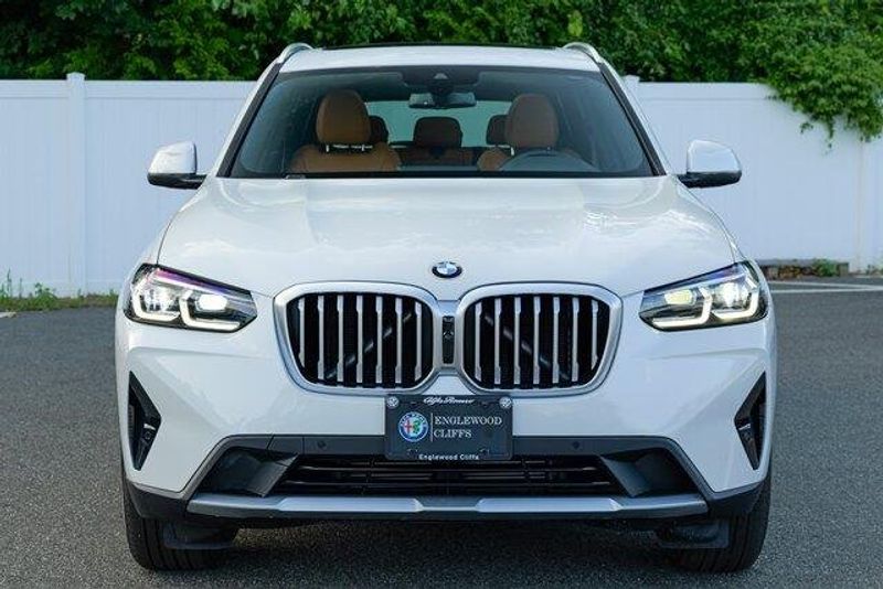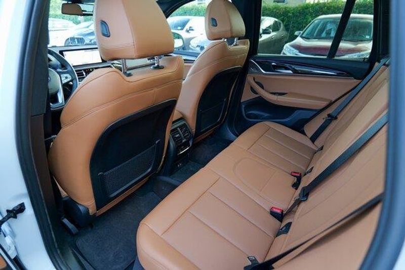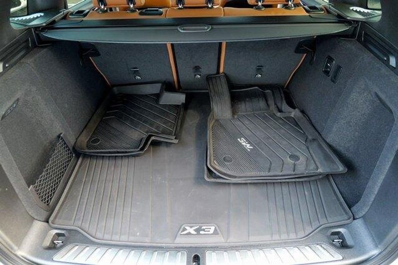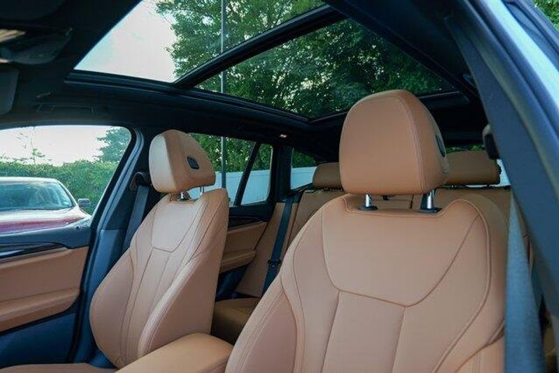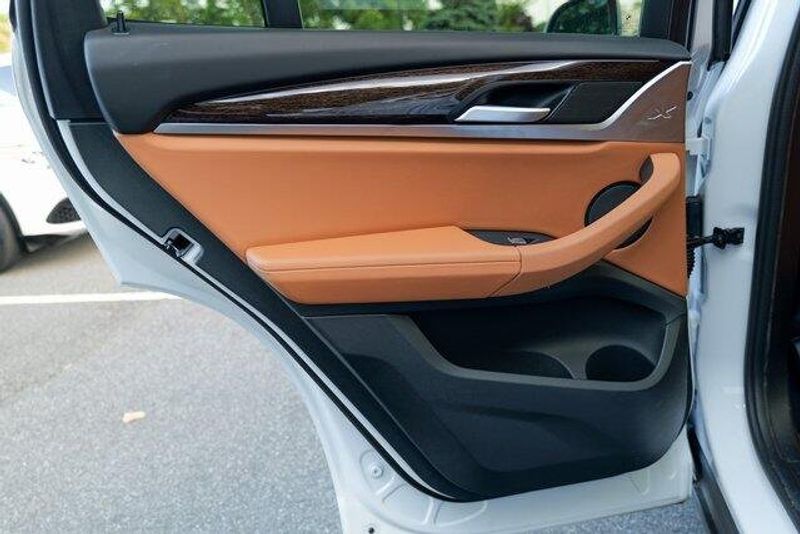 This X3 xDrive30i is nicely equipped with Convenience Package w/ZPA (Lumbar Support and Panoramic Moonroof (ZPA)), Parking Assistance Package (Active Park Distance Control, Parking Assistant Plus, Rear-View Camera, and Surround View w/3D View), Connected Package Pro, 8-Speed Automatic Sport, Remote Engine Start, 12 Speakers, 3.385 Axle Ratio, 4-Wheel Disc Brakes, ABS brakes, Air Conditioning, Alloy wheels, AM/FM Radio, AM/FM radio: SiriusXM, Apple CarPlay & Android Auto Compatibility, Auto High-beam Headlights, Auto-dimming door mirrors, Auto-dimming Rear-View mirror, Automatic temperature control, BMW Assist eCall, BMW TeleServices, Brake assist, Bumpers: body-color, Comfort Access Keyless Entry, ConnectedDrive Services, Delay-off headlights, Driver door bin, Driver vanity mirror, Dual front impact airbags, Dual front side impact airbags, Electronic Stability Control, Emergency communication system: BMW Assist eCall, Enhanced USB & Bluetooth w/Smartphone Integration, Exterior Parking Camera Rear, Four wheel independent suspension, Front anti-roll bar, Front Bucket Seats, Front Center Armrest, Front dual zone A/C, Front reading lights, Fully automatic headlights, Garage door transmitter, Genuine wood dashboard insert, Genuine wood door panel insert, Heated door mirrors, Hi-Fi Sound System, Illuminated entry, Knee airbag, Leather steering wheel, Low tire pressure warning, Memory seat, Navigation, Navigation System, Occupant sensing airbag, Outside temperature display, Overhead airbag, Panic alarm, Passenger door bin, Passenger vanity mirror, Perforated SensaTec Upholstery, Power door mirrors, Power driver seat, Power Front Seats, Power Liftgate, Power passenger seat, Power steering, Power windows, Radio data system, Rain sensing wipers, Rear air conditioning, Rear anti-roll bar, Rear reading lights, Rear seat center armrest, Rear window defroster, Rear window wiper, Remote keyless entry, Security system, SiriusXM w/360L & 1 Yr Platinum Plan Subscription, Speed control, Speed-sensing steering, Speed-Sensitive Wipers, Split folding rear seat, Spoiler, Sport Seats, Sport steering wheel, Steering wheel mounted audio controls, Tachometer, Telescoping steering wheel, Tilt steering wheel, Traction control, Trailer Hitch, Trip computer, Turn signal indicator mirrors, Variably intermittent wipers, Wheels: 19'' x 7.5'' Y-Spoke (Style 693), WiFi Hotspot, and Wireless Charging.