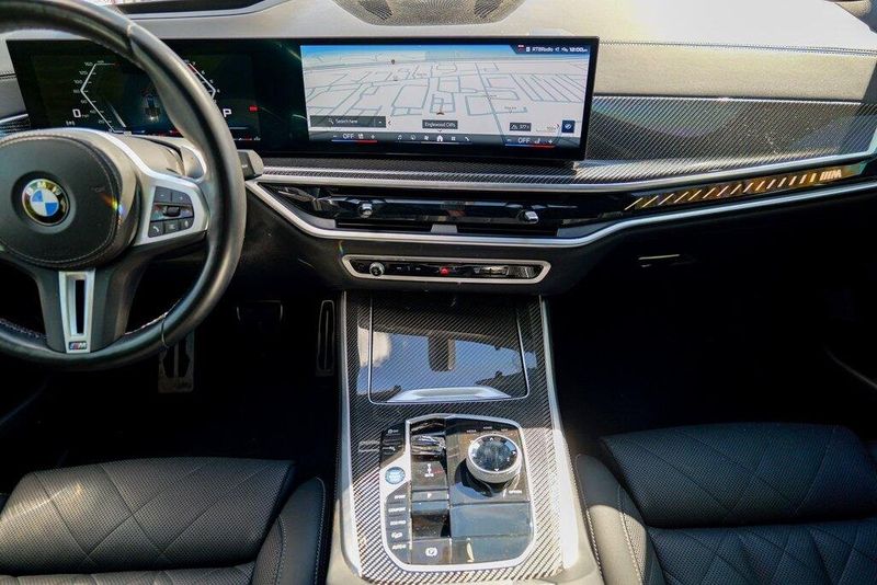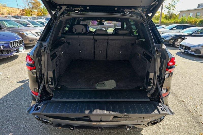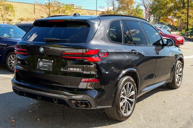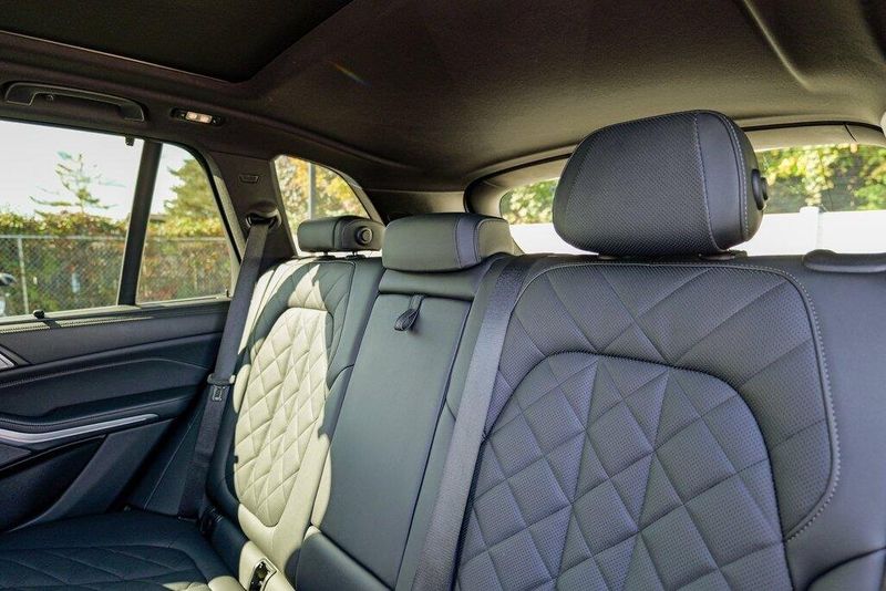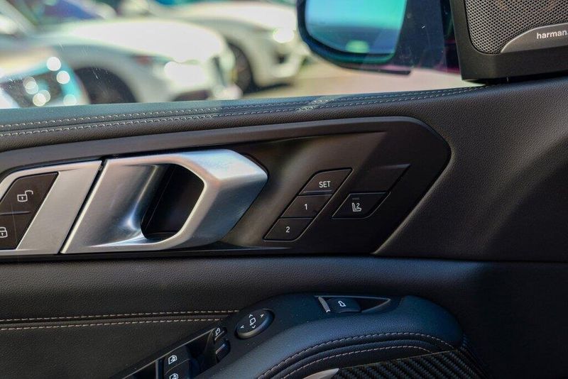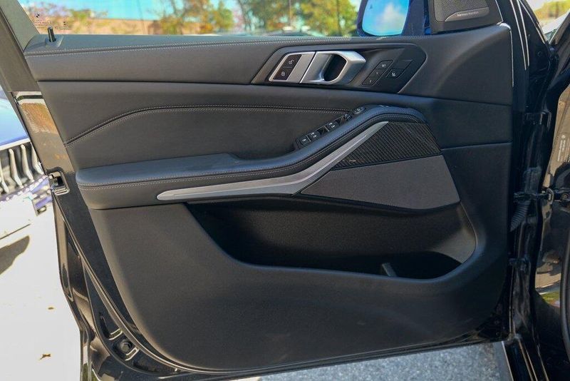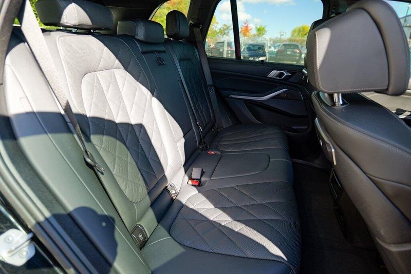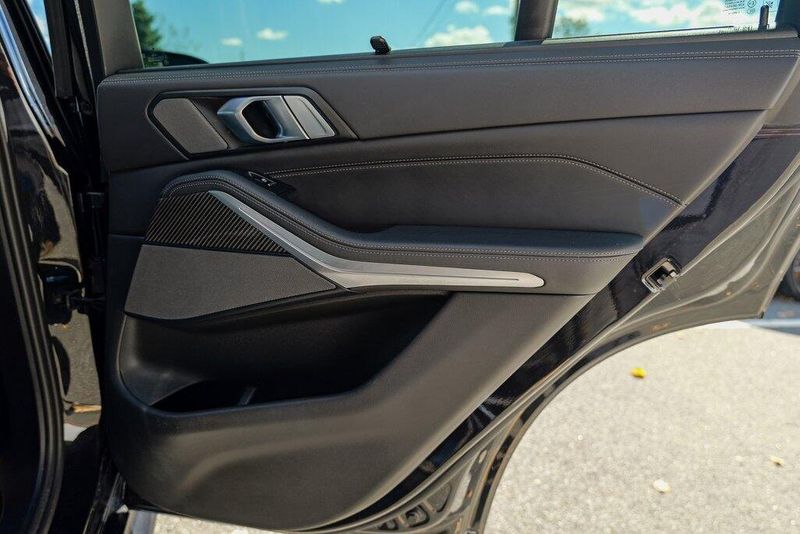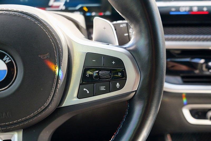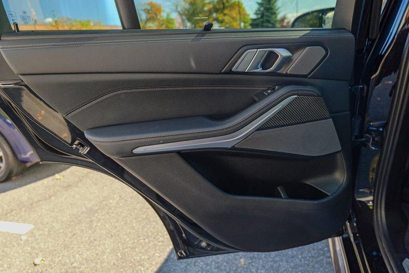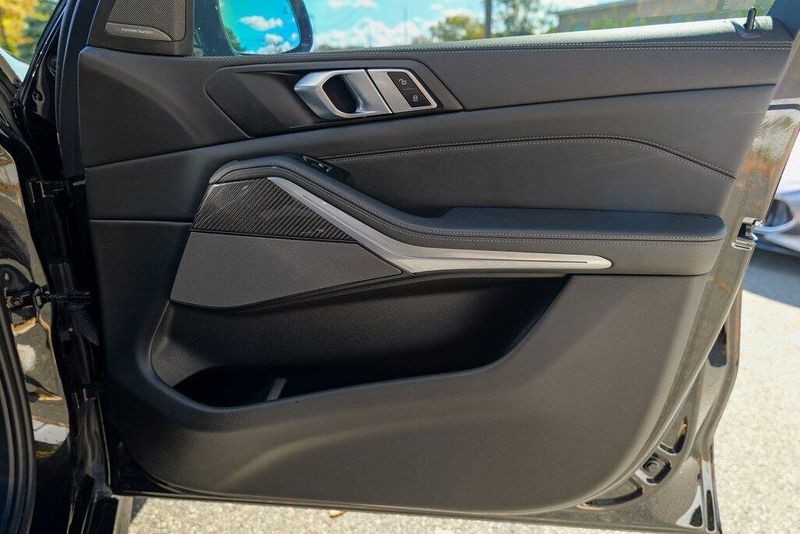 This X5 M60i is nicely equipped with Connected Package Pro, Black Black Sensafin, 16 Speakers, 3.15 Axle Ratio, 4-Wheel Disc Brakes, 4-Zone Automatic Climate Control (DISC), ABS brakes, Active Park Distance Control, Adaptive suspension, Air Conditioning, Alloy wheels, AM/FM radio: SiriusXM with 360L, AM/FM Stereo, Apple CarPlay & Android Auto Compatibility, Apple CarPlay Compatibility, Auto High-beam Headlights, Auto tilt-away steering wheel, Auto-dimming door mirrors, Auto-dimming Rear-View mirror, Automatic temperature control, BMW Assist eCall, BMW TeleServices, Brake assist, Bumpers: body-color, Carbon Fiber Trim, Compass, ConnectedDrive Services, Delay-off headlights, Driver door bin, Driver vanity mirror, Dual front impact airbags, Dual front side impact airbags, Electronic Stability Control, Emergency communication system: BMW Assist eCall, Extended Shadowline Trim, Exterior Parking Camera Rear, Four wheel independent suspension, Front & Rear Heated Seats, Front anti-roll bar, Front Bucket Seats, Front Center Armrest, Front dual zone A/C, Front reading lights, Front Ventilated Seats, Fully automatic headlights, Garage door transmitter, Genuine wood console insert, Genuine wood dashboard insert, Genuine wood door panel insert, Glass Controls, harman/kardon Surround Sound System, harman/kardon Speakers, Head restraints memory, Heads-Up Display, Heated door mirrors, Heated Front Seats, Heated front seats, Heated Front Seats, Armrests & Steering Wheel, Illuminated entry, Knee airbag, Leather Shift Knob, Leather steering wheel, Live Cockpit Pro, Low tire pressure warning, M Shadowline Lights, M Sport Brakes w/Blue Calipers, Memory seat, Multi-Contour Seats, Navigation System, Occupant sensing airbag, Outside temperature display, Overhead airbag, Panic alarm, Panoramic Sky Lounge LED Roof, Parking Assistant Professional, Passenger door bin, Passenger vanity mirror, Personal eSIM 5G, Power adjustable front head restraints, Power door mirrors, Power driver seat, Power Front Seats, Power moonroof, Power passenger seat, Power steering, Power windows, Radio data system, Rain sensing wipers, Rear anti-roll bar, Rear Manual Side Window Shades, Rear reading lights, Rear seat center armrest, Rear window defroster, Rear window wiper, Remote keyless entry, Security system, Sensafin Upholstery, SiriusXM w/360L, Soft-Close Automatic Doors, Speed control, Speed-sensing steering, Speed-Sensitive Wipers, Split folding rear seat, Spoiler, Sport steering wheel, Steering wheel mounted audio controls, Surround View w/3D View, Tachometer, Telescoping steering wheel, Tilt steering wheel, Traction control, Trip computer, Turn signal indicator mirrors, Variably intermittent wipers, Ventilated front seats, Wheels: 20'' x 9'' M Star-Spoke Bi-Color, and Wireless Device Charging.