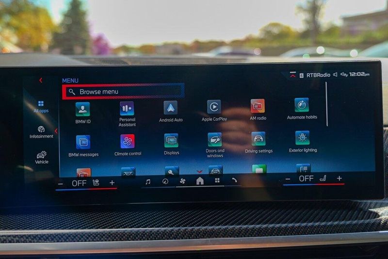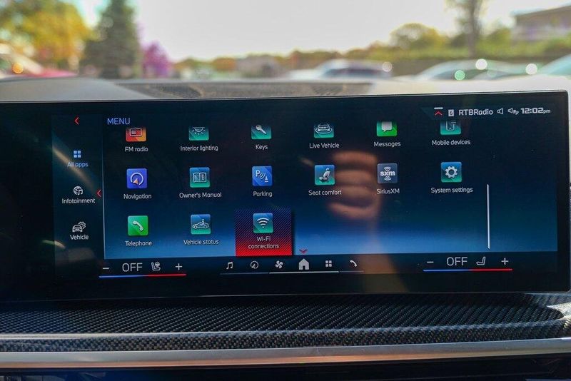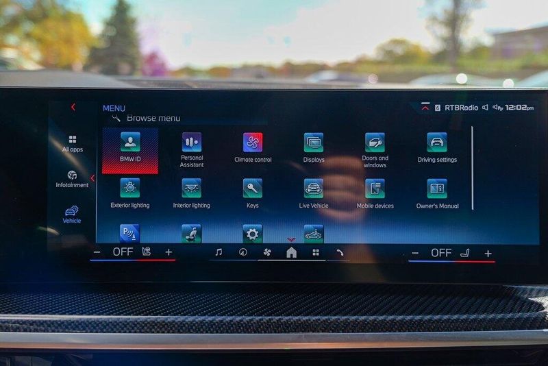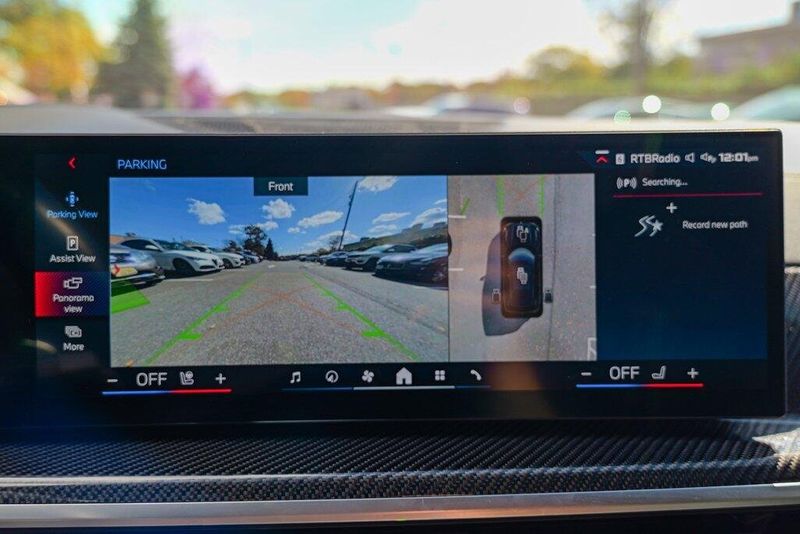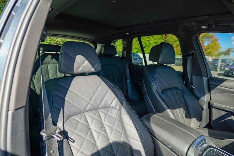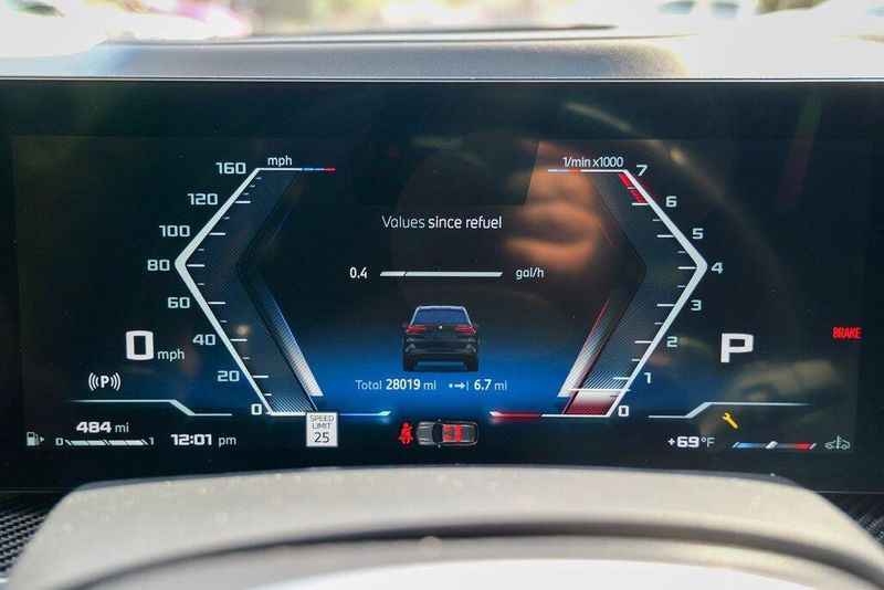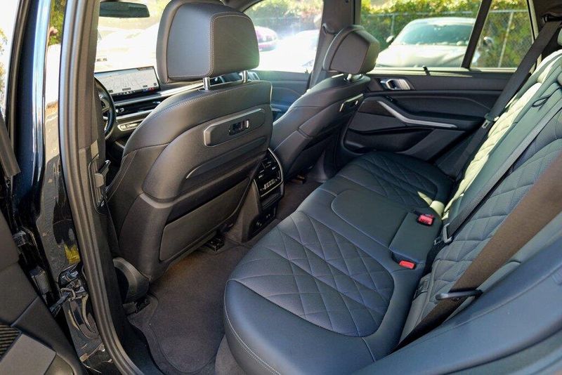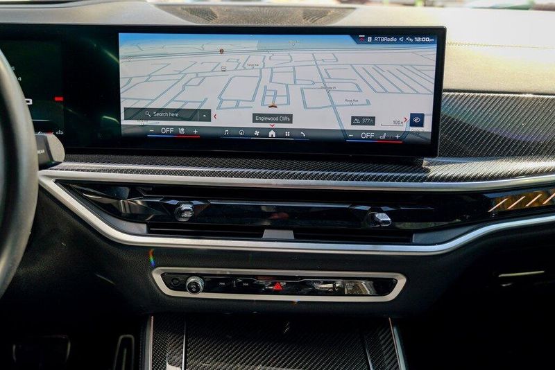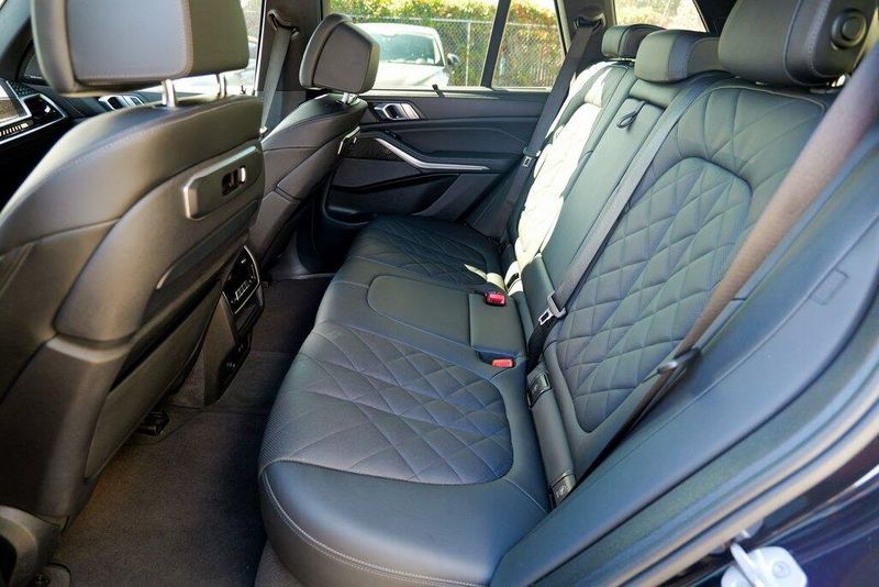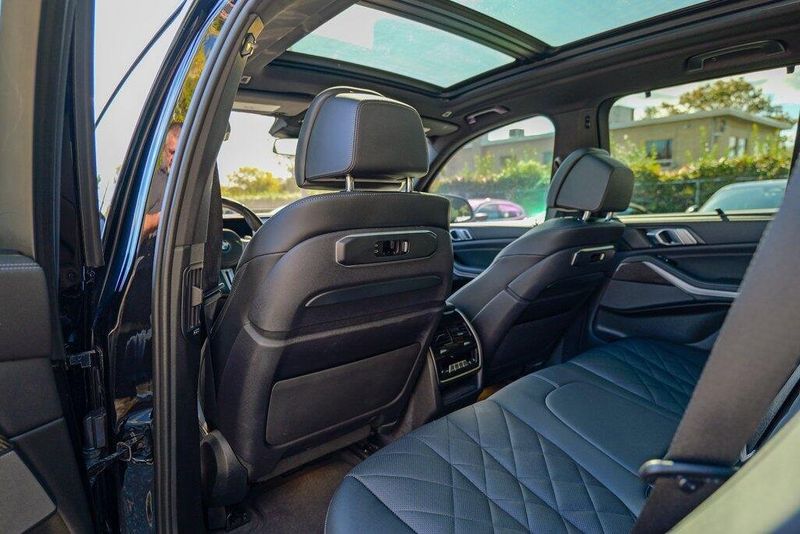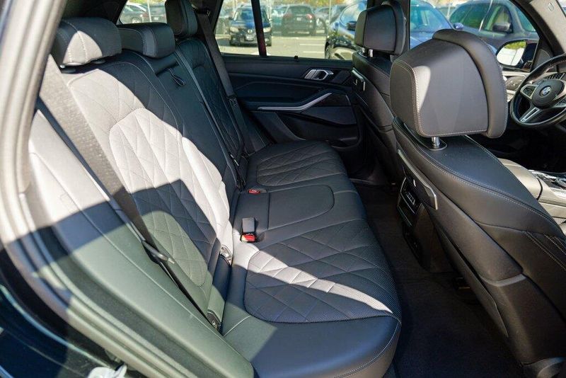 This X5 M60i is nicely equipped with Connected Package Pro, Black Black Sensafin, 16 Speakers, 3.15 Axle Ratio, 4-Wheel Disc Brakes, 4-Zone Automatic Climate Control (DISC), ABS brakes, Active Park Distance Control, Adaptive suspension, Air Conditioning, Alloy wheels, AM/FM radio: SiriusXM with 360L, AM/FM Stereo, Apple CarPlay & Android Auto Compatibility, Apple CarPlay Compatibility, Auto High-beam Headlights, Auto tilt-away steering wheel, Auto-dimming door mirrors, Auto-dimming Rear-View mirror, Automatic temperature control, BMW Assist eCall, BMW TeleServices, Brake assist, Bumpers: body-color, Carbon Fiber Trim, Compass, ConnectedDrive Services, Delay-off headlights, Driver door bin, Driver vanity mirror, Dual front impact airbags, Dual front side impact airbags, Electronic Stability Control, Emergency communication system: BMW Assist eCall, Extended Shadowline Trim, Exterior Parking Camera Rear, Four wheel independent suspension, Front & Rear Heated Seats, Front anti-roll bar, Front Bucket Seats, Front Center Armrest, Front dual zone A/C, Front reading lights, Front Ventilated Seats, Fully automatic headlights, Garage door transmitter, Genuine wood console insert, Genuine wood dashboard insert, Genuine wood door panel insert, Glass Controls, harman/kardon Surround Sound System, harman/kardon Speakers, Head restraints memory, Heads-Up Display, Heated door mirrors, Heated Front Seats, Heated front seats, Heated Front Seats, Armrests & Steering Wheel, Illuminated entry, Knee airbag, Leather Shift Knob, Leather steering wheel, Live Cockpit Pro, Low tire pressure warning, M Shadowline Lights, M Sport Brakes w/Blue Calipers, Memory seat, Multi-Contour Seats, Navigation System, Occupant sensing airbag, Outside temperature display, Overhead airbag, Panic alarm, Panoramic Sky Lounge LED Roof, Parking Assistant Professional, Passenger door bin, Passenger vanity mirror, Personal eSIM 5G, Power adjustable front head restraints, Power door mirrors, Power driver seat, Power Front Seats, Power moonroof, Power passenger seat, Power steering, Power windows, Radio data system, Rain sensing wipers, Rear anti-roll bar, Rear Manual Side Window Shades, Rear reading lights, Rear seat center armrest, Rear window defroster, Rear window wiper, Remote keyless entry, Security system, Sensafin Upholstery, SiriusXM w/360L, Soft-Close Automatic Doors, Speed control, Speed-sensing steering, Speed-Sensitive Wipers, Split folding rear seat, Spoiler, Sport steering wheel, Steering wheel mounted audio controls, Surround View w/3D View, Tachometer, Telescoping steering wheel, Tilt steering wheel, Traction control, Trip computer, Turn signal indicator mirrors, Variably intermittent wipers, Ventilated front seats, Wheels: 20'' x 9'' M Star-Spoke Bi-Color, and Wireless Device Charging.