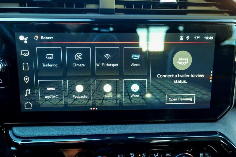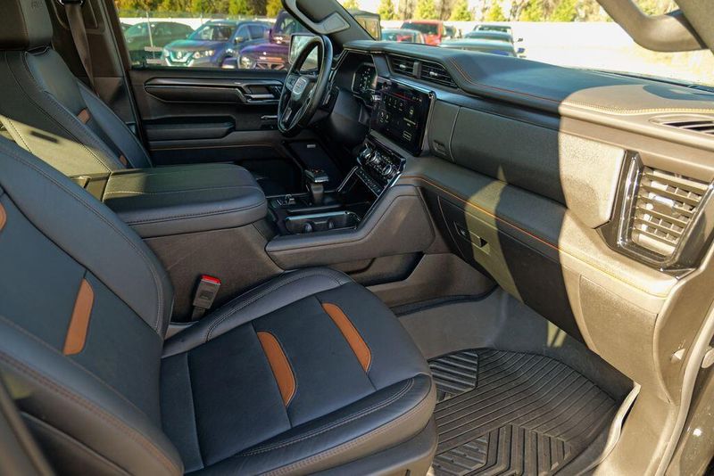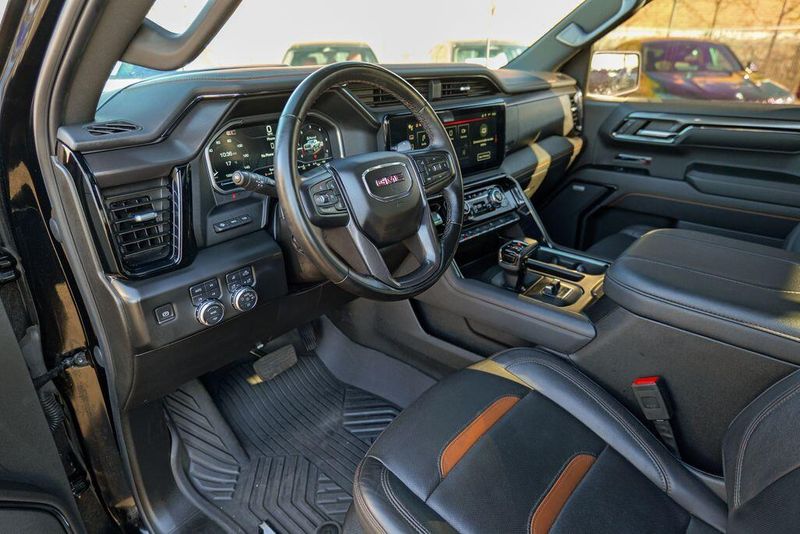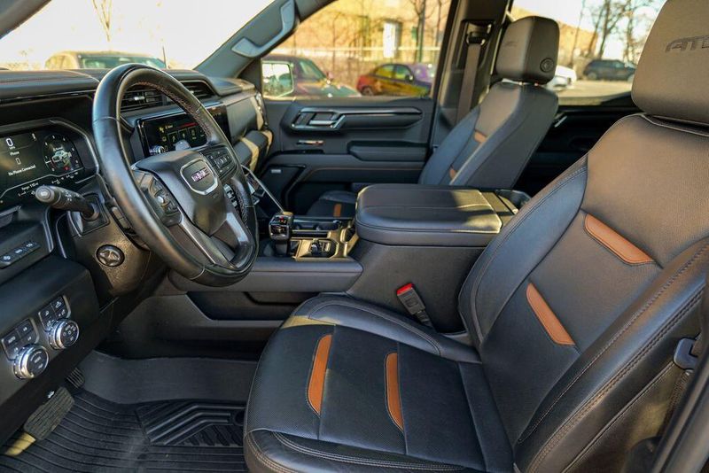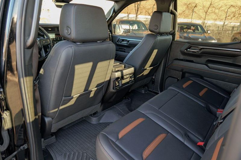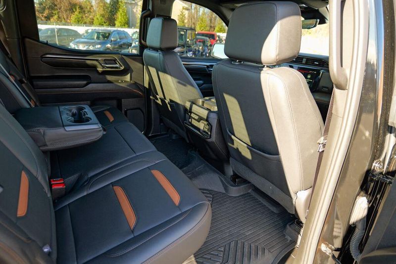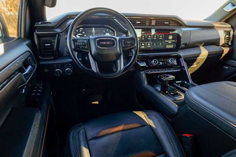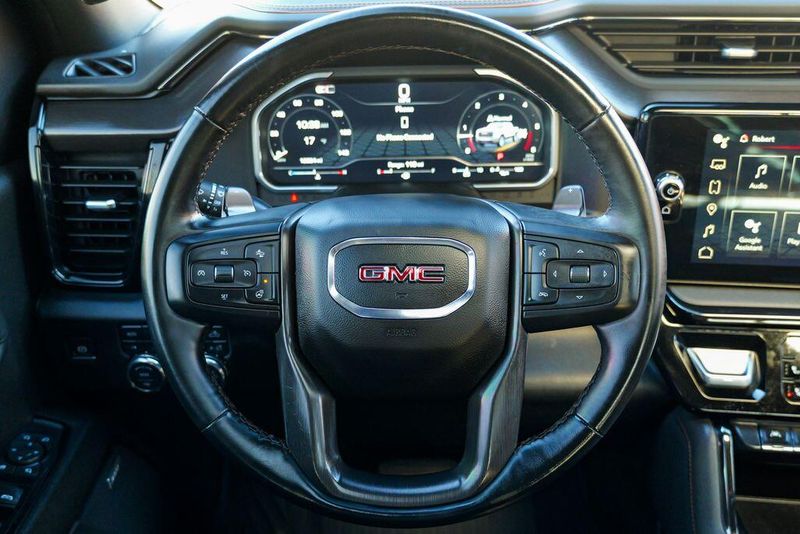 Recent Arrival! 2024 GMC Sierra 1500 AT4 Onyx Black Sierra 1500 AT4, 4D Crew Cab, 3.0L I6, 10-Speed Automatic, 4WD, Onyx Black, Jet Black With Kalahari Accents Leather, 10-Way Power Driver Seat Adjuster w/Lumbar, 10-Way Power Passenger Seat Adjuster w/Lumbar, 120-Volt Interior Power Outlet, 2 Charge/Data USB Ports Inside Center Console, 2 Type-C Charge-Only Rear USB Ports, 2 USB Ports, 220 Amp Alternator, AT4 CarbonPro Edition, AT4 Preferred Package, AT4 Premium Package, Auto High-beam Headlights, Auto-Locking Rear Differential, Automatic temperature control, Bed View Camera, Black Chrome Header & Grille Insert Bars, Black Sport Step (LPO), Carbon Fiber Composite Bed, CarbonPro Fender Hard Badge, Color-Keyed Carpeting Floor Covering, Deep-Tinted Glass, Electric Rear-Window Defogger, Floor-Mounted Center Console, Front Prem Floor Liners w/Removable Carpet Insert, Front Rain-Sensing Wipers, GMC Connected Access Capable, HD Surround Vision, Heated 2nd Row Outboard Seats, Heated Driver & Front Outboard Passenger Seating, Heated front seats, Heated rear seats, Heated steering wheel, Heavy-Duty Air Filter, Hill Descent Control, Hitch View, In-Vehicle Trailering System App, Integrated Trailer Brake Controller, Keyless Open & Start, LED Cargo Area Lighting, Memory seat, Multicolor 15'' Diagonal Head-Up Display, MultiPro Tailgate Audio System by Kicker (LPO), Navigation System, Off-Road High Clearance Step (LPO), Off-Road Suspension, OnStar & GMC Connected Services Capable, Perforated Front Leather Seat Trim, Perimeter Lighting, Power Door Locks, Power Front Passenger Windows w/Express Up/Down, Power Front Windows w/Driver Express Up/Down, Power Rake & Telescoping Steering Column, Power Rear Windows w/Express Down, Power Sliding Rear Window w/Rear Defogger, Power Sunroof, Preferred Equipment Group 4SB, Premium Bose 7-Speaker Sound System, Push Button Start, Rear Camera Mirror, Rear Cross Traffic Braking, Rear Pedestrian Detection, Rear Wheelhouse Liners, Red Recovery Hooks, Remote Vehicle Starter System, REV Hard-Folding Tonneau Cover (LPO), SiriusXM w/360L, Spray-On Pickup Bedliner w/AT4 Logo, Steering Wheel Audio Controls, Technology Package, Theft Deterrent System (Unauthorized Entry), Trailer Camera Provisions, Trailer Side Blind Zone Alert, Trailering Package, Ultrasonic Front & Rear Park Assist, Universal Home Remote, Ventilated Driver & Front Passenger Seats, Ventilated front seats, Wheels: 20'' x 9'' Machined Aluminum, Wi-Fi Hotspot Capable, Wireless Apple CarPlay/Wireless Android Auto, Wireless Charging.