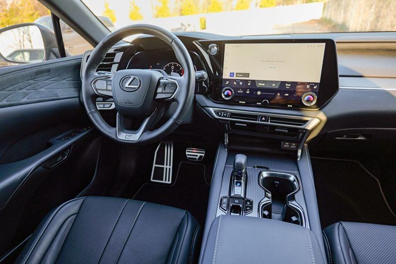 Recent Arrival! 2024 Lexus RX 350 F Sport Handling Iridium RX 350 F Sport Handling, 4D Sport Utility, 2.4L I4 PDI Turbocharged DOHC 16V LEV3-SULEV30 275hp, 8-Speed Automatic, AWD, Iridium, Graphite Premium Synthetic, 12 Speakers, Accessory Package (Z1), Alloy wheels, AM/FM radio: SiriusXM, Auto High-beam Headlights, Automatic temperature control, Brake assist, Cargo Net, Carpet Cargo Mat, Cold Area Package, Dual front impact airbags, Dual front side impact airbags, Electronic Stability Control, Emergency communication system: Safety Connect (10-year trial), Exterior Parking Camera Rear, Front dual zone A/C, Fully automatic headlights, Garage door transmitter: HomeLink, Genuine wood console insert, Heated door mirrors, Heated F SPORT Steering Wheel w/Paddle Shifters, Heated front seats, Key Gloves, Navigation System, Power door mirrors, Power driver seat, Power Liftgate, Power windows, Premium Paint (PJ), Radio data system, Radio: Lexus Interface w/9.8'' HD Touchscreen Display, Rain sensing wipers, Rear air conditioning, Rear Bumper Applique, Remote keyless entry, Speed control, Speed-sensing steering, Steering wheel mounted audio controls, Technology Package, Turn signal indicator mirrors, Wireless Apple CarPlay/Wireless Android Auto.