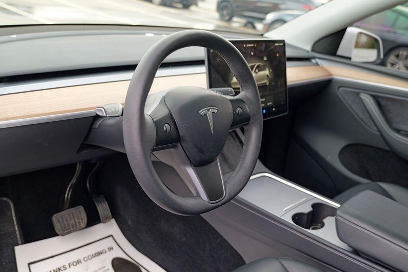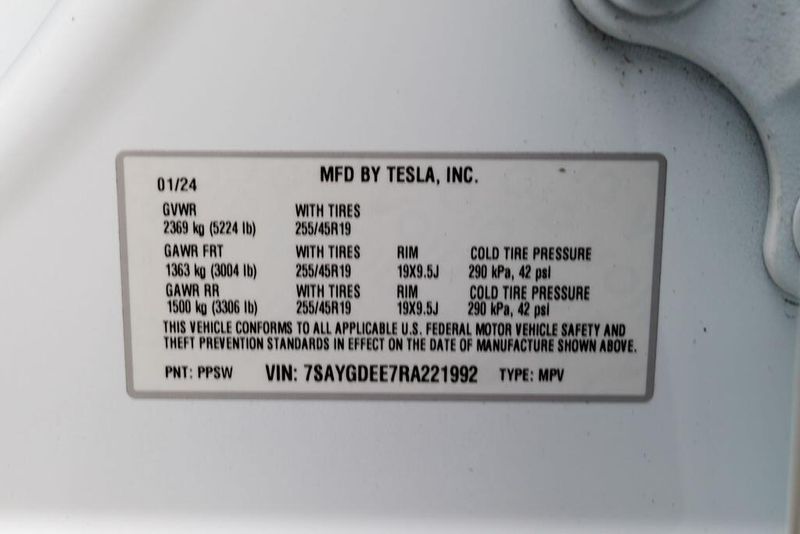 2024 Tesla Model Y Long Range White Model Y Long Range, 4D Sport Utility, Electric Motor, 1-Speed Automatic, AWD, White, 14 Speakers, 5 Seat Interior, Audio memory, Auto High-beam Headlights, Auto-dimming door mirrors, Automatic temperature control, Brake assist, Bumpers: body-color, Exterior Parking Camera Rear, Front dual zone A/C, Fully automatic headlights, Genuine wood dashboard insert, Heated door mirrors, Heated front seats, Heated rear seats, HVAC memory, Lane Departure Warning System, Memory seat, Navigation System, Power door mirrors, Power Liftgate, Radio data system, Radio: Premium Audio System w/13 Speakers, Rain sensing wipers, Security system, Speed control, Speed-sensing steering, Steering wheel memory, Steering wheel mounted A/C controls, Steering wheel mounted audio controls, Vegan Leather Seat Trim, Wheels: 19'' x 9.5'' Gemini Dark.