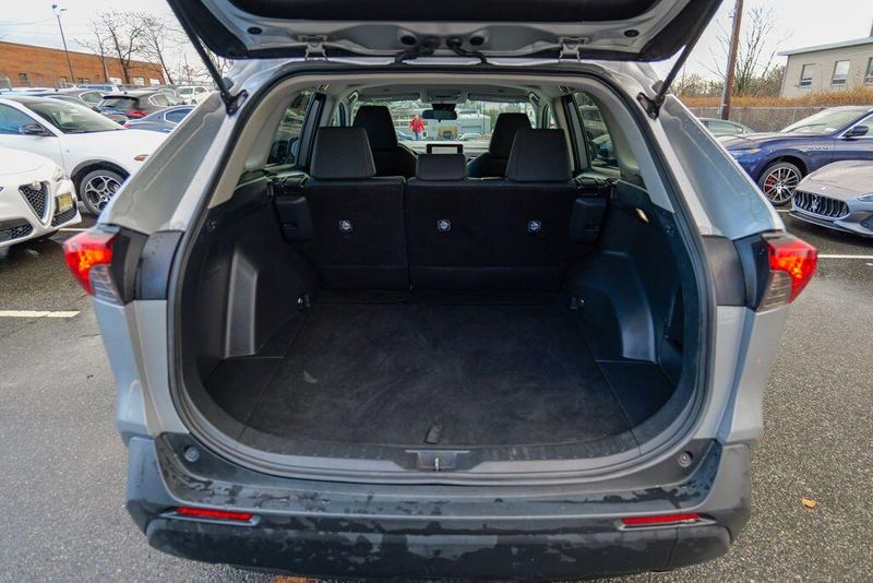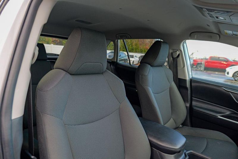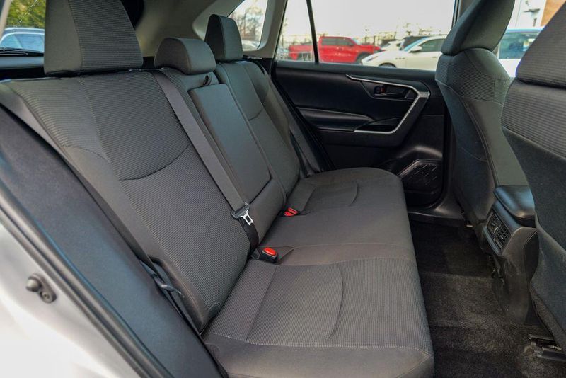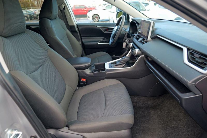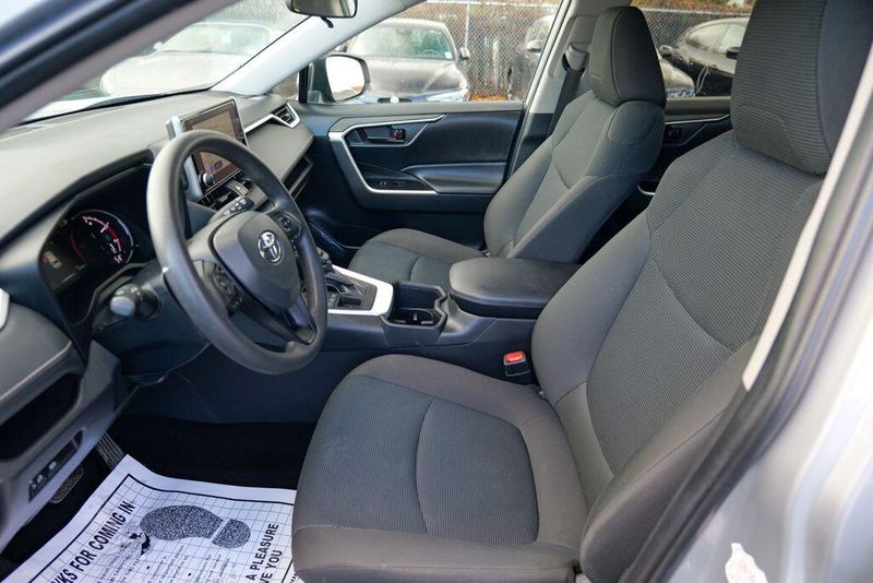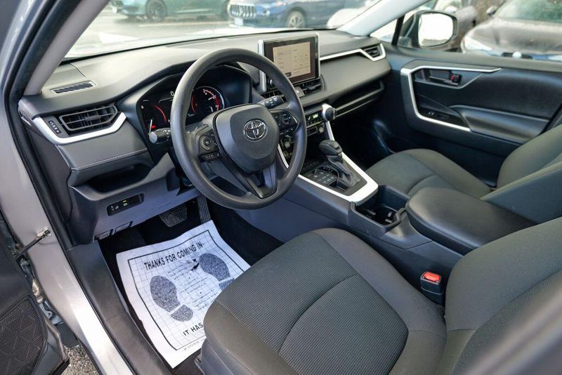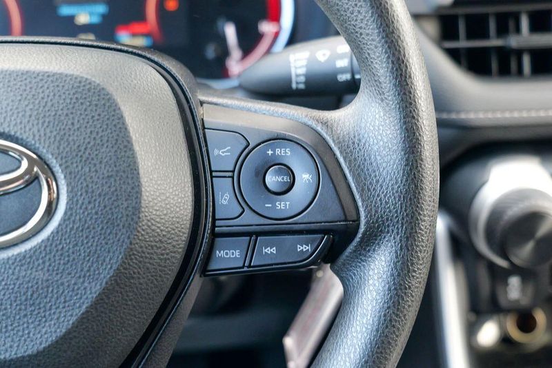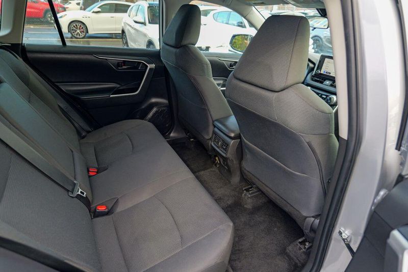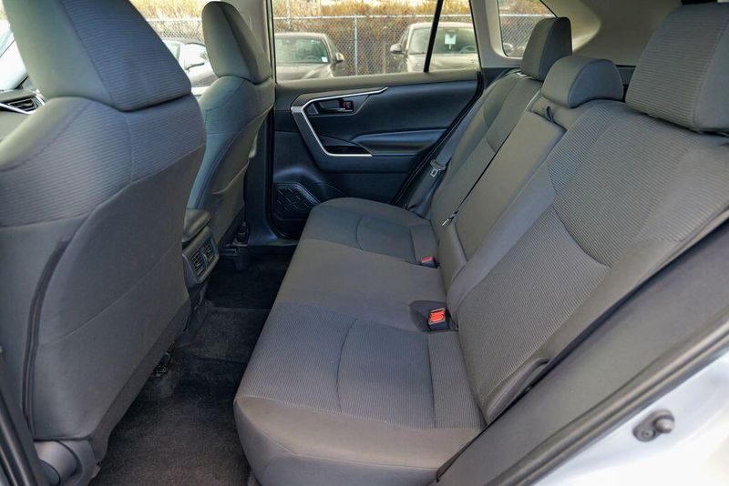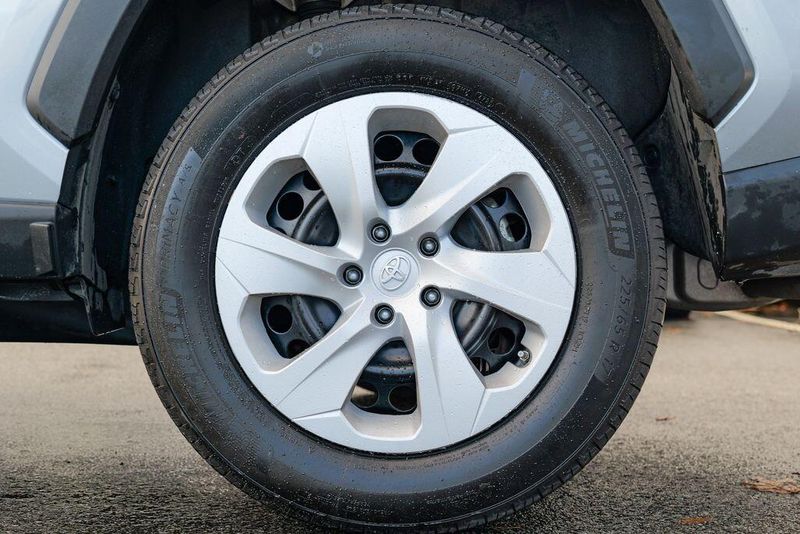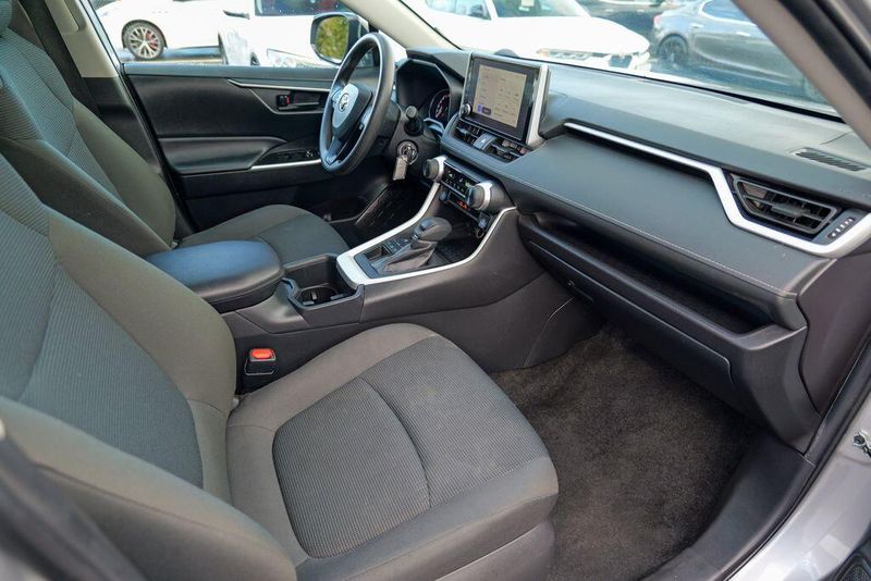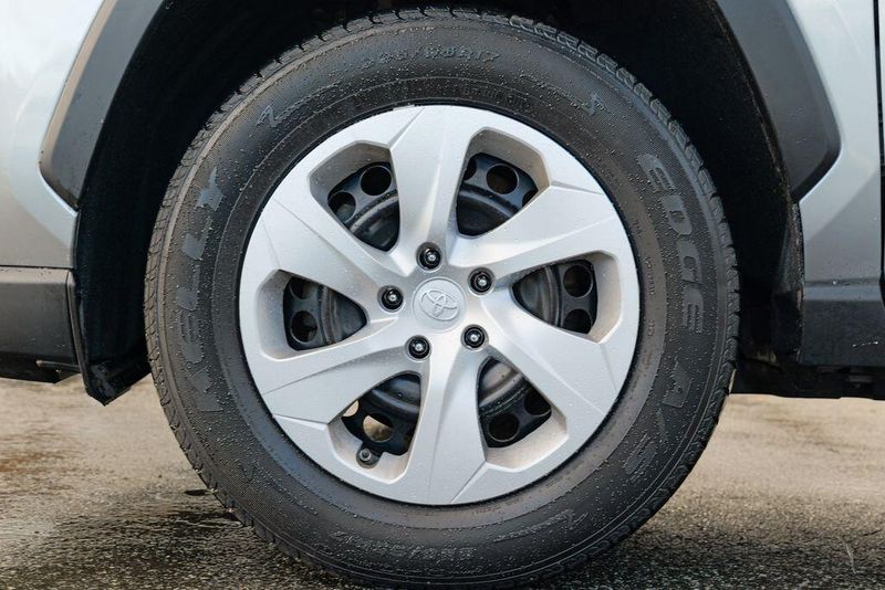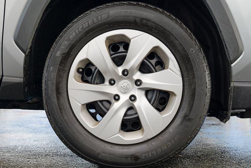 The interior of the RAV4 LE is thoughtfully designed, with features that prioritize your comfort and convenience. Enjoy the intuitive controls, ample cargo space, and the reassurance of advanced safety technologies like Brake Assist, Electronic Stability Control, and a Rear Parking Camera. The Fabric Seat Trim and 17'' Steel Wheels add a touch of style and functionality to this well-equipped model.